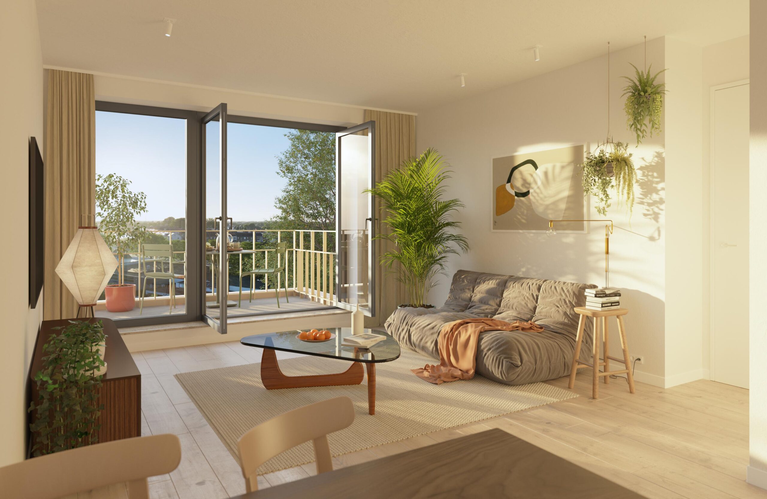 Je eigen appartement bereik je door in de riante lobby één van de twee liften te nemen of via het trappenhuis. Op de verdieping zijn de appartementen met elkaar verbonden via een hoogwaardig afgewerkte gang voor een luxe hotelgevoel. In zowel de woon- als slaapkamers zorgen de verdiepingshoge ramen voor veel natuurlijk licht in de ruimte. Dit geeft een heerlijk ruimtelijk gevoel. Alle woningen zijn voorzien van 1 badkamer en een apart toilet. Uiteraard zijn de woningen gasloos en voorzien van vloerverwarming.