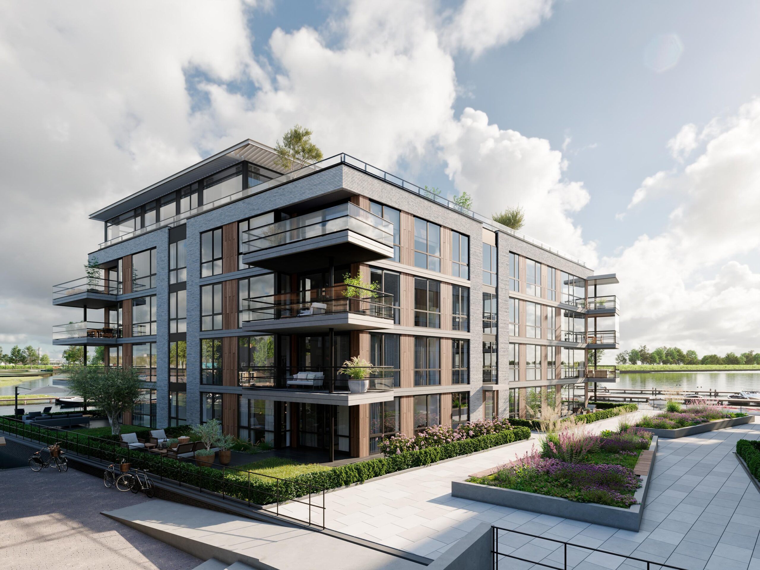 De bovenste appartementen in woonblok E hebben zelfs dakterrassen waar u geniet van een vrij uitzicht over het uitgestrekte meer. U heeft de keuze uit royale 2, 3 en 4-kamer appartementen. Bij dit woonproject is duurzaamheid een belangrijk uitgangspunt. Zo worden de woningen volledig gasloos en krijgt elke woning een eigen individuele (aard)warmtepomp. Hierdoor profiteert u van zeer lage energielasten.