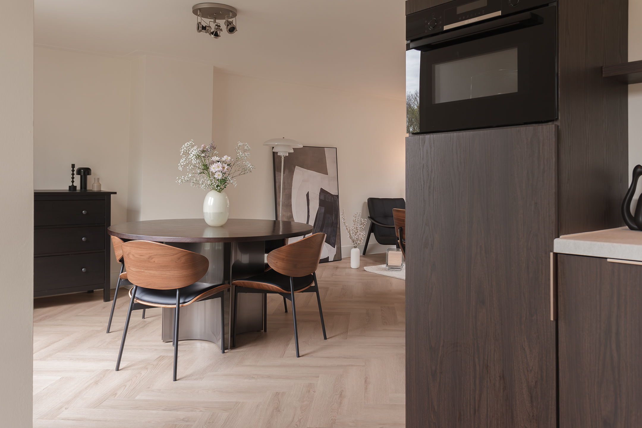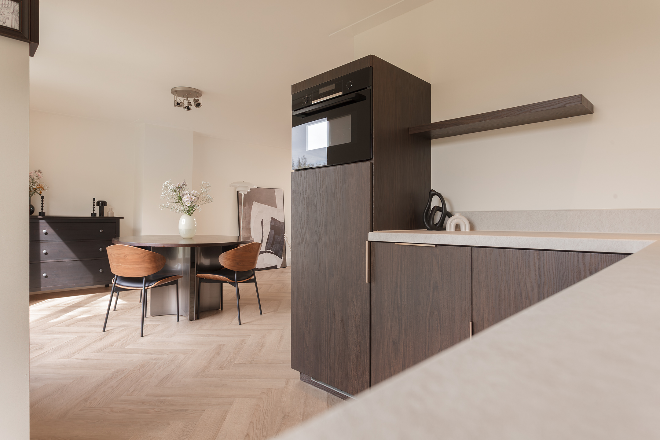 • Modern open kitchen in Japandi style