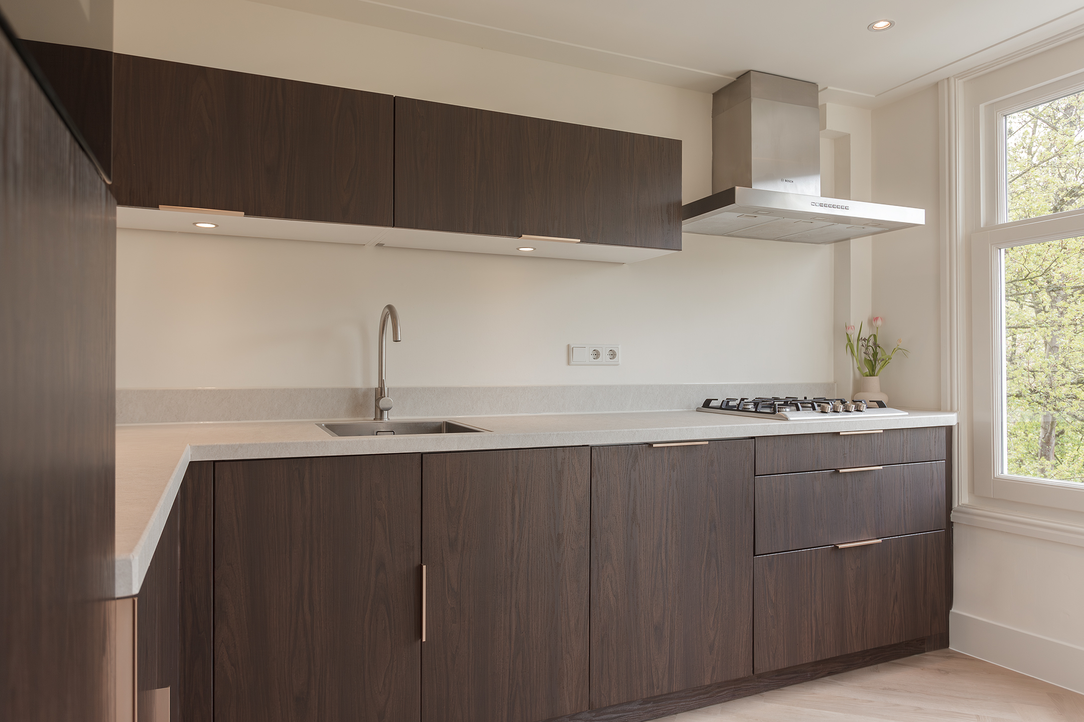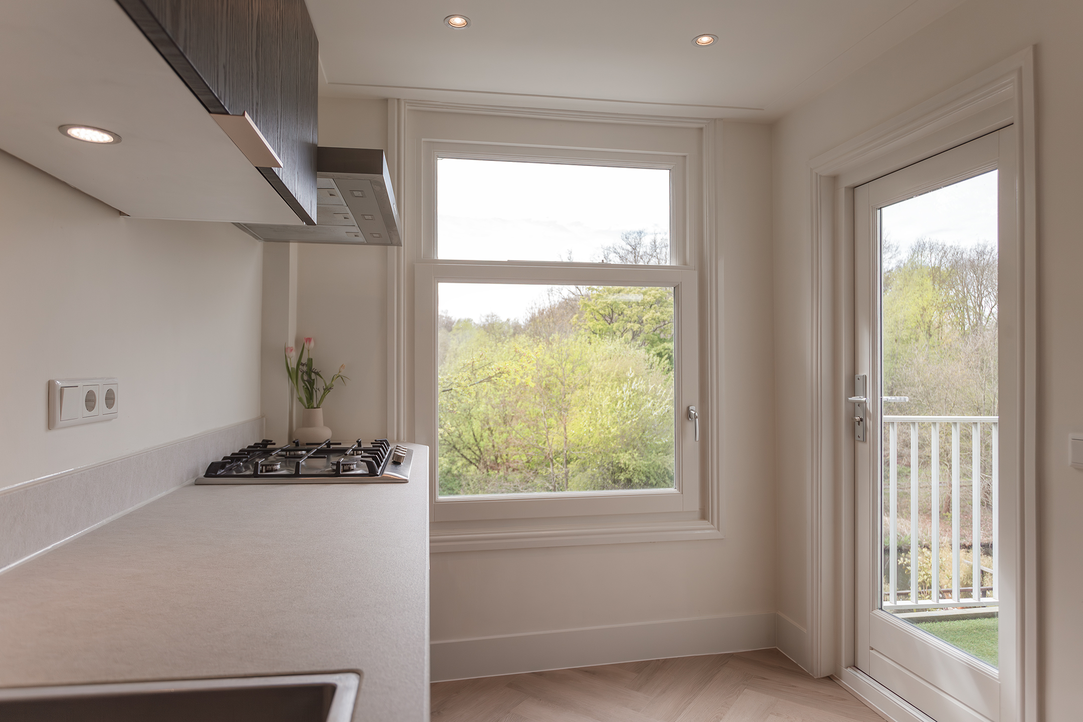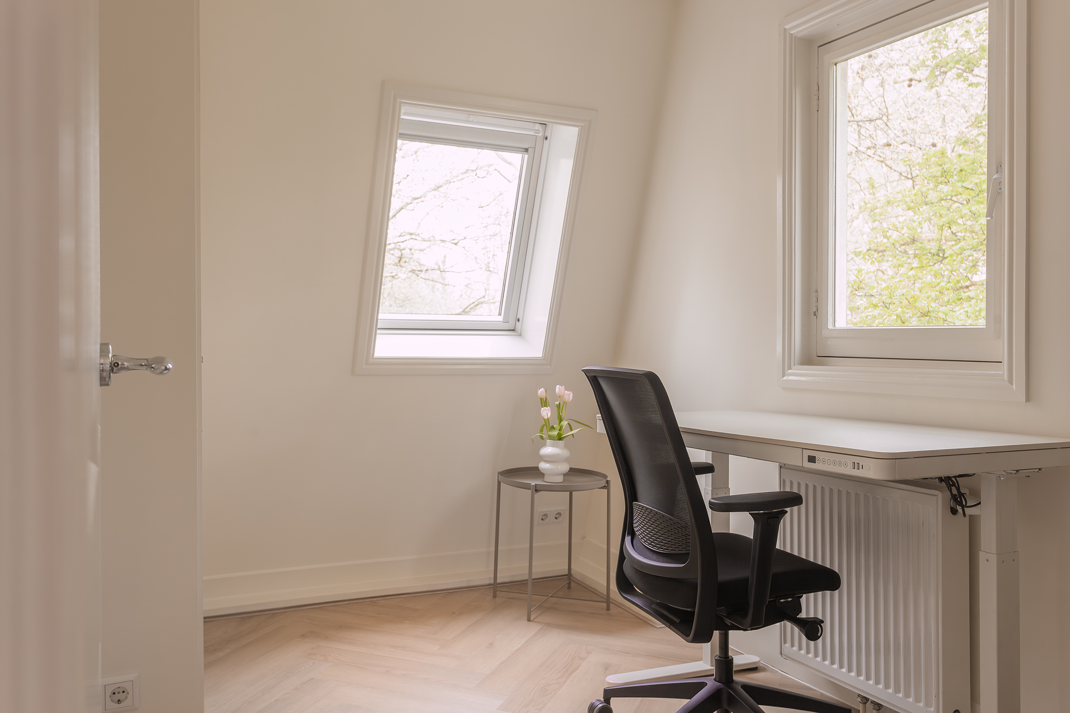 This two-bedroom apartment on Amstelveenseweg has it all sorted. Completely renovated in 2025 with high-end finishes throughout. A private roof terrace. A west-facing balcony with open views over the treetops. And just three minutes on foot to the Amsterdamse Bos. One of Europe’s largest urban forests. On top of that: freehold land, no ground lease, and a VvE of only € 55 per month. It’s the kind of home that’s genuinely hard to find.