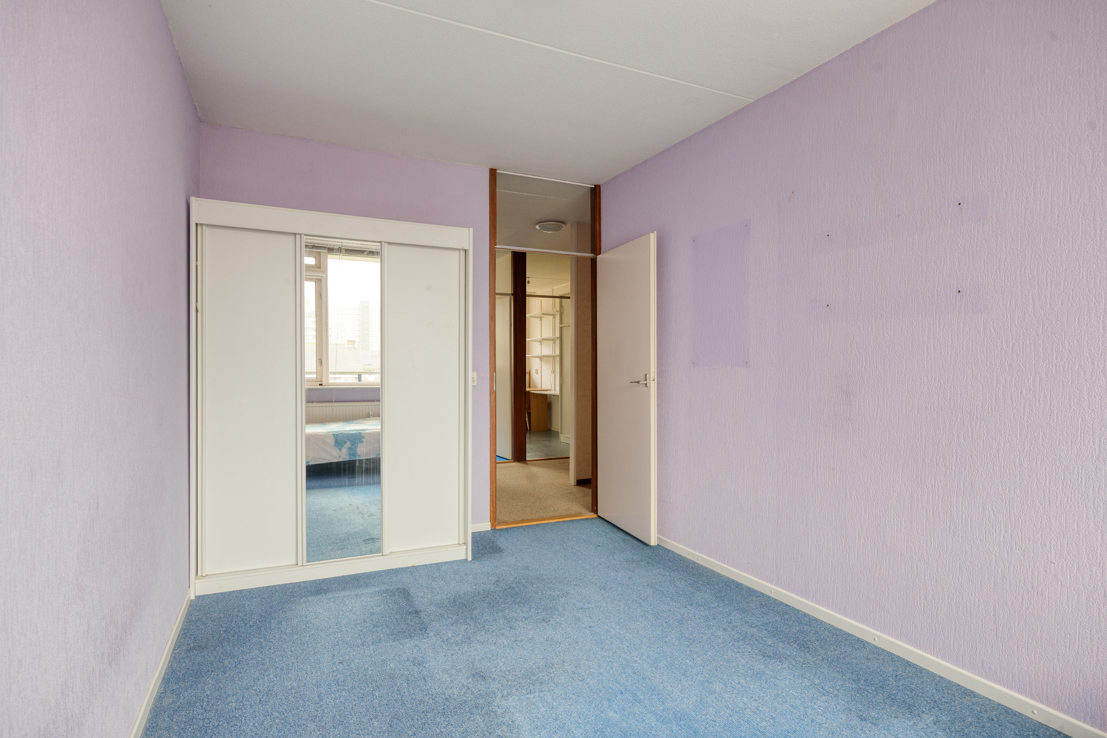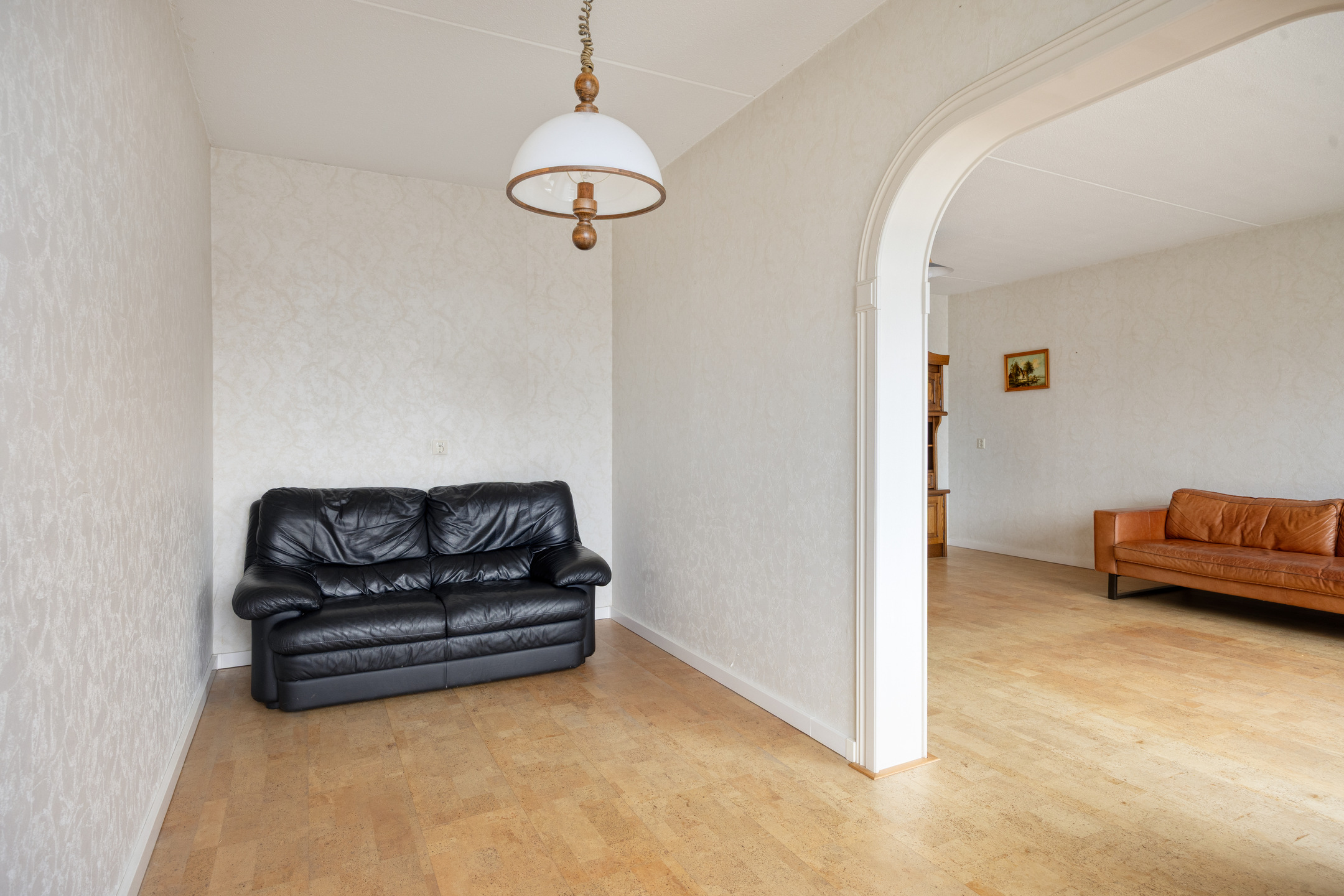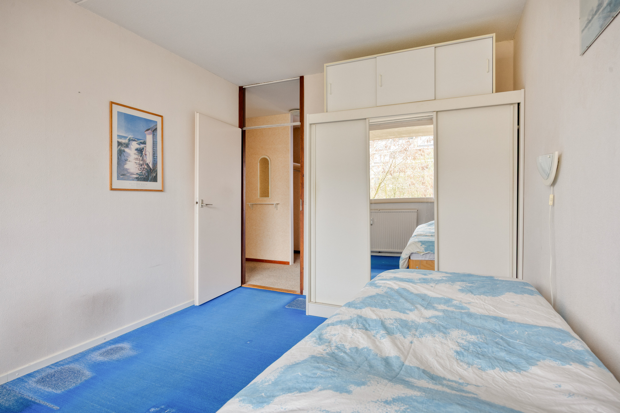 The tiled bathroom is accessible from the hallway and is equipped with a bathtub with shower, a washbasin with mirror and practical storage space. In addition, there is a separate toilet, providing extra comfort in daily use. Here too, you have the opportunity to modernise the space entirely to your own taste and style.
