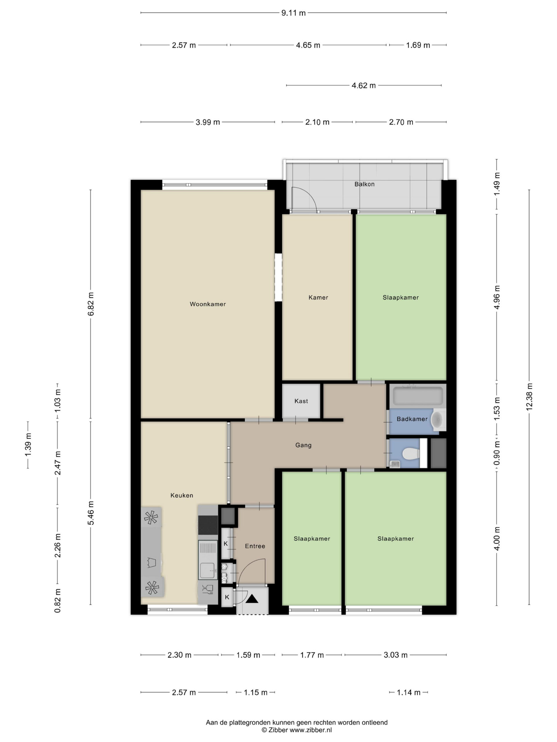 The three bedrooms are all accessible from the hallway and are each spacious and bright. Every room offers sufficient space for a bed, desk and wardrobe, allowing flexible use as a bedroom, home office or hobby room. Thanks to the comfortable dimensions, each room feels pleasant and offers plenty of possibilities.