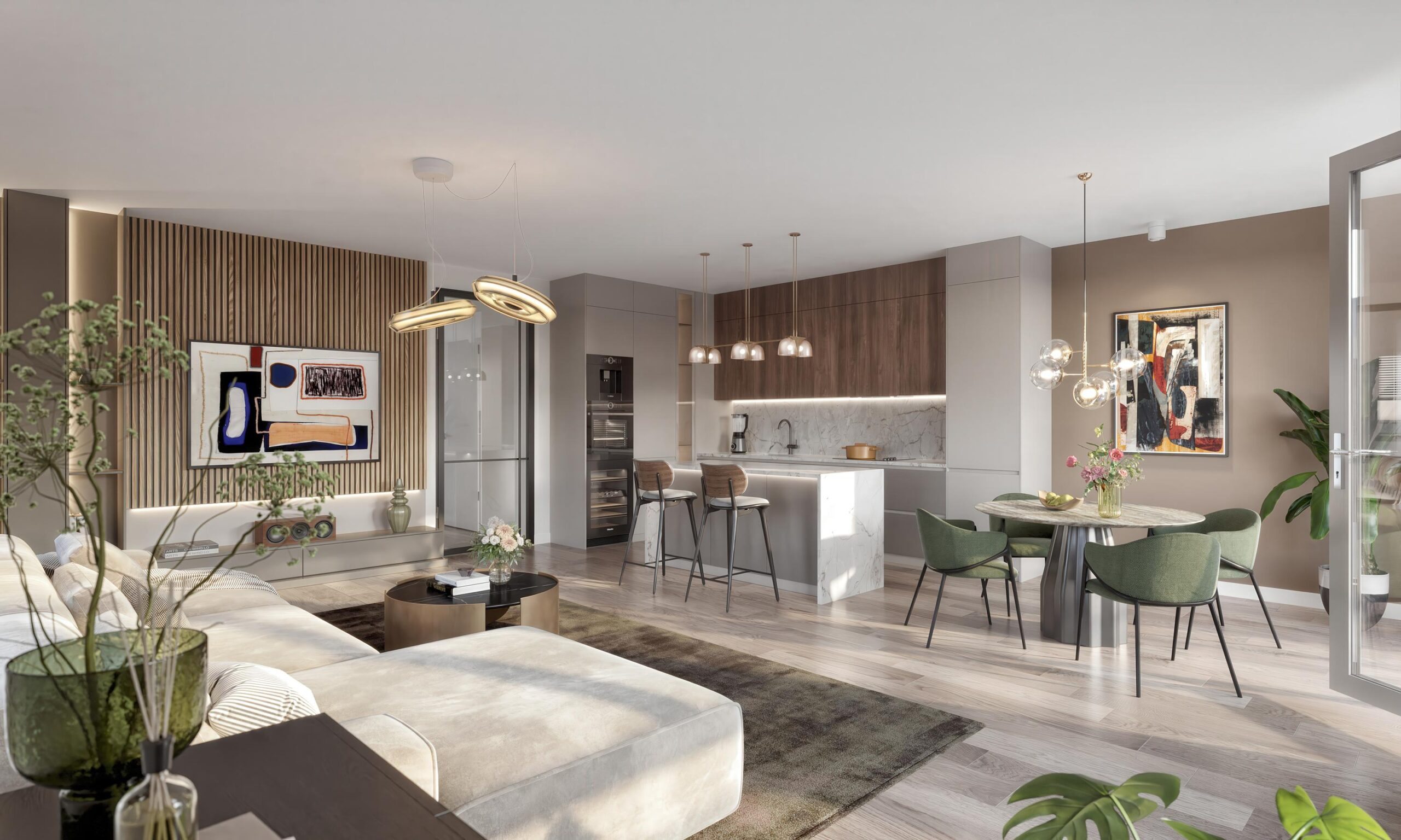 3-room apartments: Space and light, 79–85 m² with a generous living room and a balcony for any time of the day.