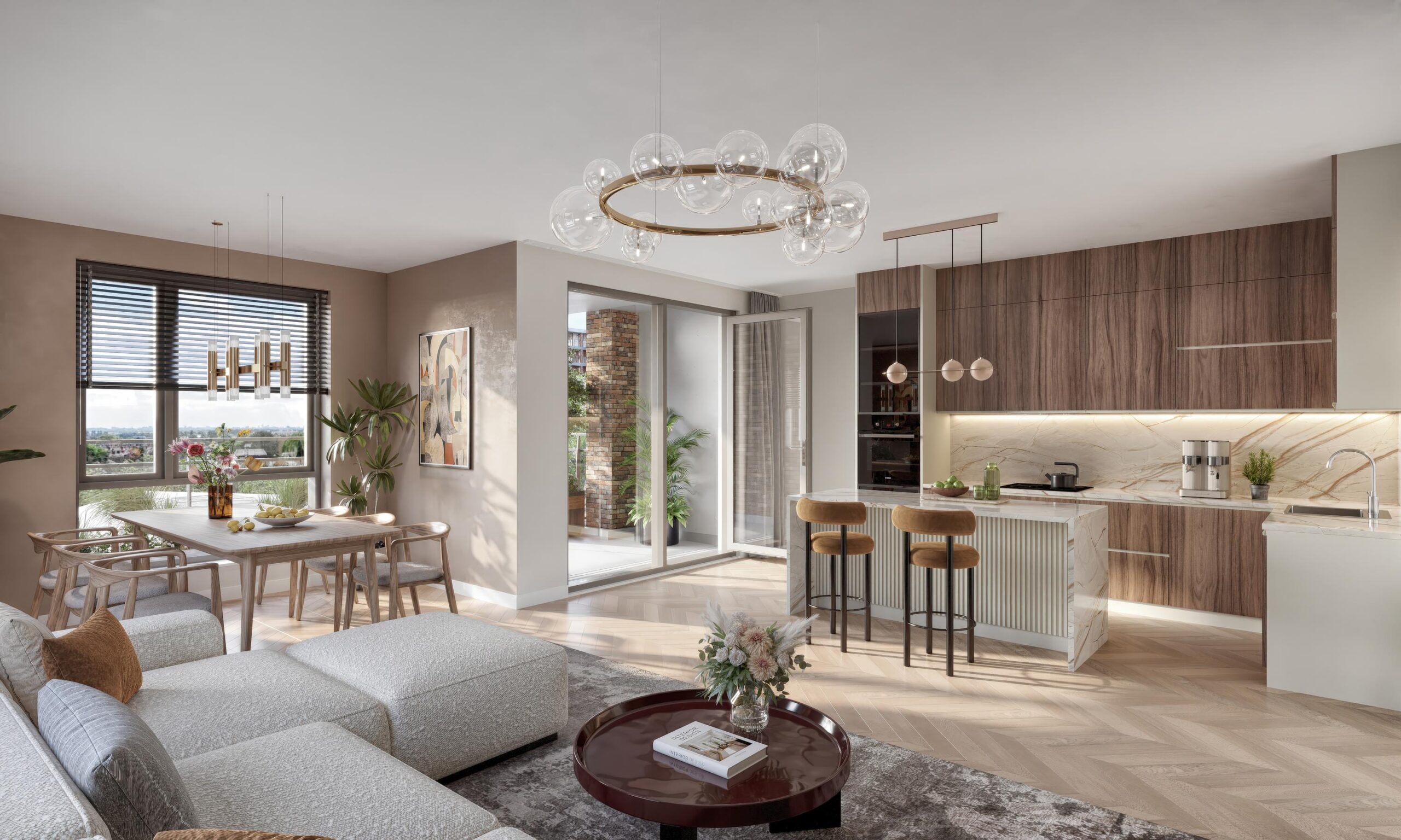 3-room apartments: Space and light, 79–85 m² with a generous living room and a balcony for any time of the day.