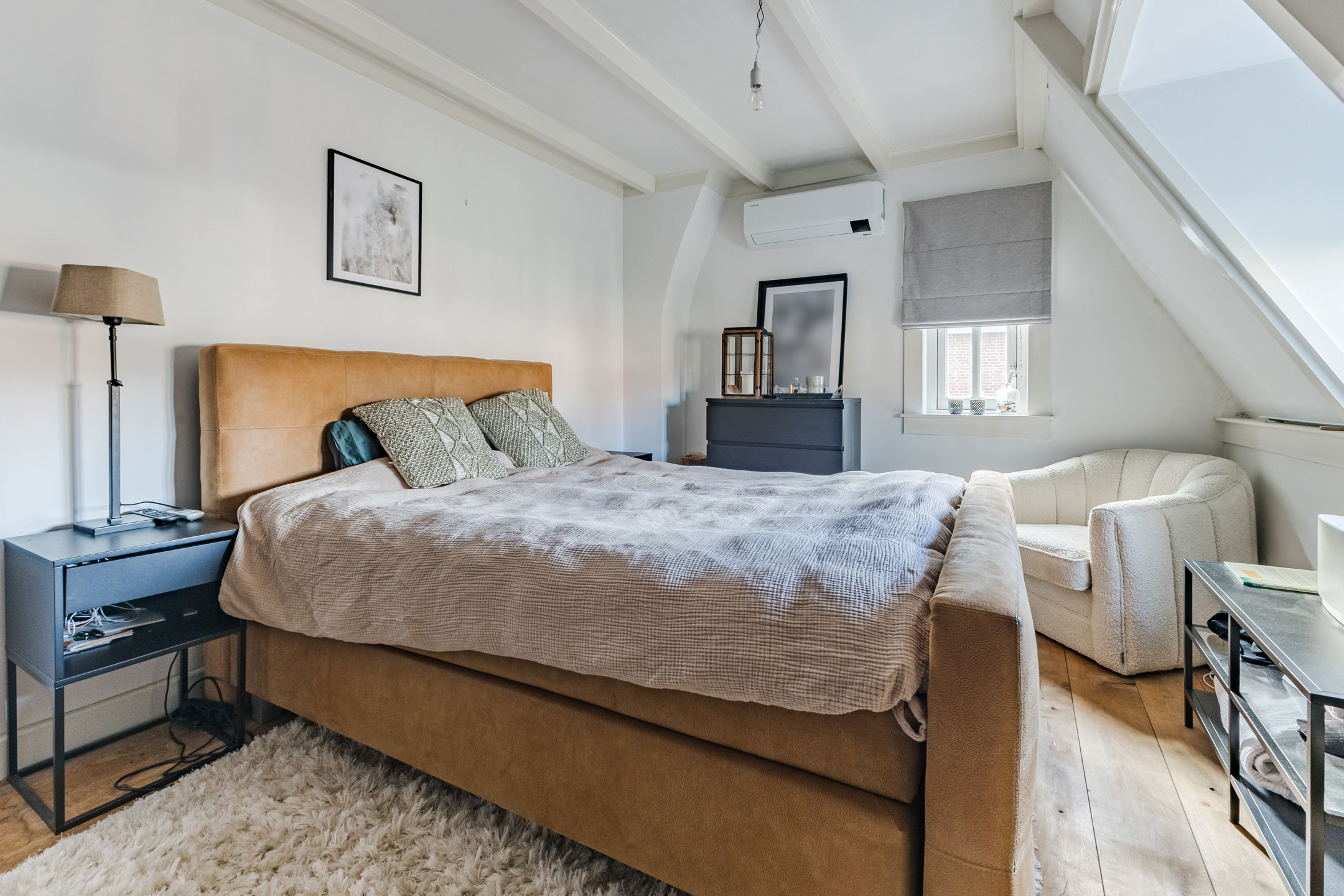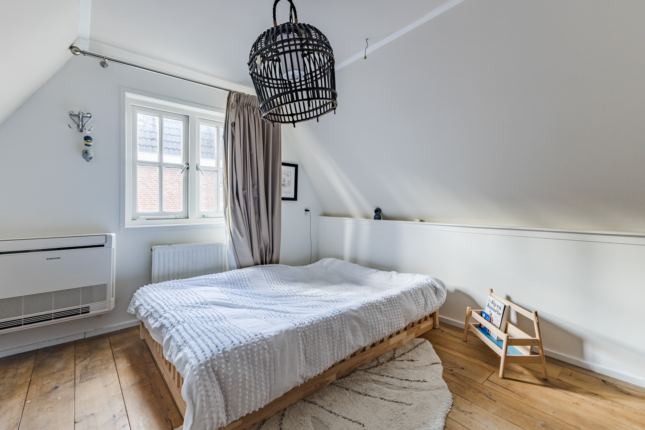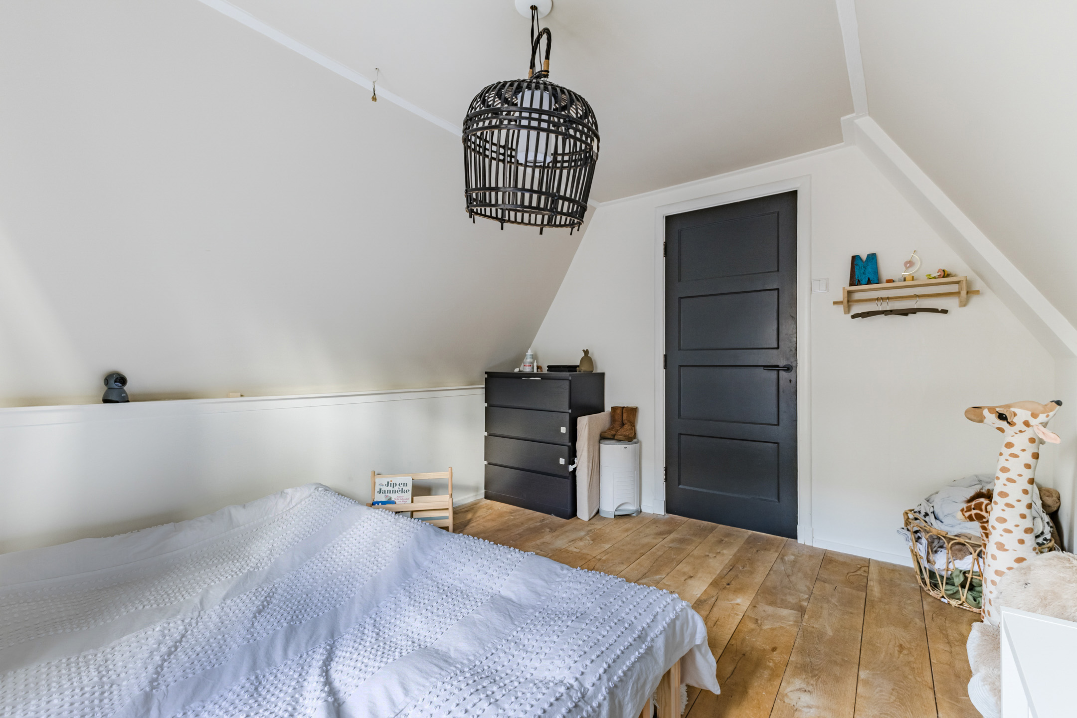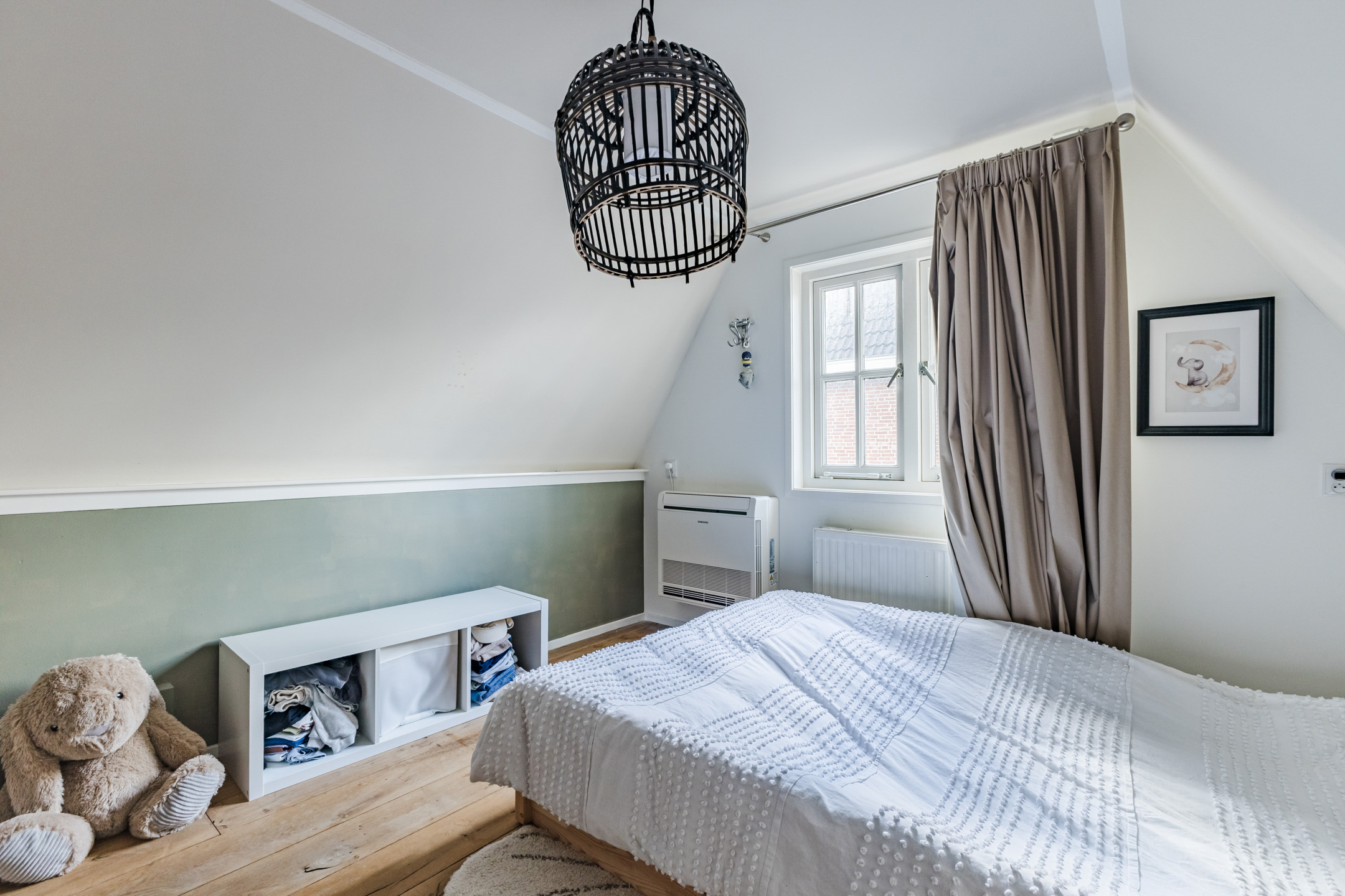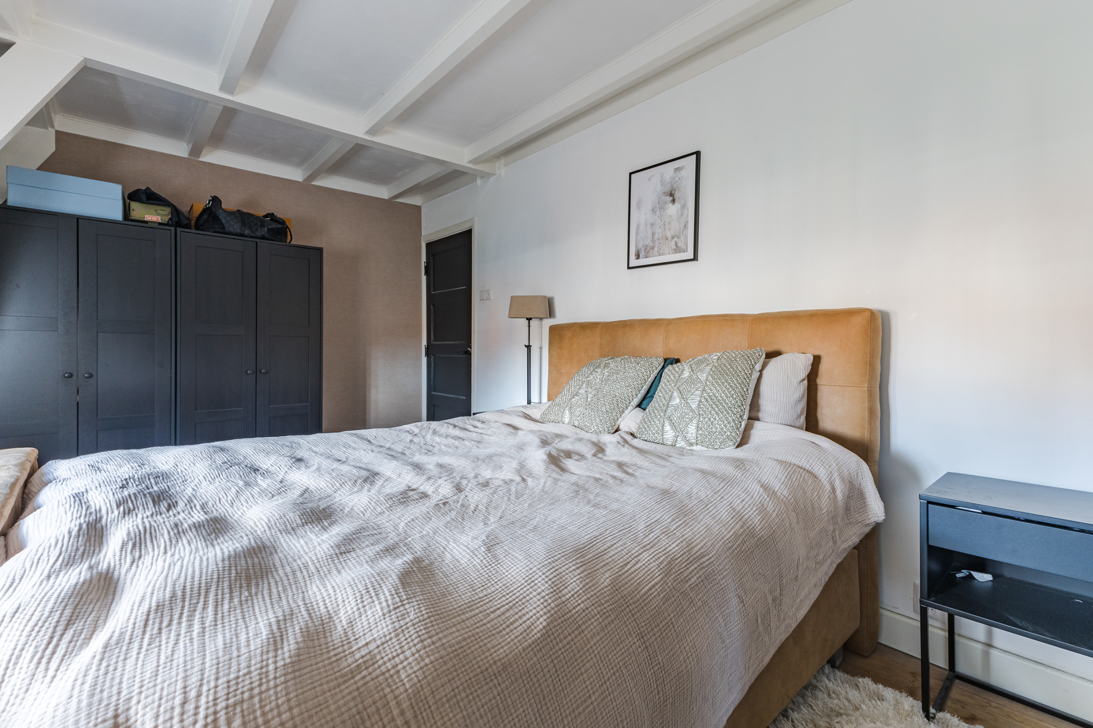 The house has a unique, almost English cottage-like, layout with a sunny living room with a bay window and beamed ceiling as well as a spacious, separate kitchen/dining area with a high vaulted ceiling (almost 5 meters high!) with exposed beams that create a rustic atmosphere. On the first floor, you will find 2 large bedrooms and the new bathroom, and one floor higher, we find the handy storage attic, which is accessible by a fixed staircase and therefore offers potential for a third bedroom!
