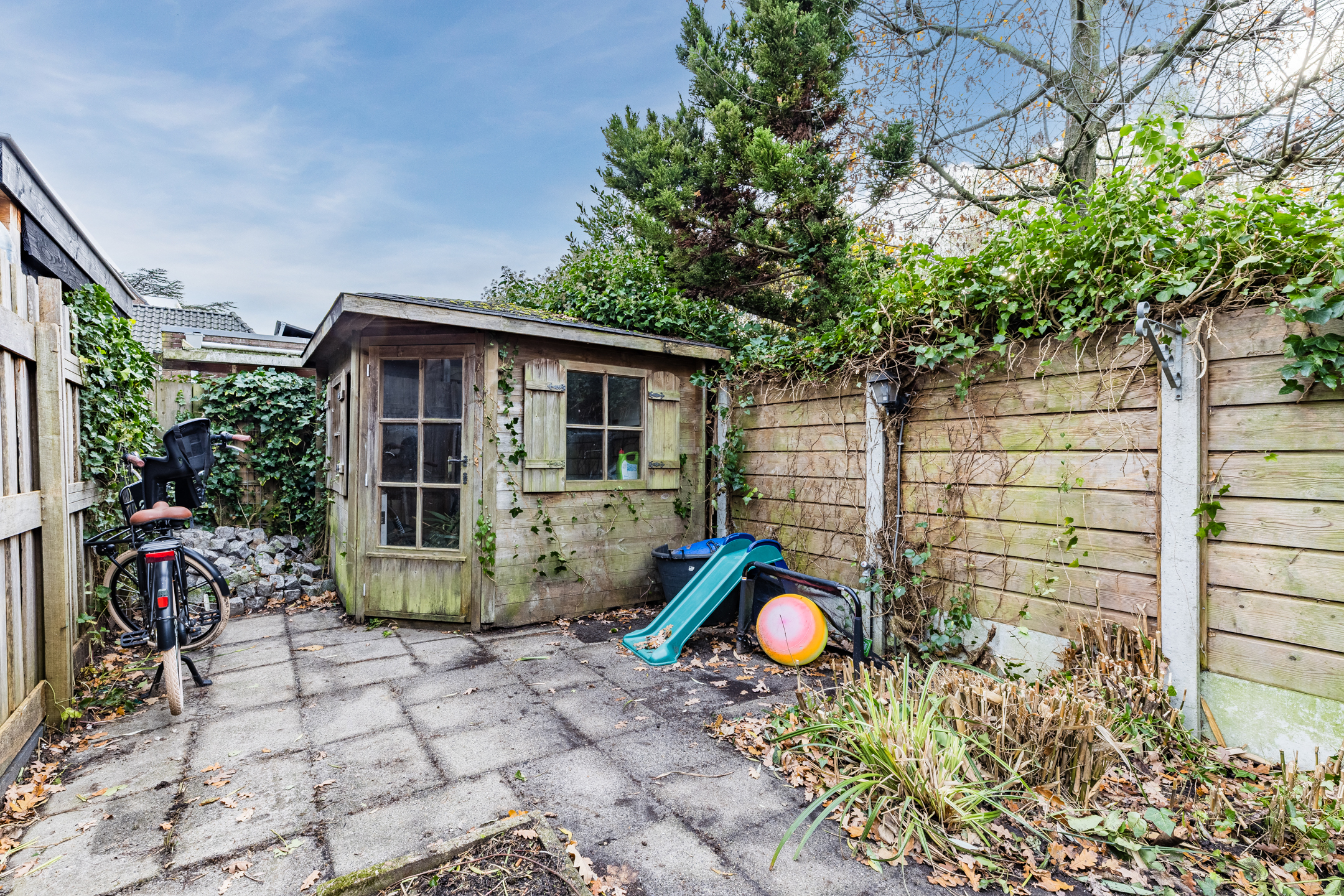 The house is situated on a spacious plot and has a large garden surrounding the house. At the very back of the garden stands a handy wooden shed which is equipped with electricity.