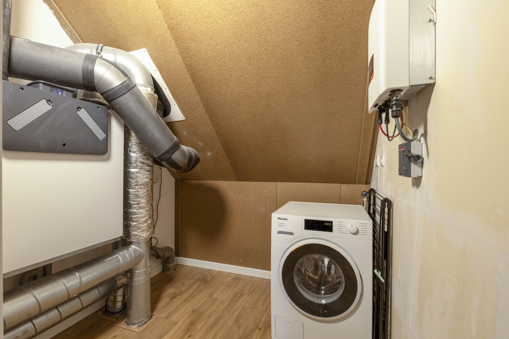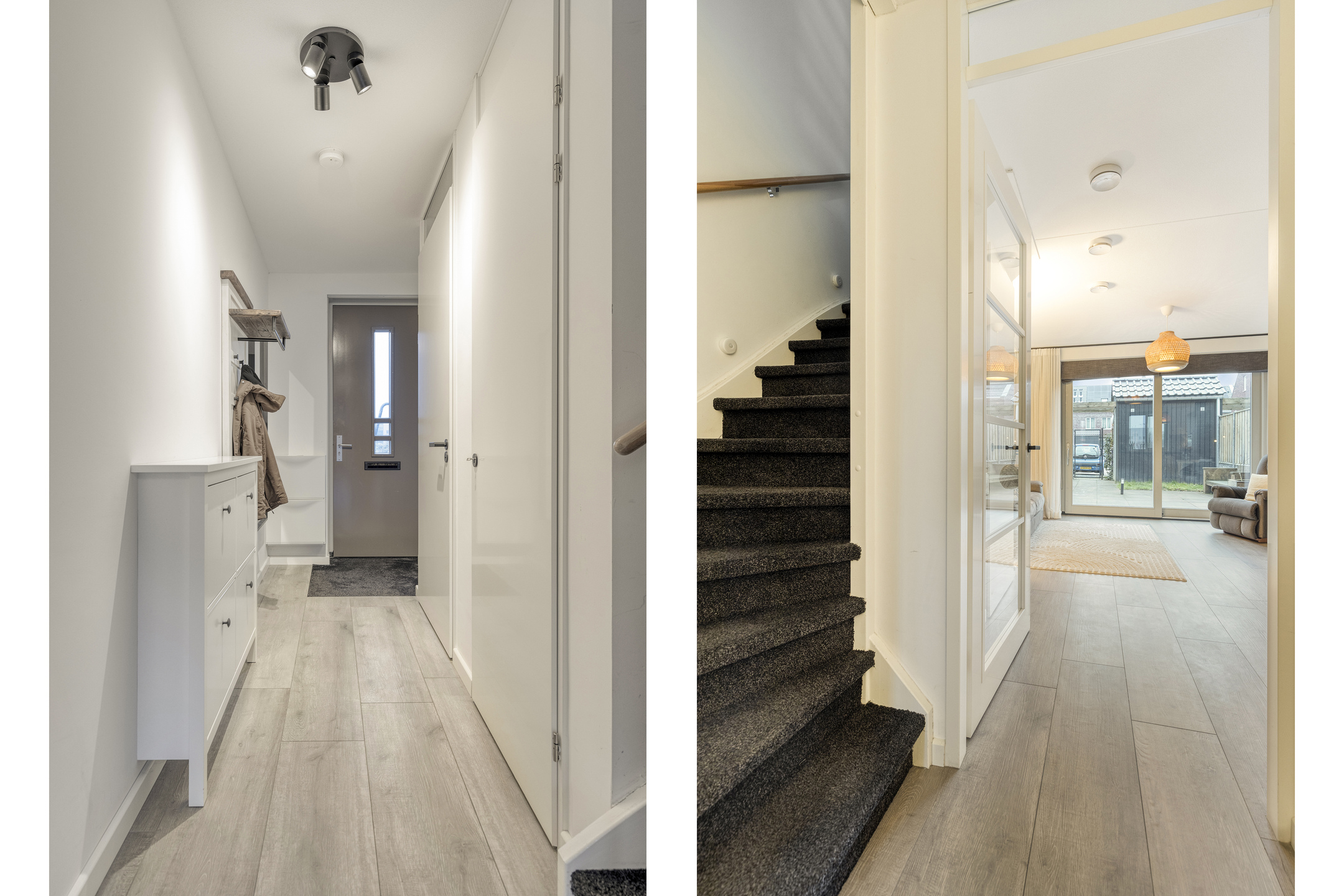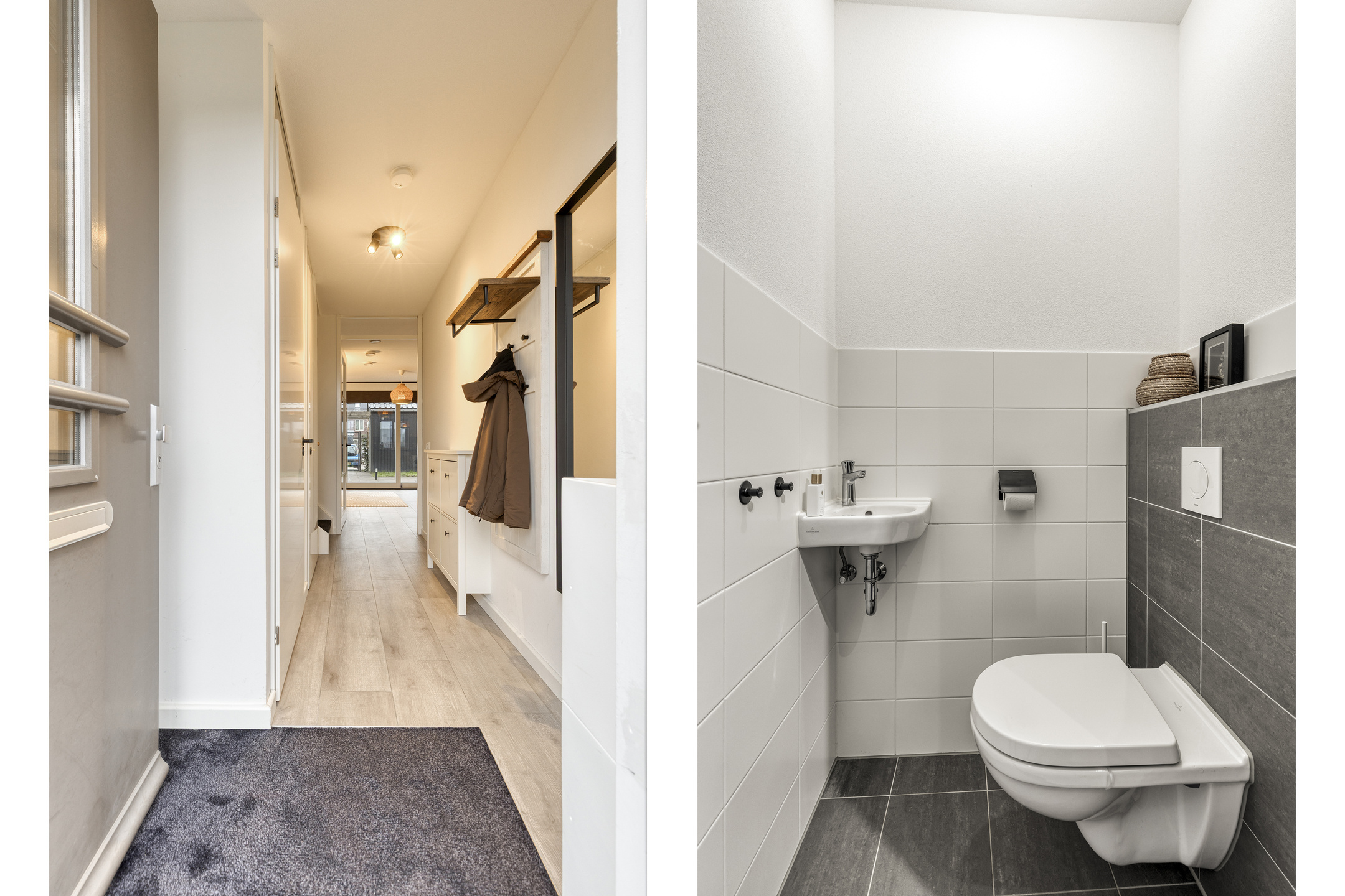 Via the entrance, you enter the hallway with cloakroom area, meter cupboard and a