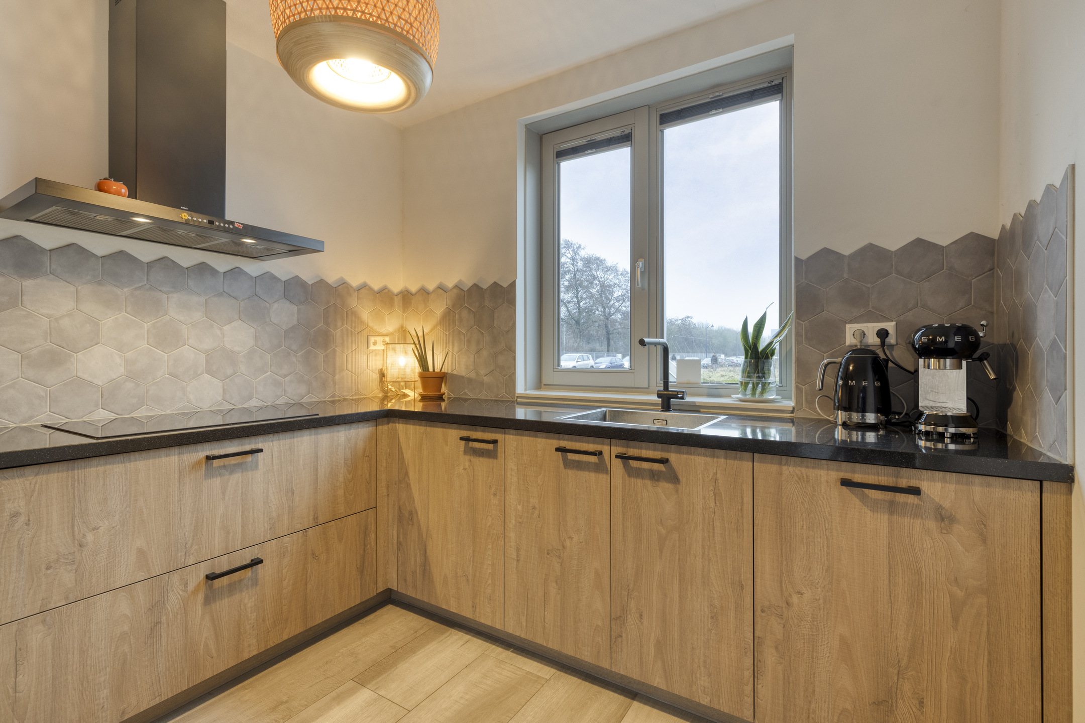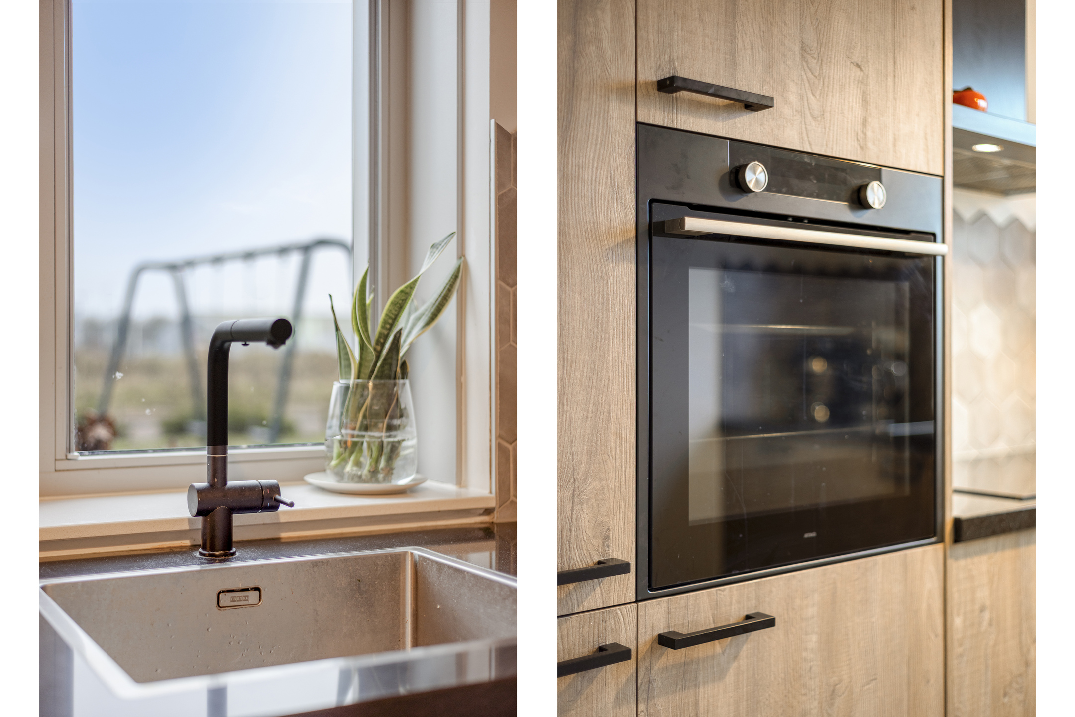 fixed cabinetry, integrated appliances (induction hob, extractor hood, combi oven,