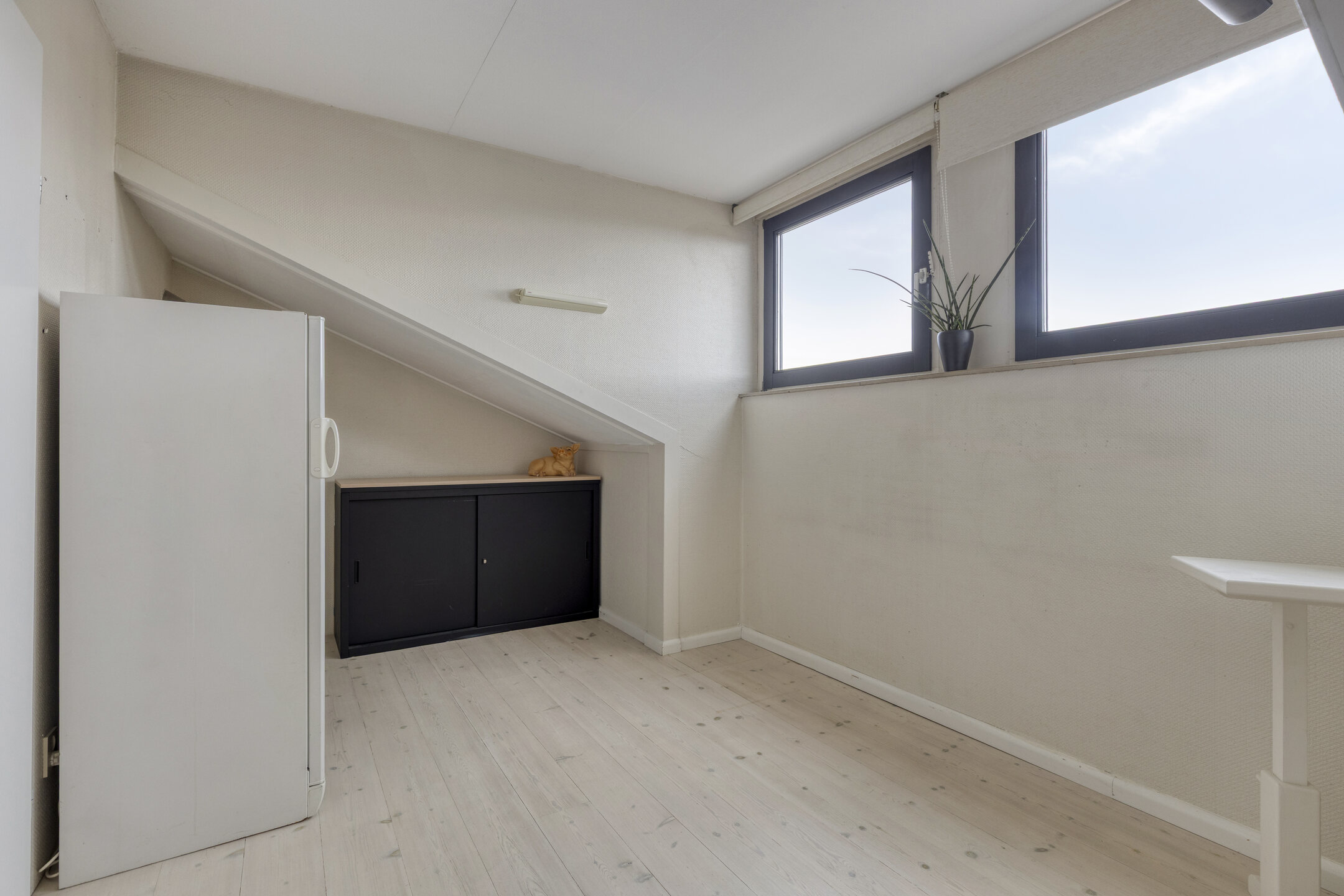 Via a fixed staircase, you reach the second floor. Here you will find two additional bedrooms and a separate laundry room. This laundry room can easily be converted into a second bathroom. These rooms are bright and well-sized, making them ideal as extra bedrooms, workspaces, or hobby rooms—a valuable extension of the living space. A loft has also been converted on this floor. It’s perfect for storage.