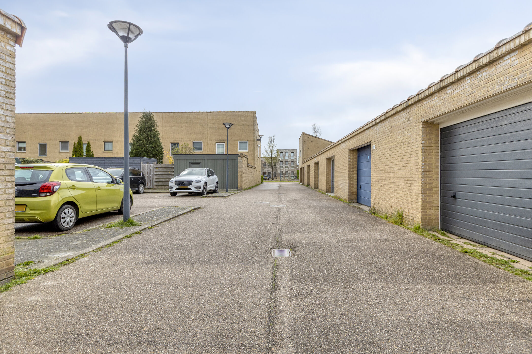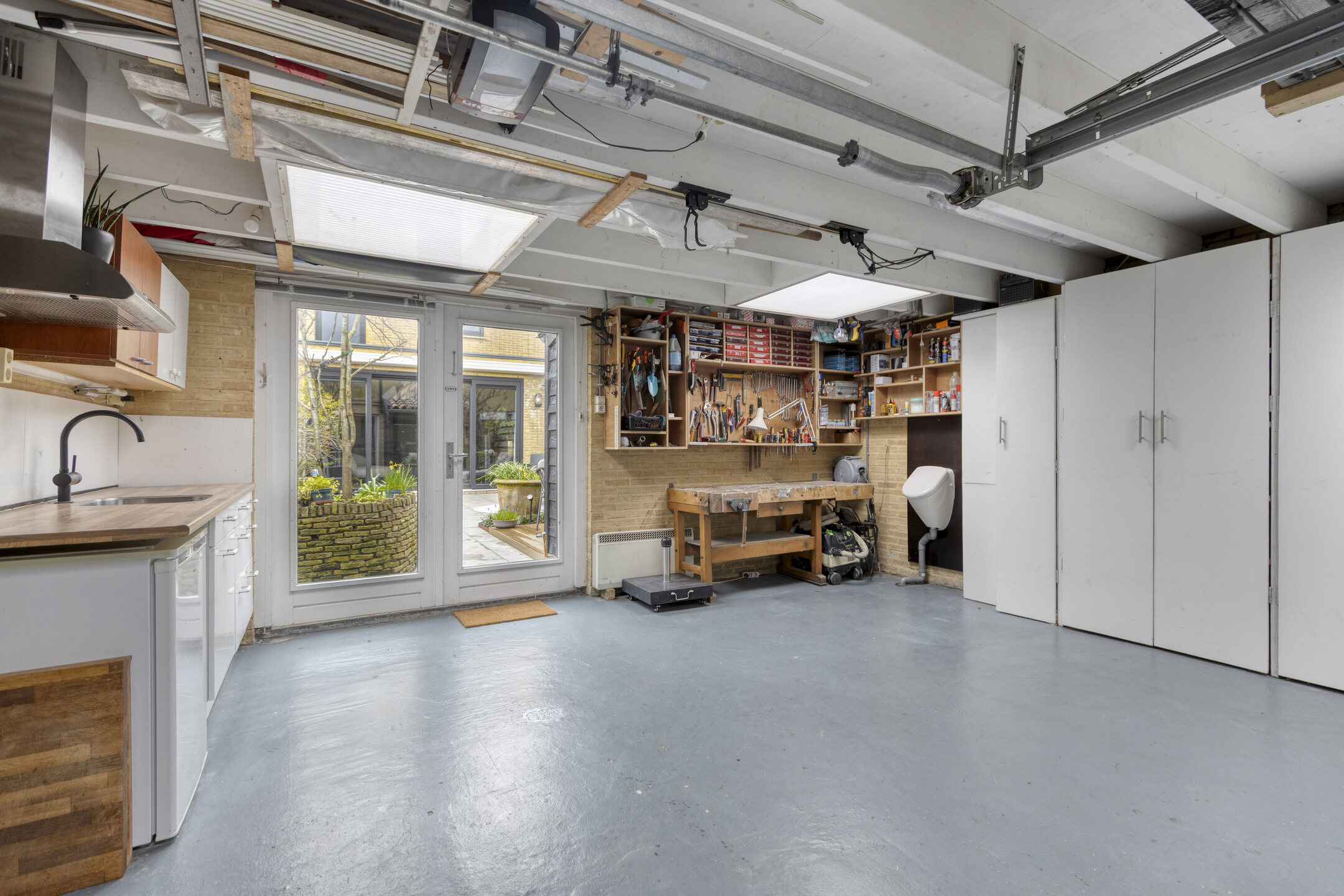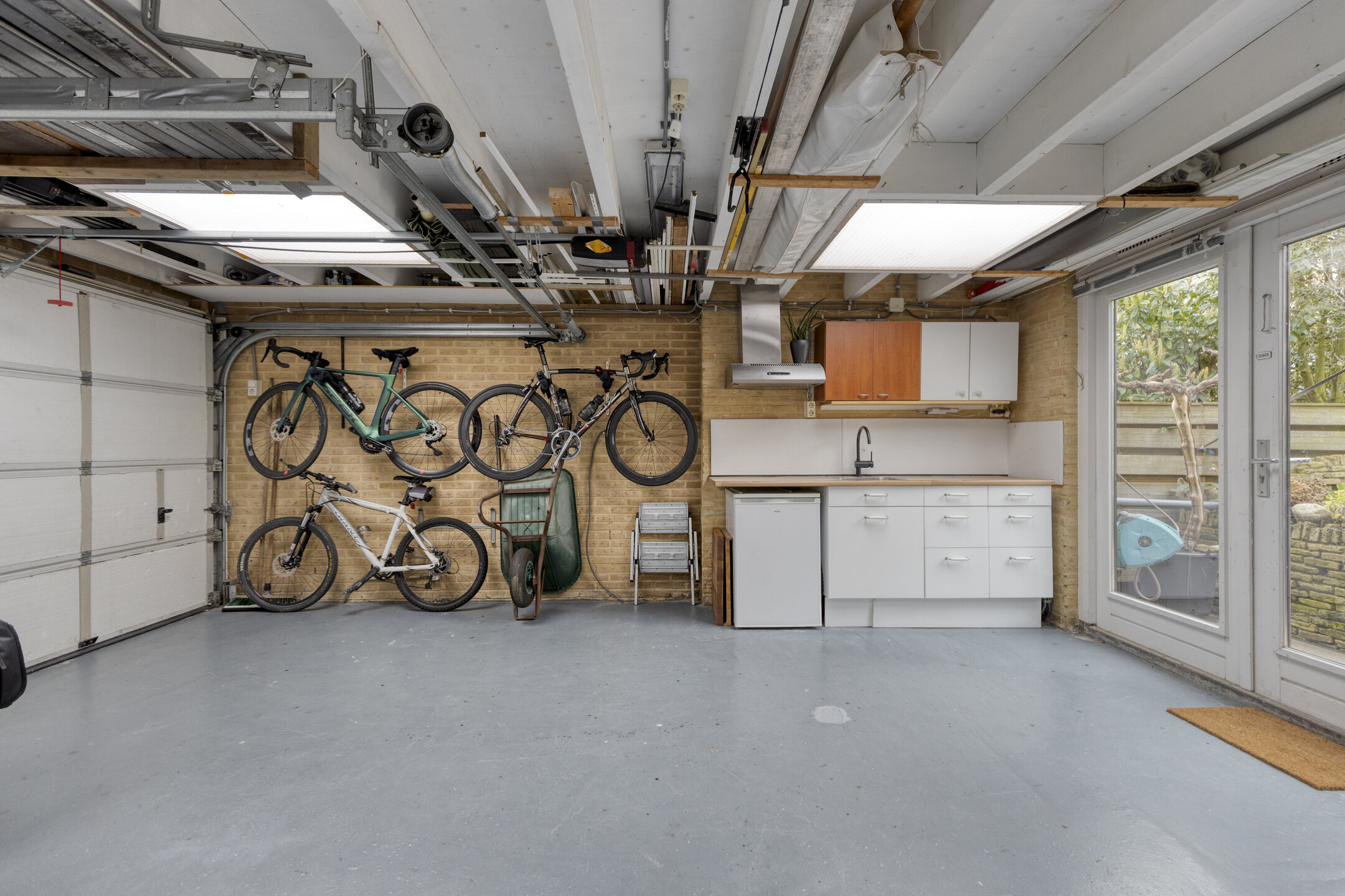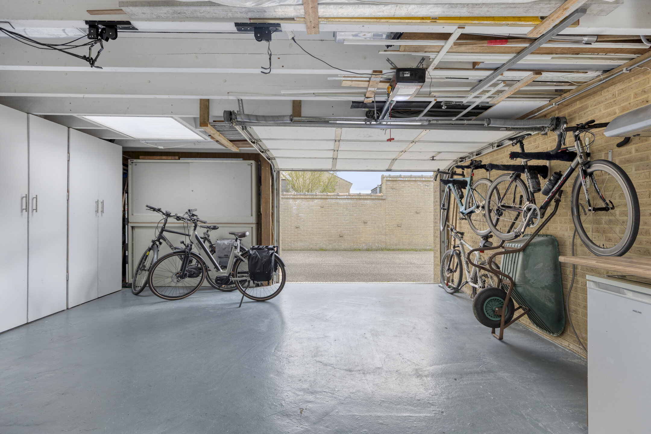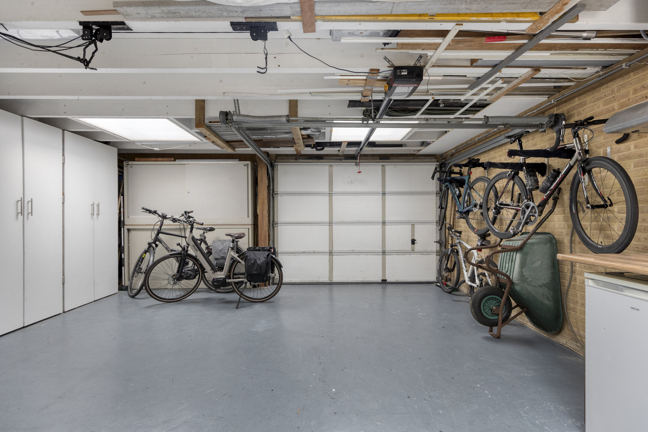 At the rear of the property, there is a spacious garage with a roller door. It offers space for a car but is also ideal for storing bicycles or creating additional storage. Since this space is connected to the sewer system and is fully insulated, it would be easy to convert it into an office or a hobby room. A practical addition that enhances living comfort.