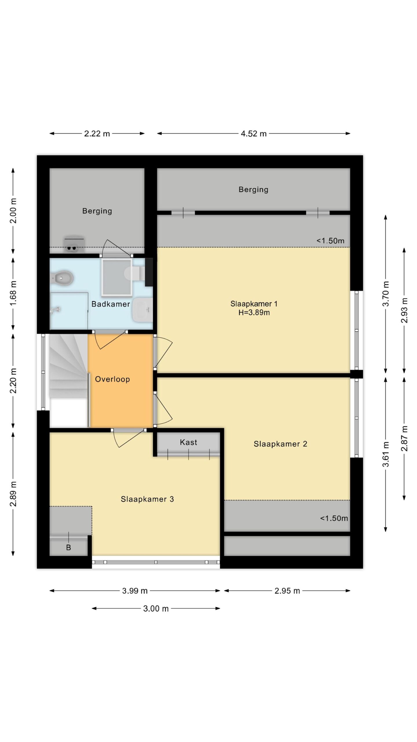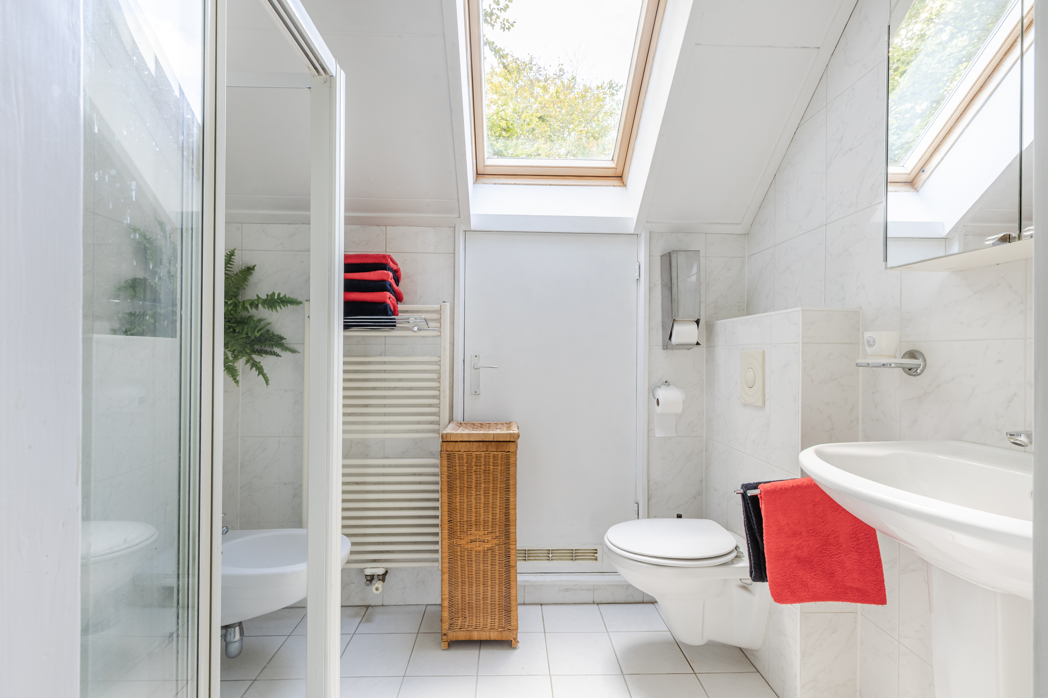 Landing providing access to 3 bedrooms and the second bathroom. 2 bedrooms have a built-in wardrobe. The bathroom is equipped with a second toilet, bidet, washbasin and a walk-in shower.