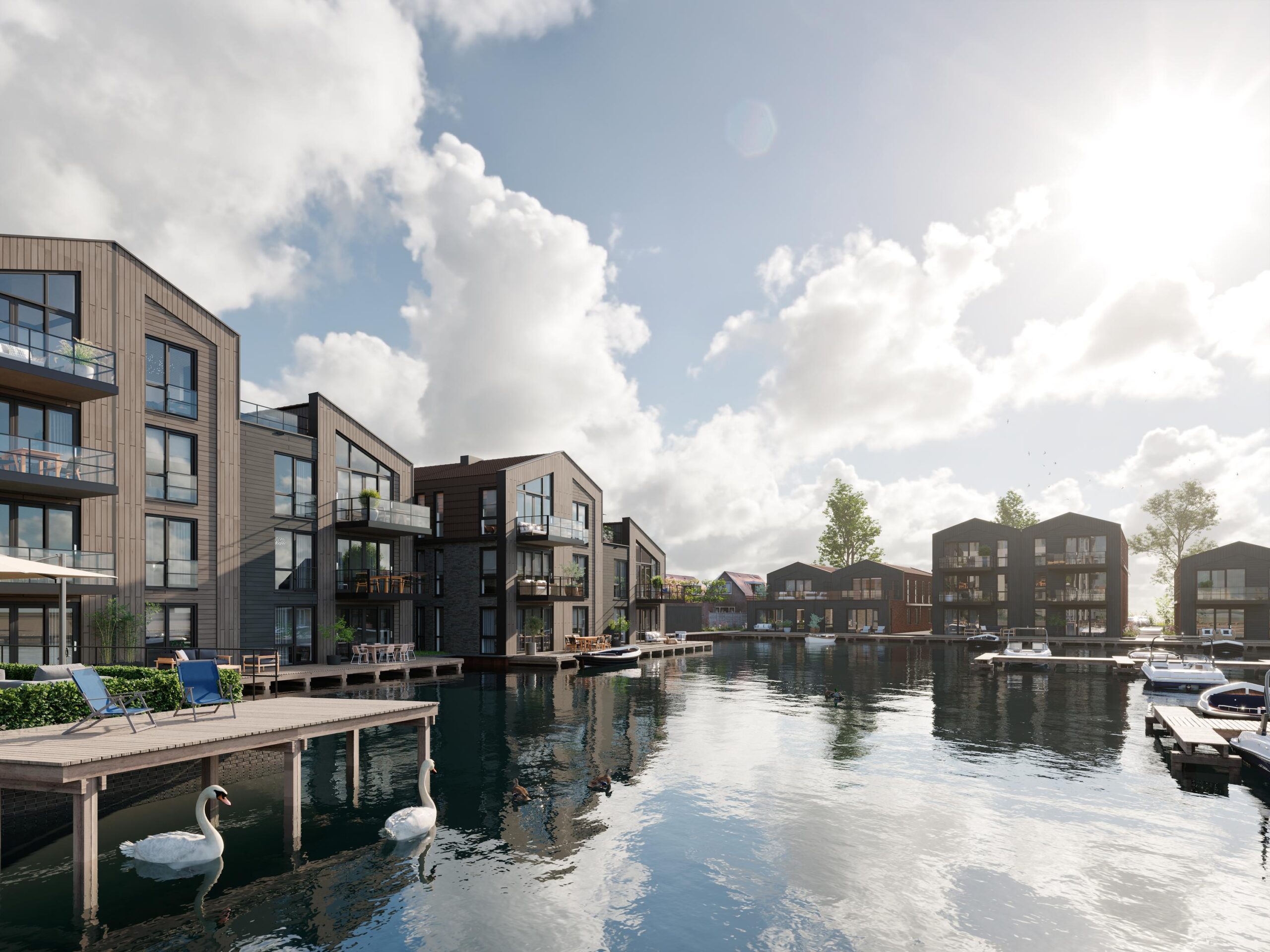 De bovenste appartementen in woonblok E hebben zelfs dakterrassen waar u geniet van een vrij uitzicht over het uitgestrekte meer. U heeft de keuze uit royale 2, 3 en 4-kamer appartementen. Bij dit woonproject is duurzaamheid een belangrijk uitgangspunt. Zo worden de woningen volledig gasloos en krijgt elke woning een eigen individuele (aard)warmtepomp. Hierdoor profiteert u van zeer lage energielasten.