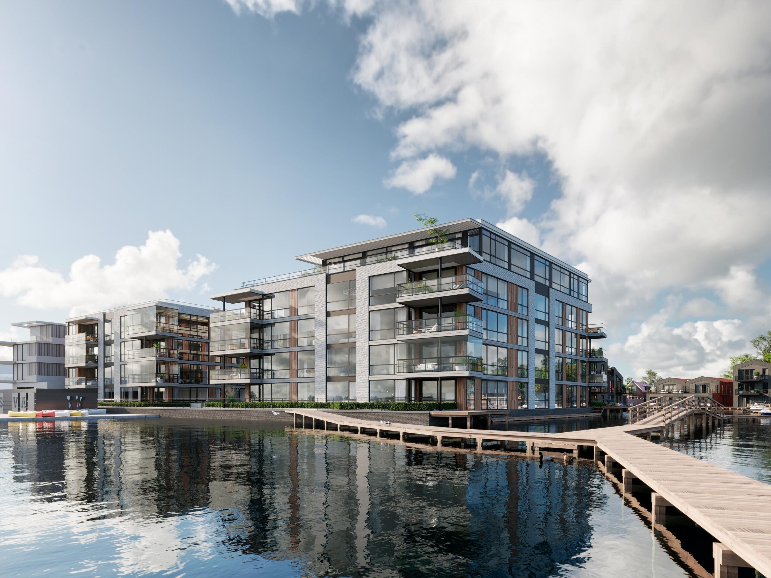 De bovenste appartementen in woonblok E hebben zelfs dakterrassen waar u geniet van een vrij uitzicht over het uitgestrekte meer. U heeft de keuze uit royale 2, 3 en 4-kamer appartementen. Bij dit woonproject is duurzaamheid een belangrijk uitgangspunt. Zo worden de woningen volledig gasloos en krijgt elke woning een eigen individuele (aard)warmtepomp. Hierdoor profiteert u van zeer lage energielasten.