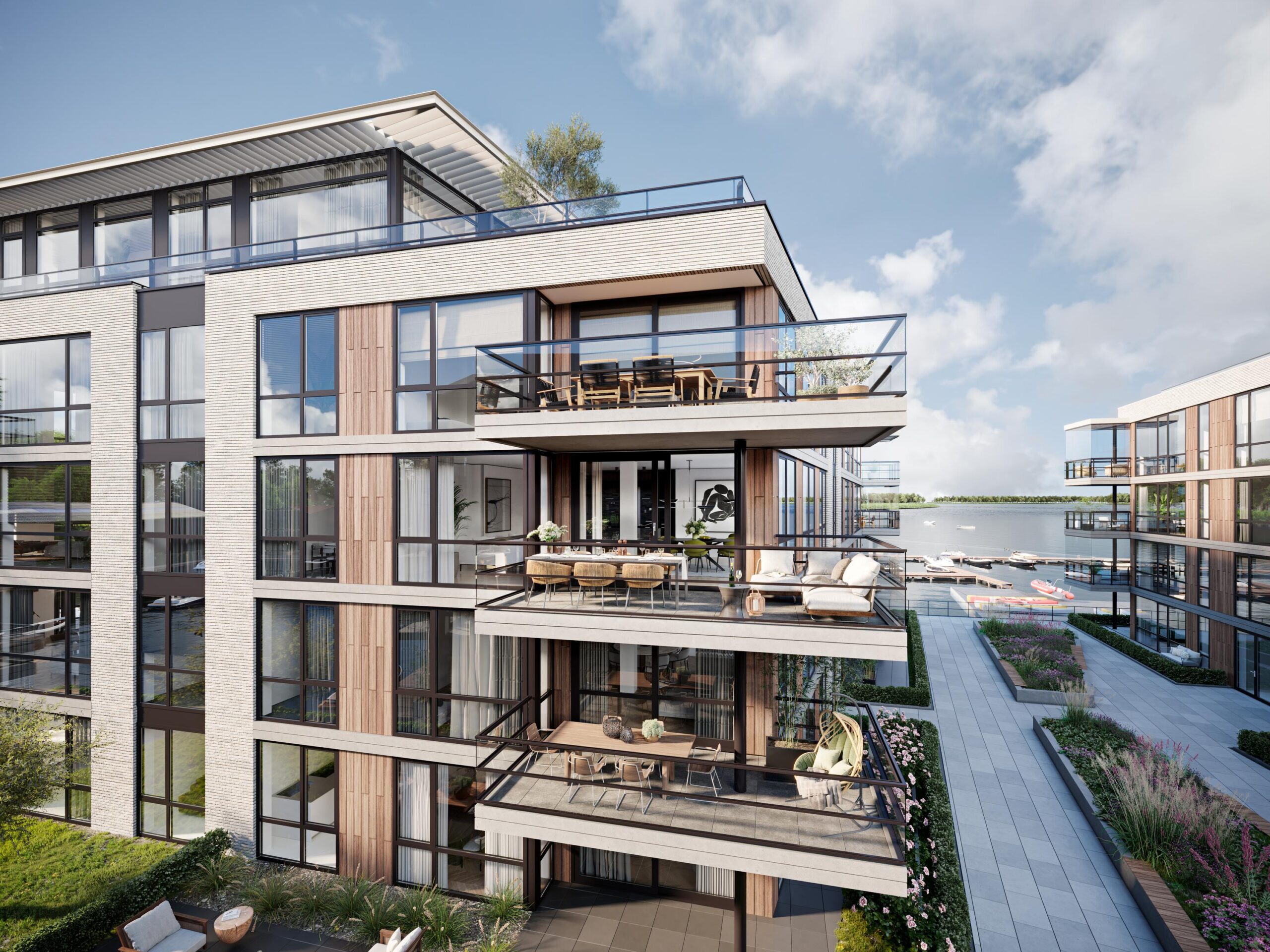 De bovenste appartementen in woonblok E hebben zelfs dakterrassen waar u geniet van een vrij uitzicht over het uitgestrekte meer. U heeft de keuze uit royale 2, 3 en 4-kamer appartementen. Bij dit woonproject is duurzaamheid een belangrijk uitgangspunt. Zo worden de woningen volledig gasloos en krijgt elke woning een eigen individuele (aard)warmtepomp. Hierdoor profiteert u van zeer lage energielasten.
