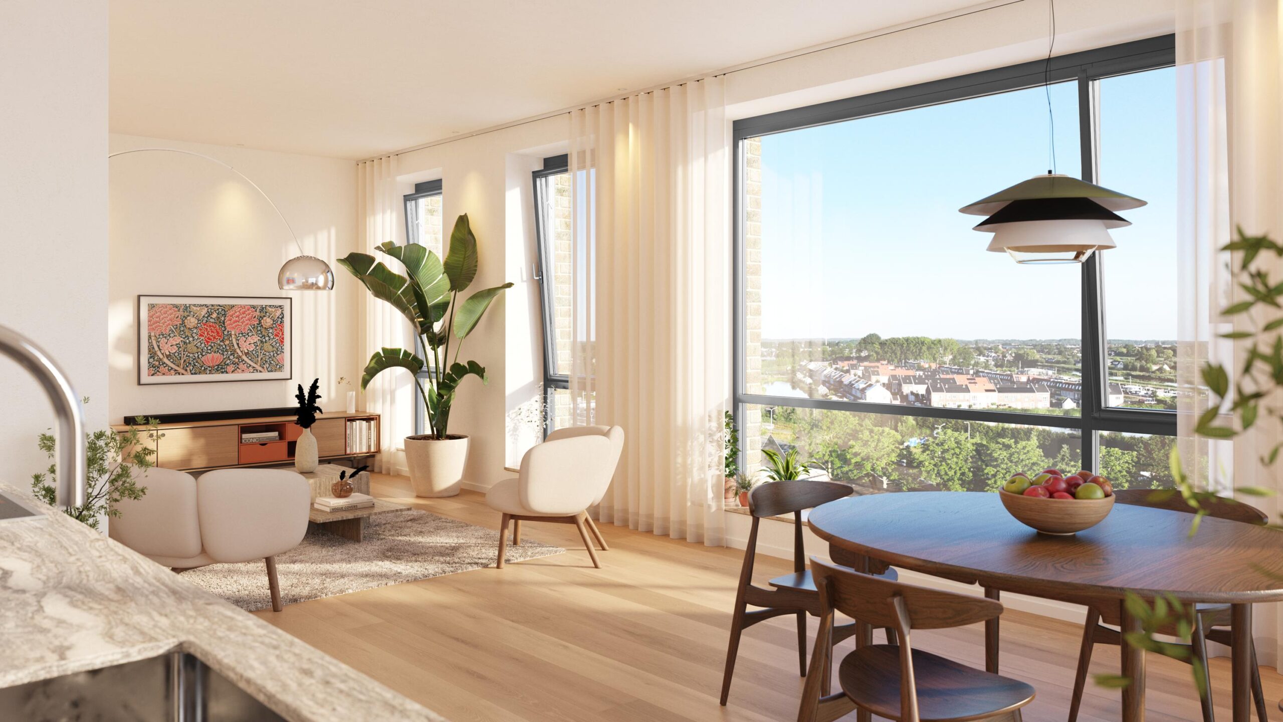 Je eigen appartement bereik je door in de riante lobby één van de twee liften te nemen of via het trappenhuis. Op de verdieping zijn de appartementen met elkaar verbonden via een hoogwaardig afgewerkte gang voor een luxe hotelgevoel. In zowel de woon- als slaapkamers zorgen de verdiepingshoge ramen voor veel natuurlijk licht in de ruimte. Dit geeft een heerlijk ruimtelijk gevoel. Alle woningen zijn voorzien van 1 badkamer en een apart toilet. Uiteraard zijn de woningen gasloos en voorzien van vloerverwarming.