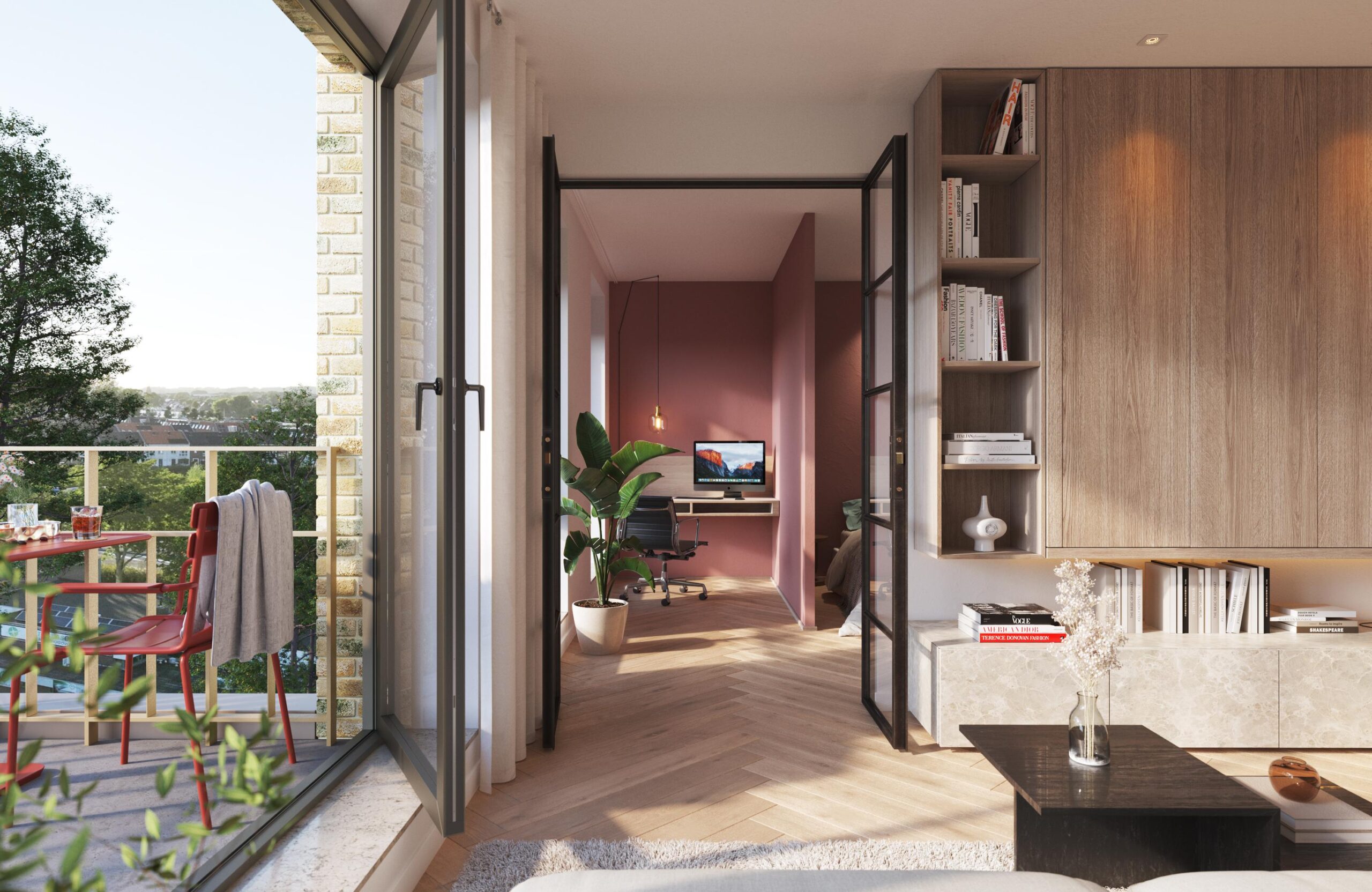 Voor dit appartement heeft u de vrijheid om deze naar eigen wens in te delen. U kunt kiezen voor 1 slaapkamer en daarmee de living nog meer vergroten. Of kiest u voor een slaapkamer met nog een extra kamer bereikbaar via openslaande deuren vanuit de living. De keuze is aan u!