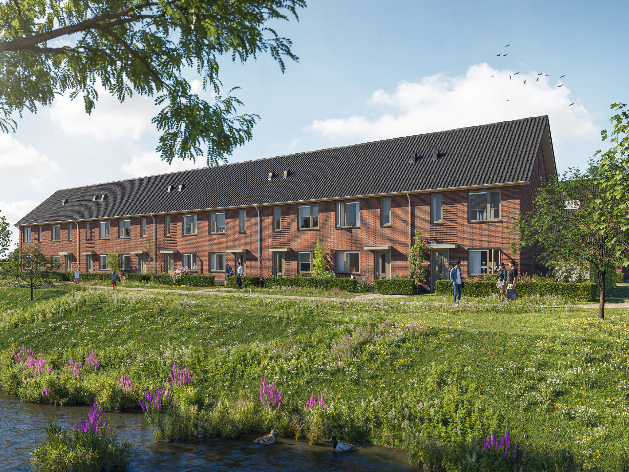 Compact qua formaat, maar meer dan compleet. Deze 7 tussenwoningen met warme gevel hebben alles in huis voor een jong gezin. Het luifeltje boven de voordeur geeft een warm ontvangst en de dakkapel op zolder - bij een deel van de woningen - levert net dat beetje extra ruimte op. De berging in de achtertuin houdt fietsen en speelgoed netjes opgeborgen, en parkeren? Dat kan in de hofjes in de buurt. Zo blijft de straat vrij om te spelen, te wandelen en te ontmoeten.