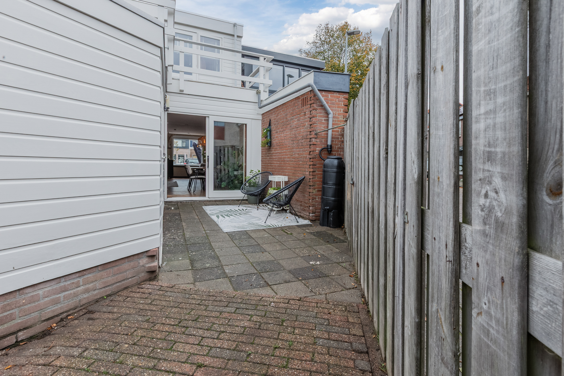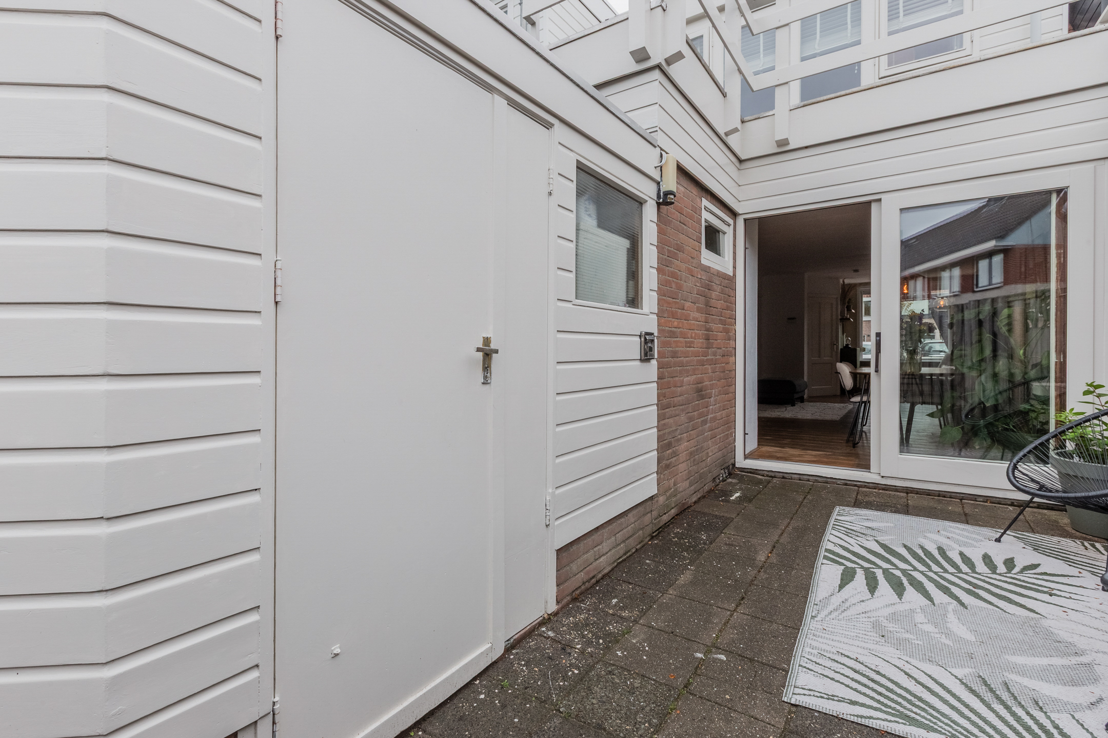 Middels de schuifpui is er toegang tot de tuin en de badkamer bevindt zich achter de keuken.