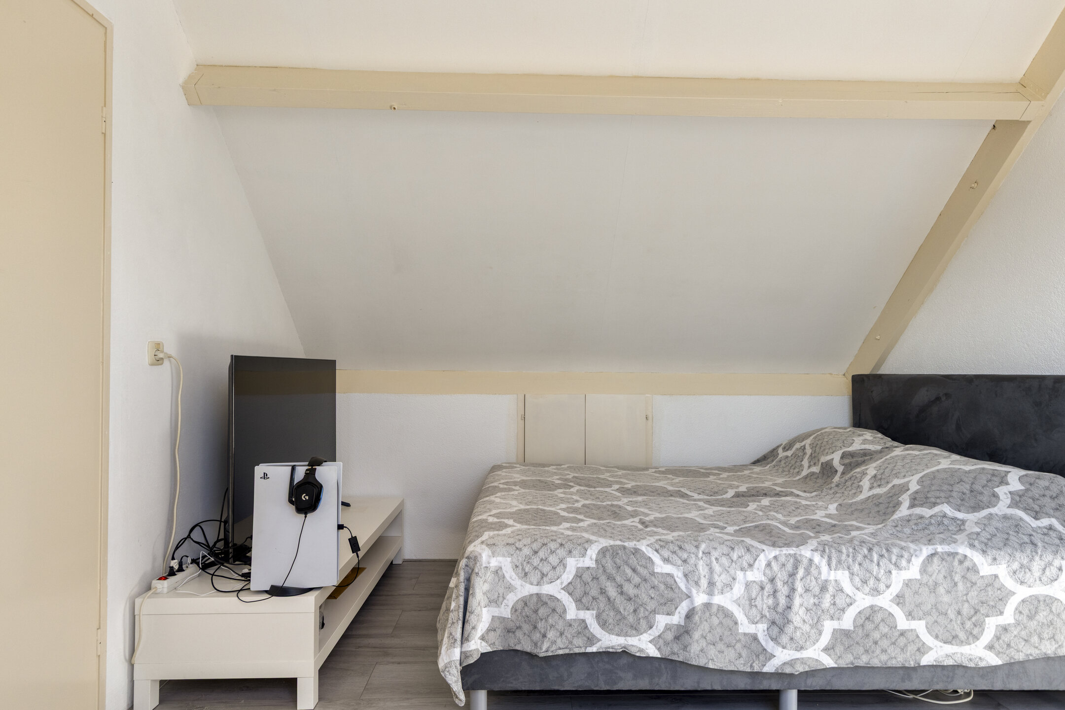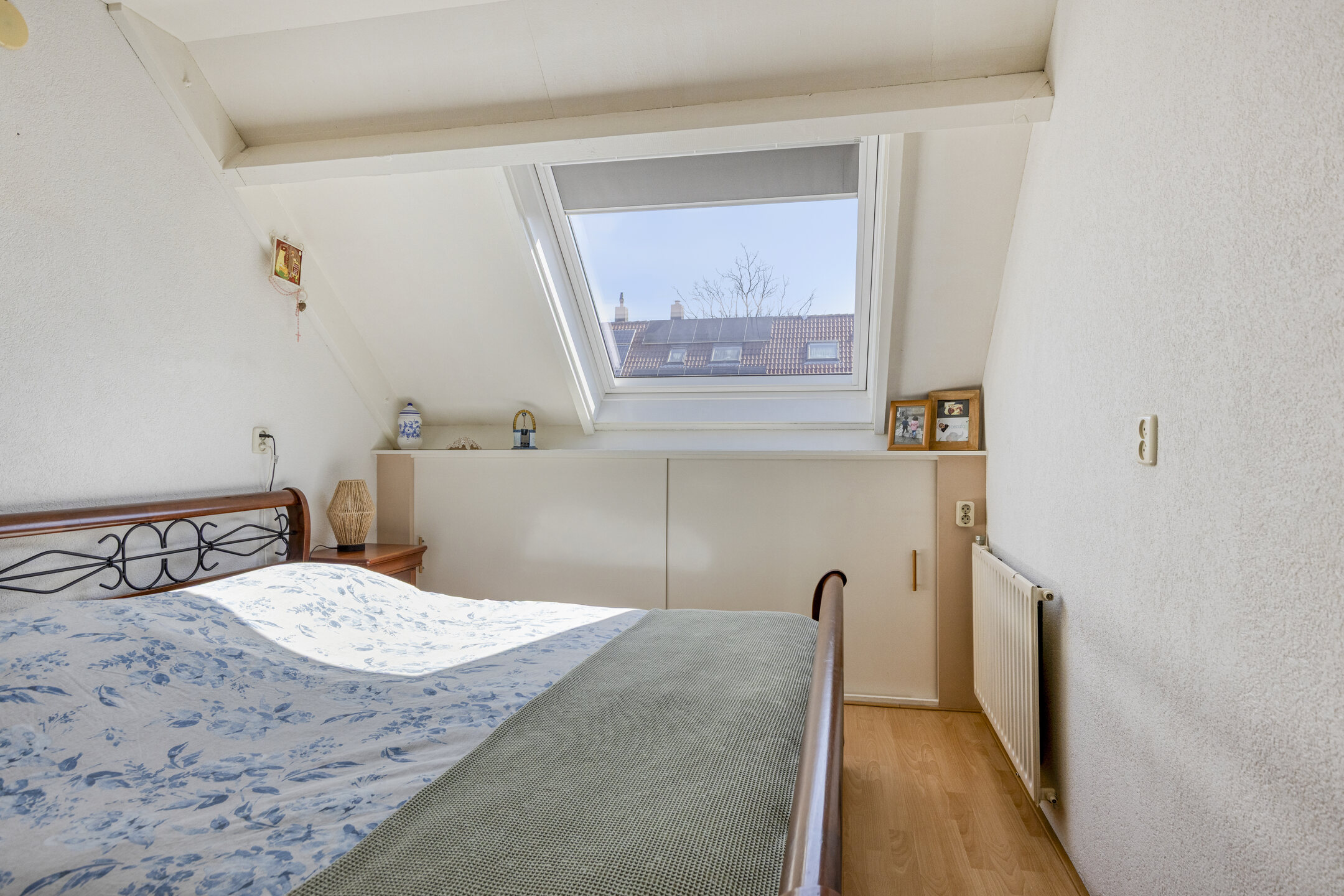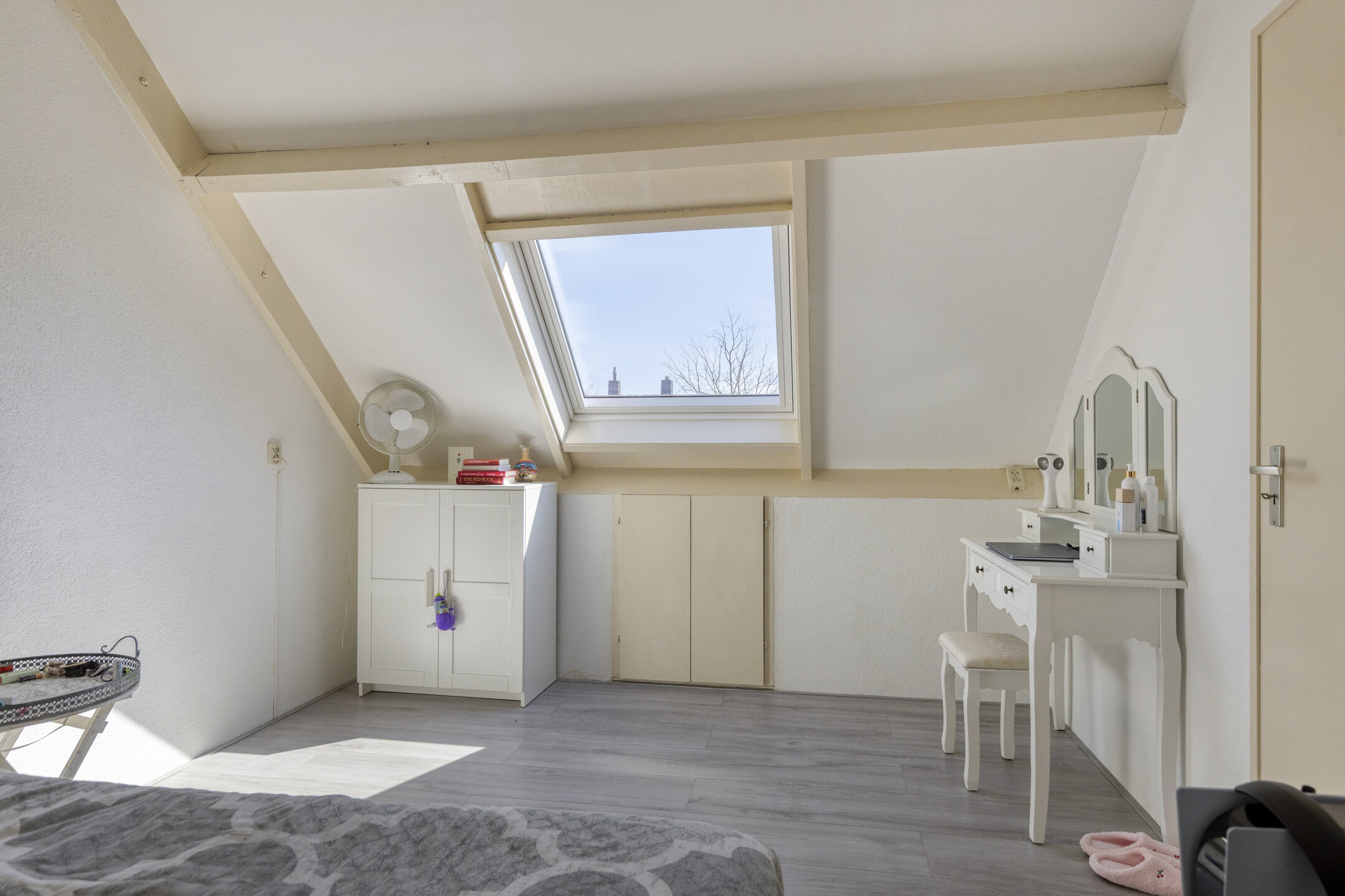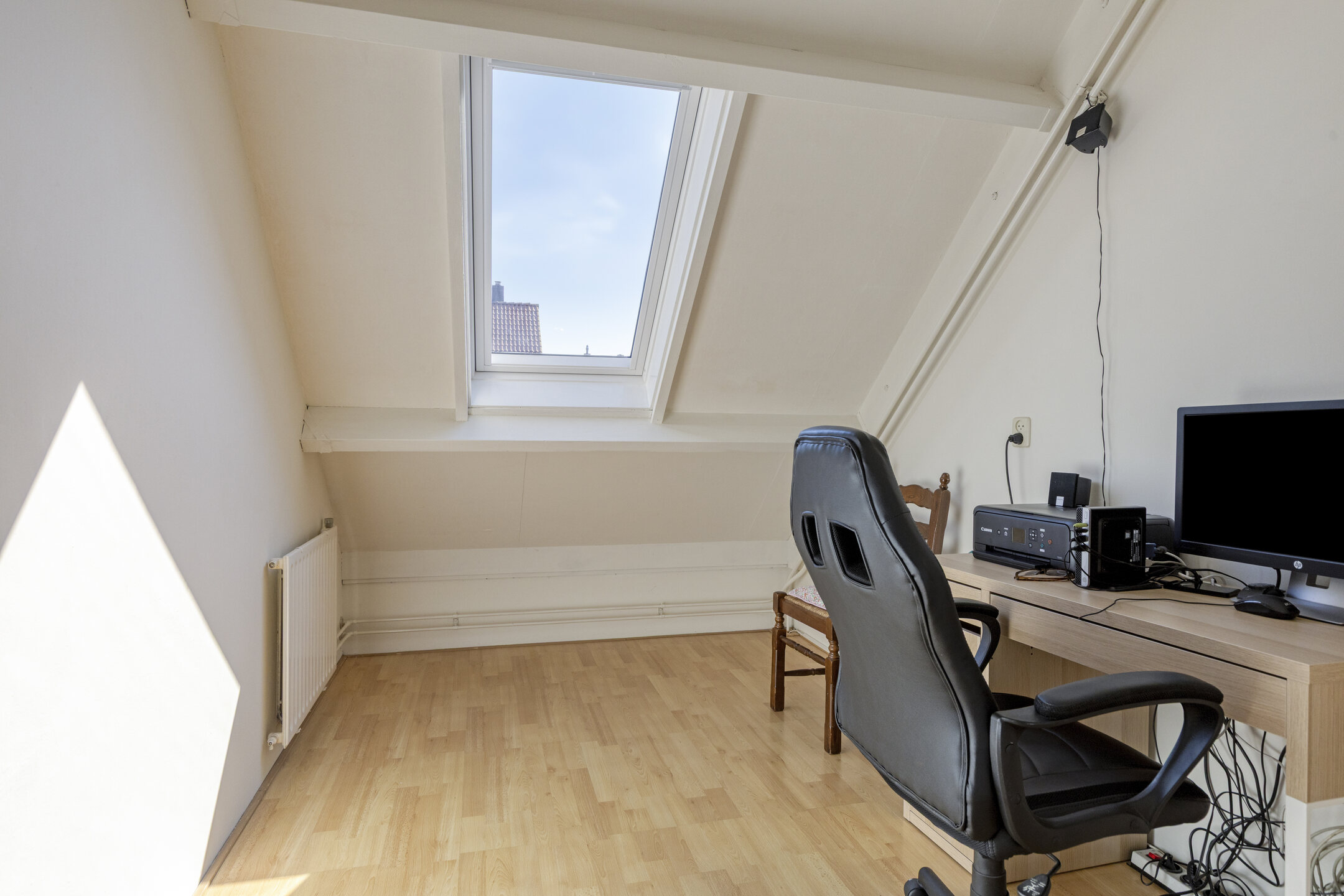 Via een vaste trap bereik je de zolderverdieping. Hier is een vierde kamer gerealiseerd, voorzien van een dakraam en praktische bergruimte onder de schuine kap. Deze ruimte is uitstekend te gebruiken als extra slaapkamer, werkkamer of hobbyruimte.