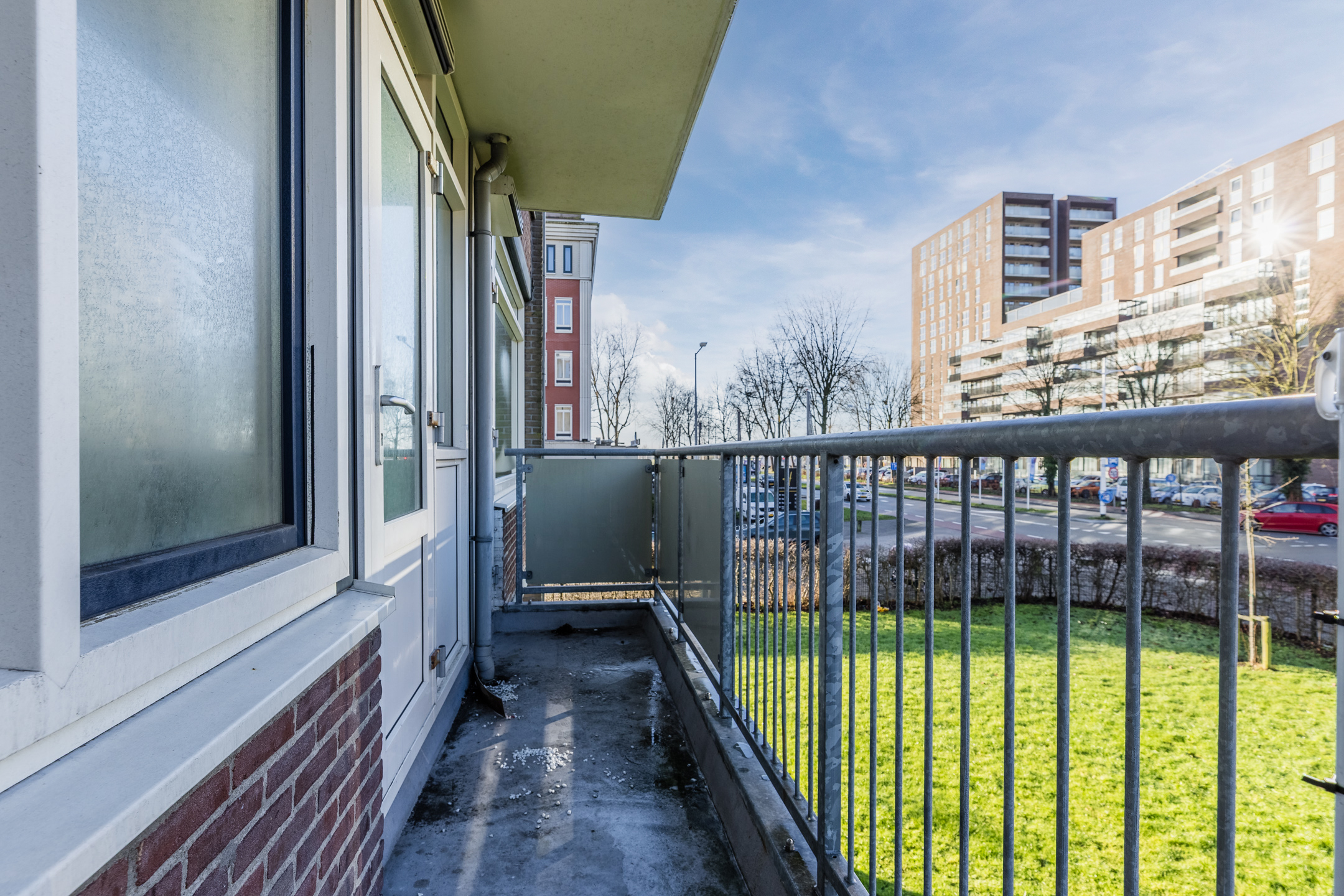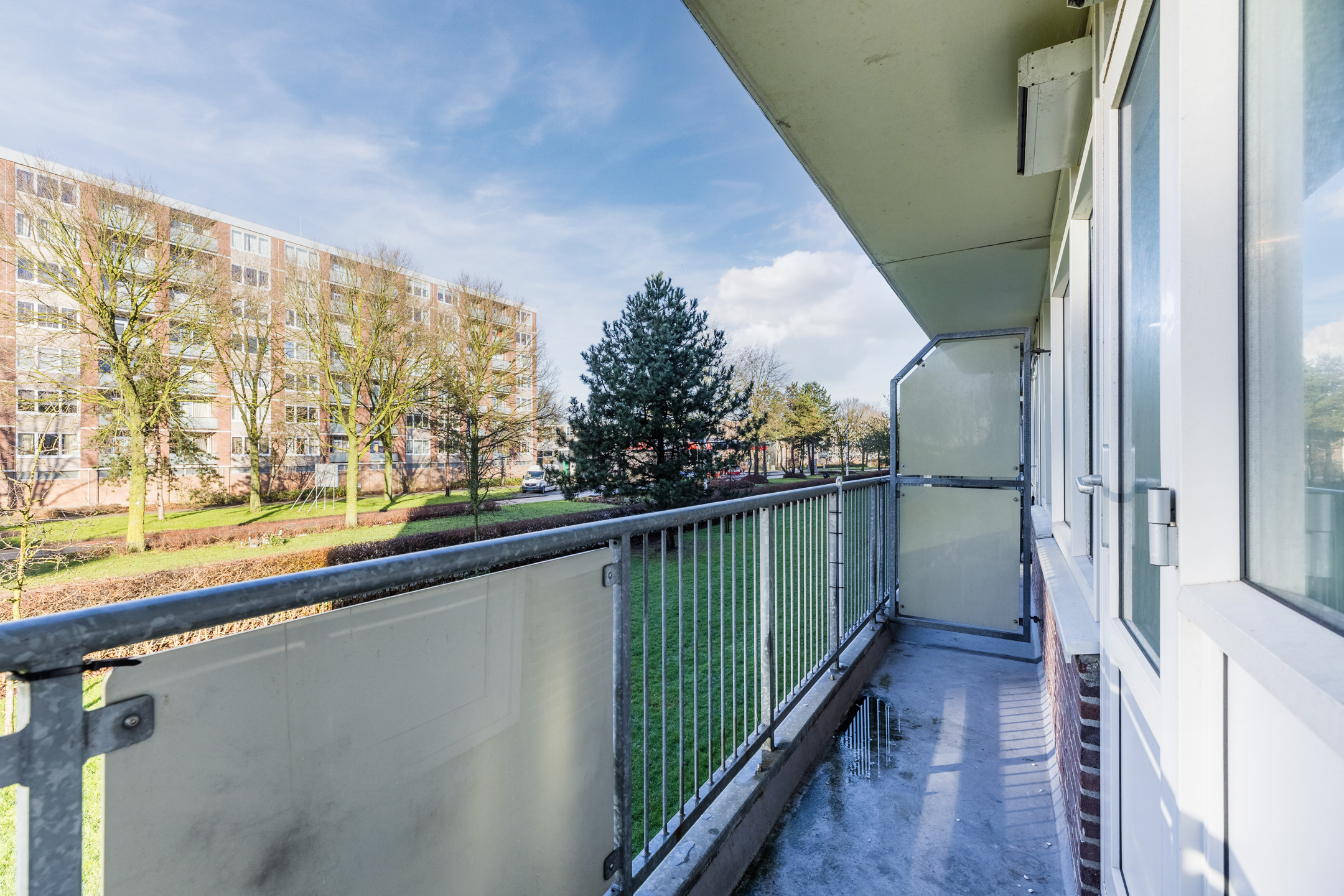 Zowel de woonkamer als de keuken bieden toegang tot het ruime balkon op het westen dat uitkijkt over een groenstrook.