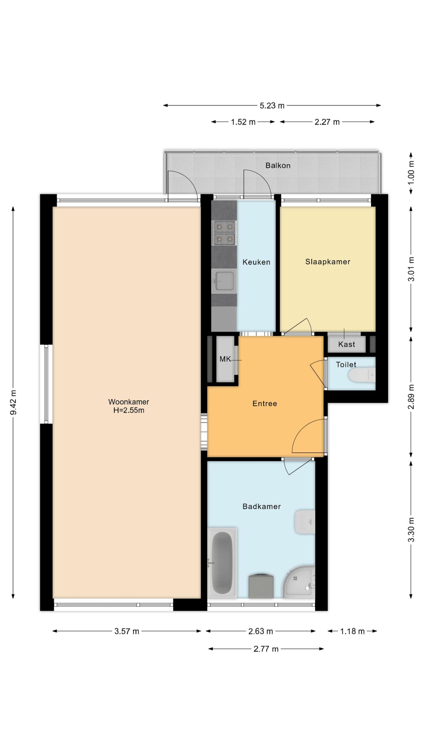 • 1 slaapkamer, extra slaapkamer is gemakkelijk te realiseren