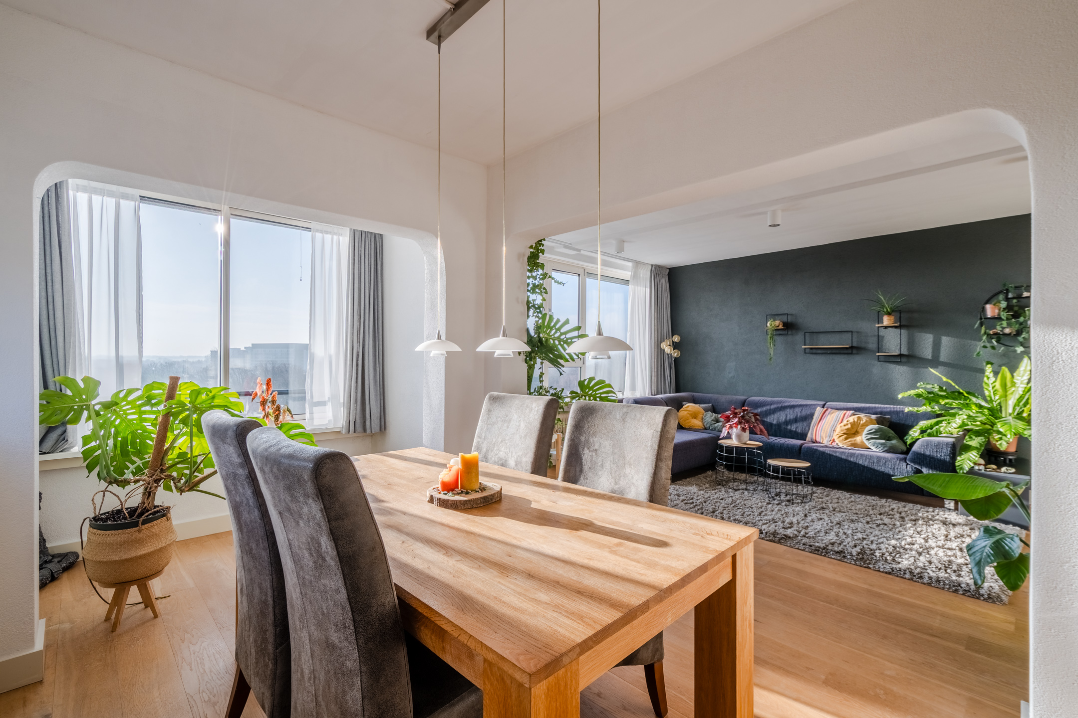 This spacious three-room apartment is located on the eighth floor of the well-maintained apartment complex āDe Reijgershornā in the pleasant residential area of De Hoef. With two (potentially three!) bedrooms, you will not easily run out of space here, making it ideal for a home office, nursery, hobby room, or similar. Thanks to its corner position, the living room and dining area benefit from extra natural light, enhanced by the additional side window in this corner apartment.