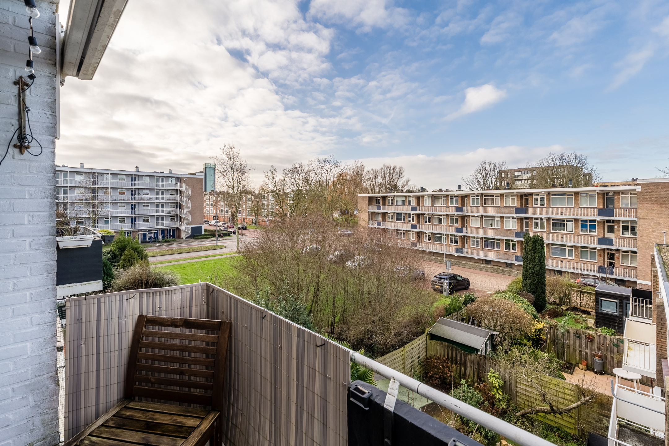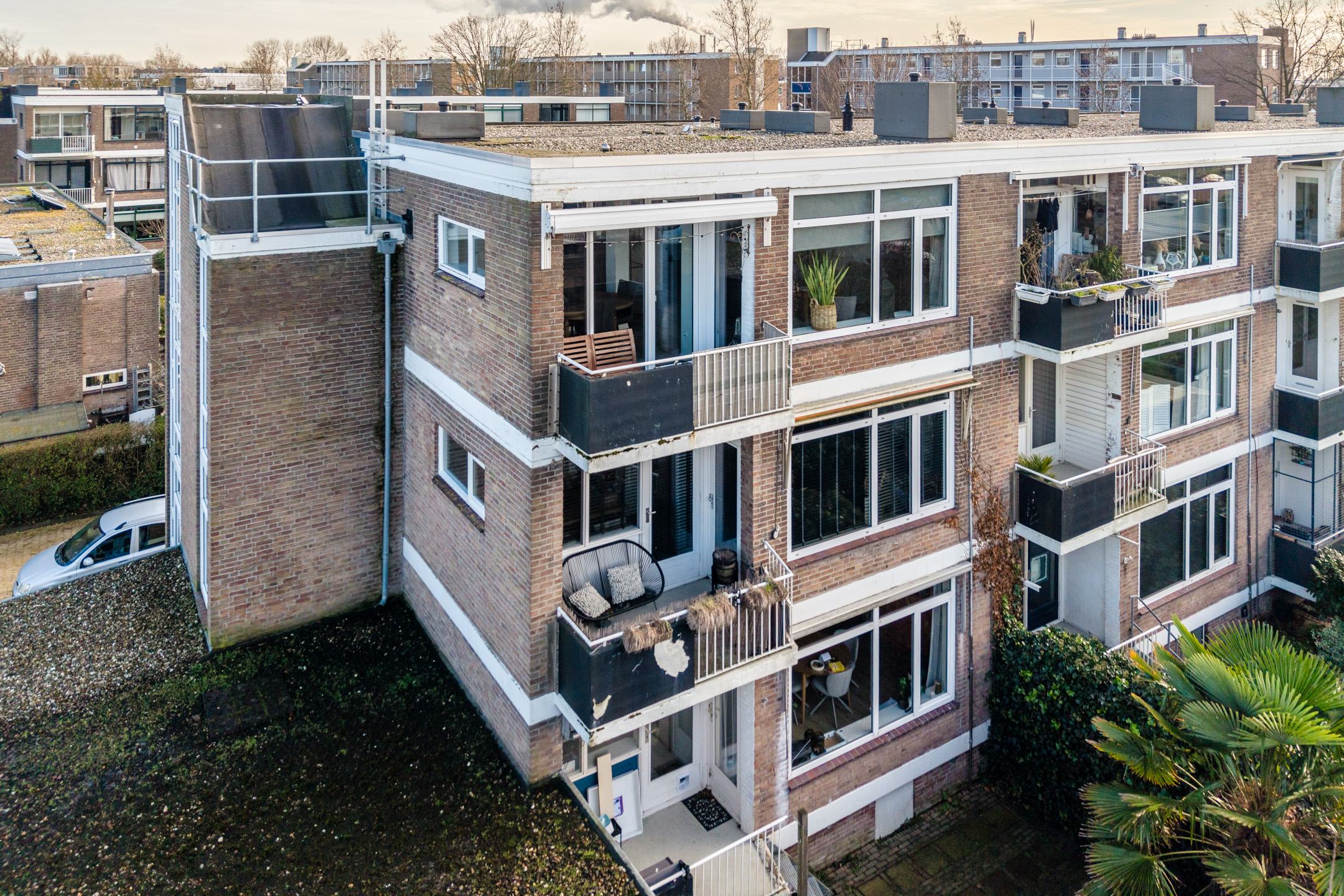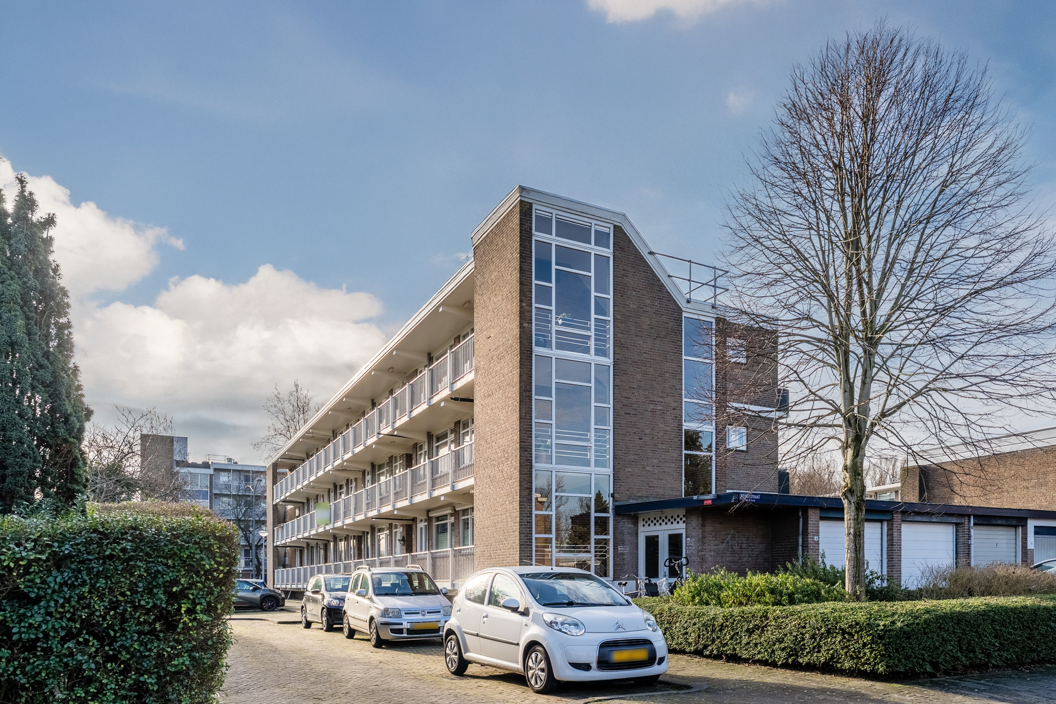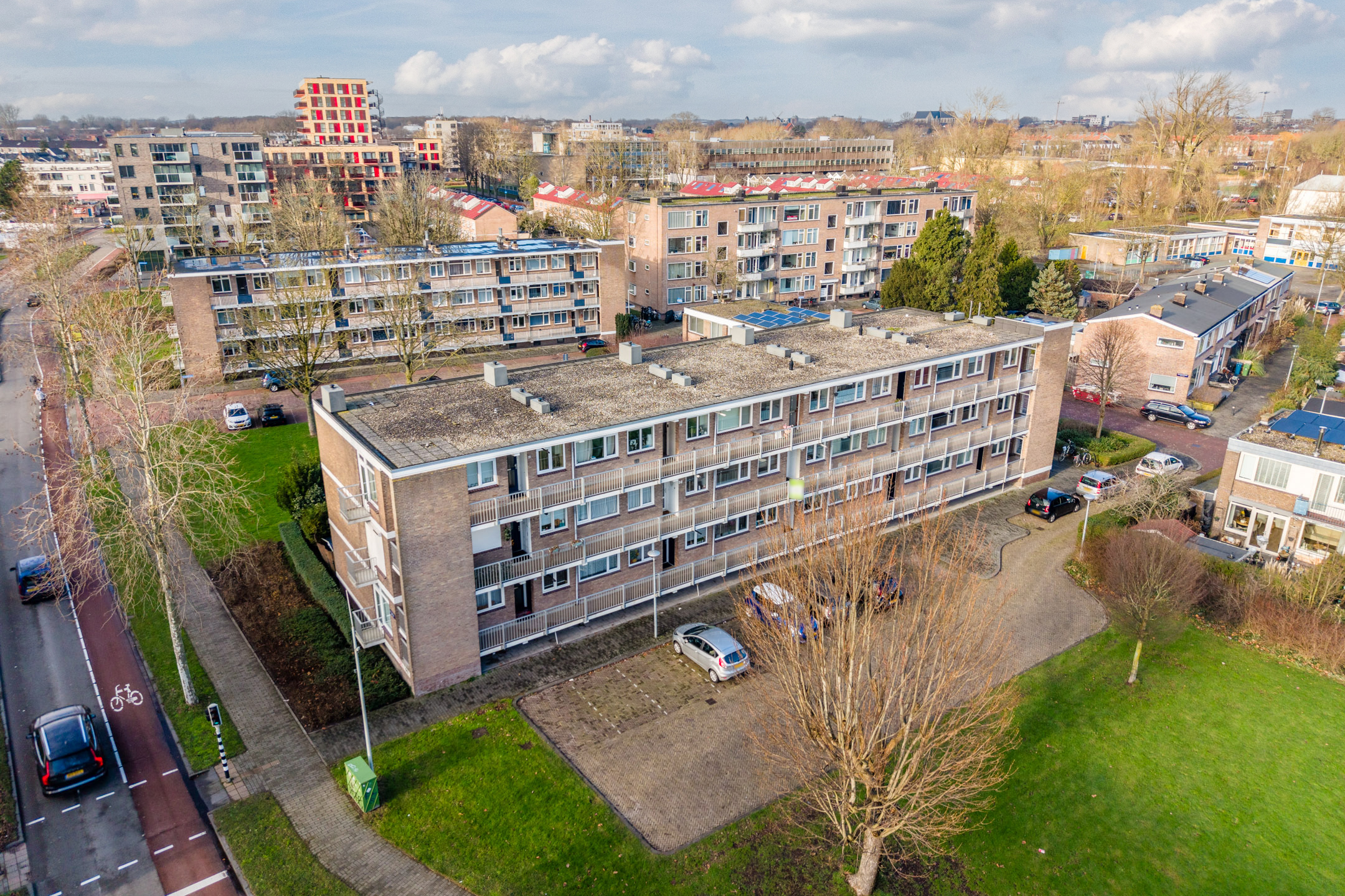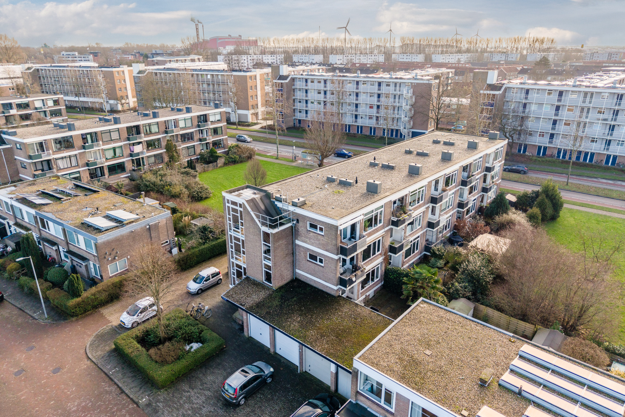 Er is parkeergelegenheid rondom de flat en je beschikt over een eigen (fietsen)berging in de onderbouw van het complex.
