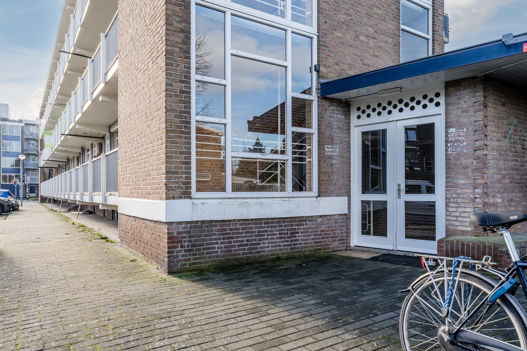 Centrale gesloten entree met brievenbussen, intercom en toegang tot de eigen (fietsen)berging in de onderbouw van het complex.