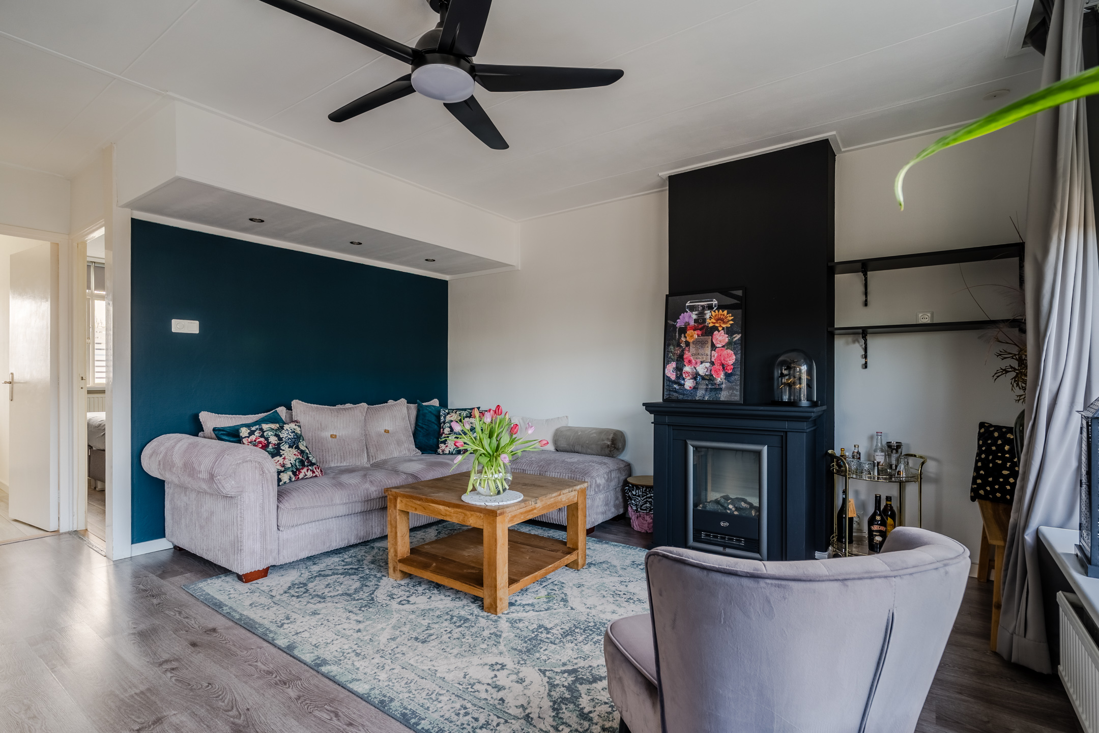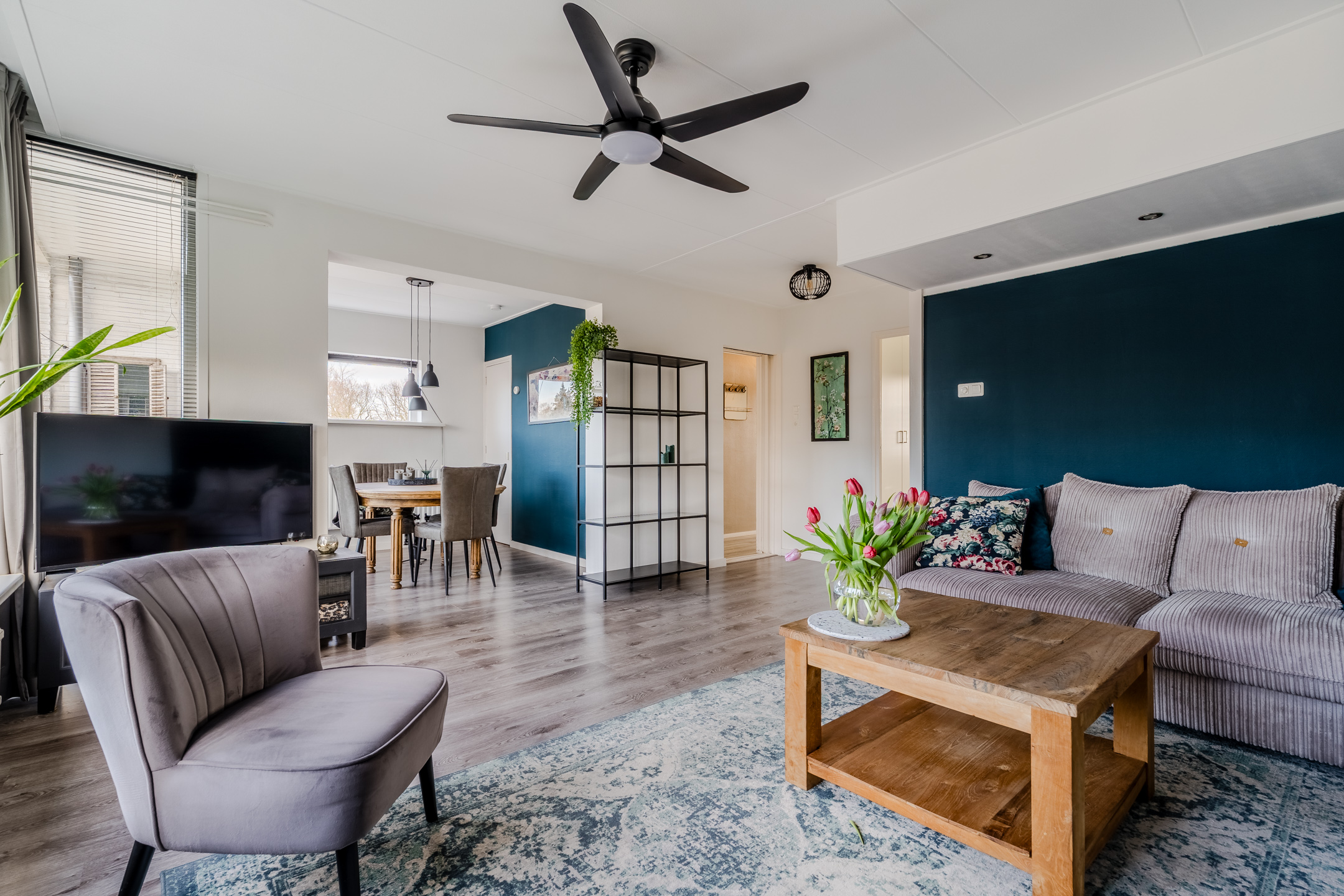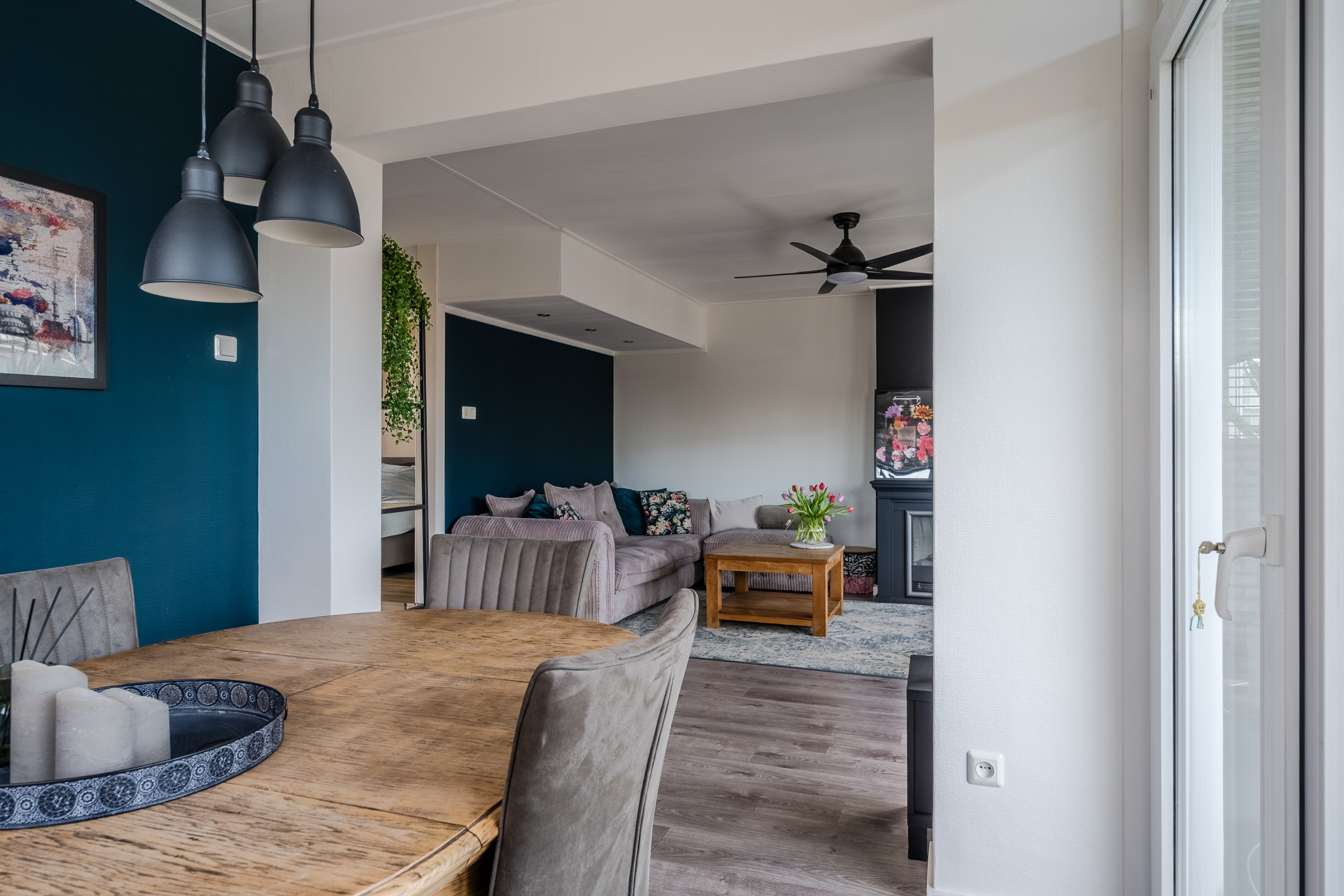 ⢠Lichte en sfeervolle woonkamer