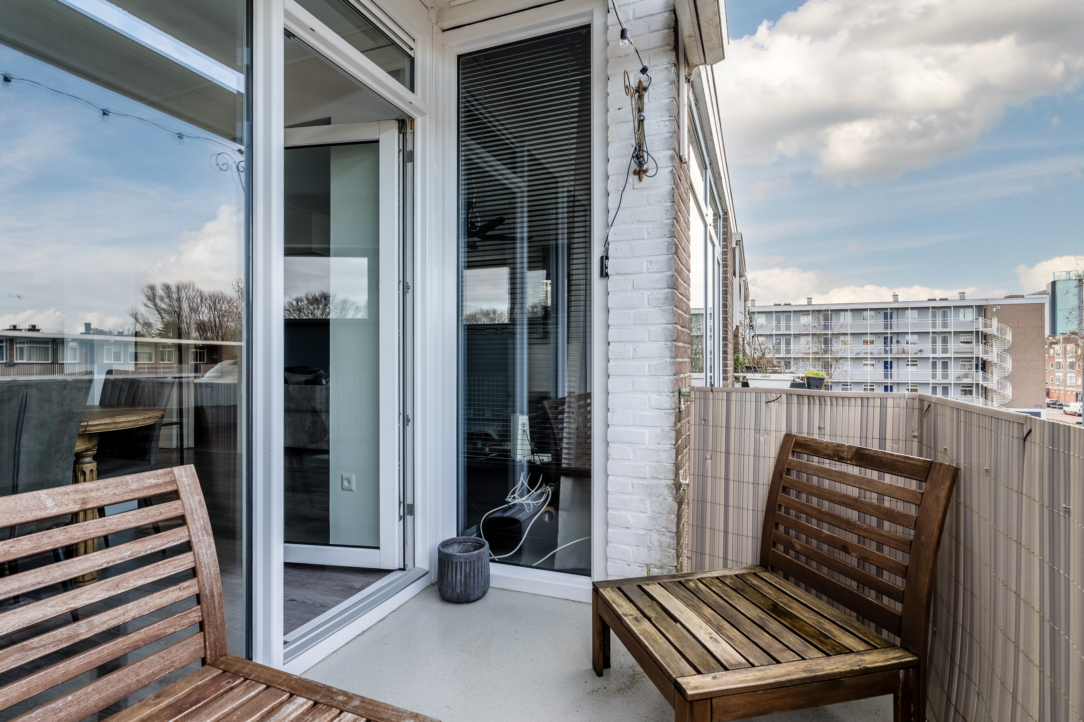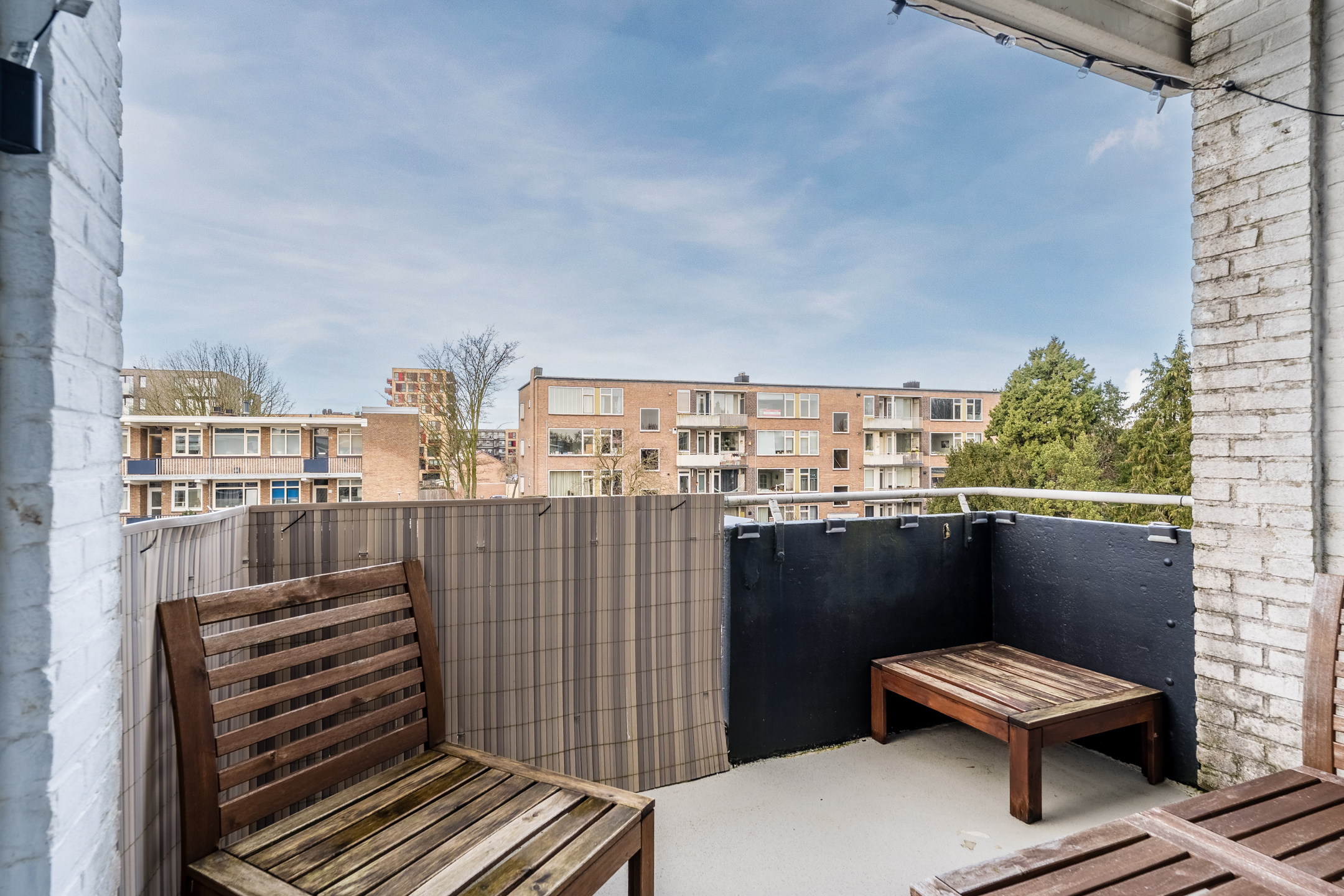 ⢠Sunny balcony with views of greenery