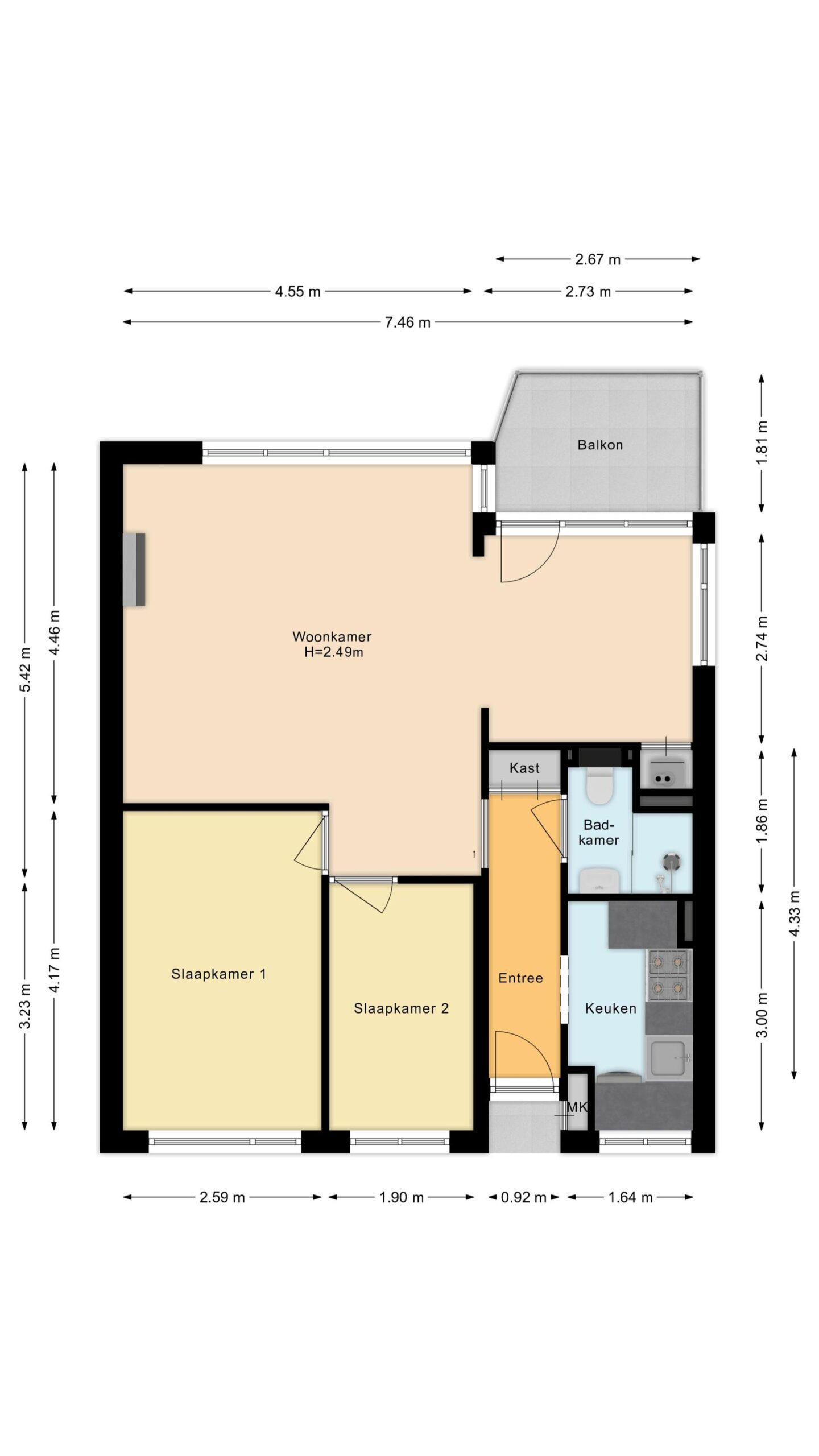 - Woonoppervlakte61 m2