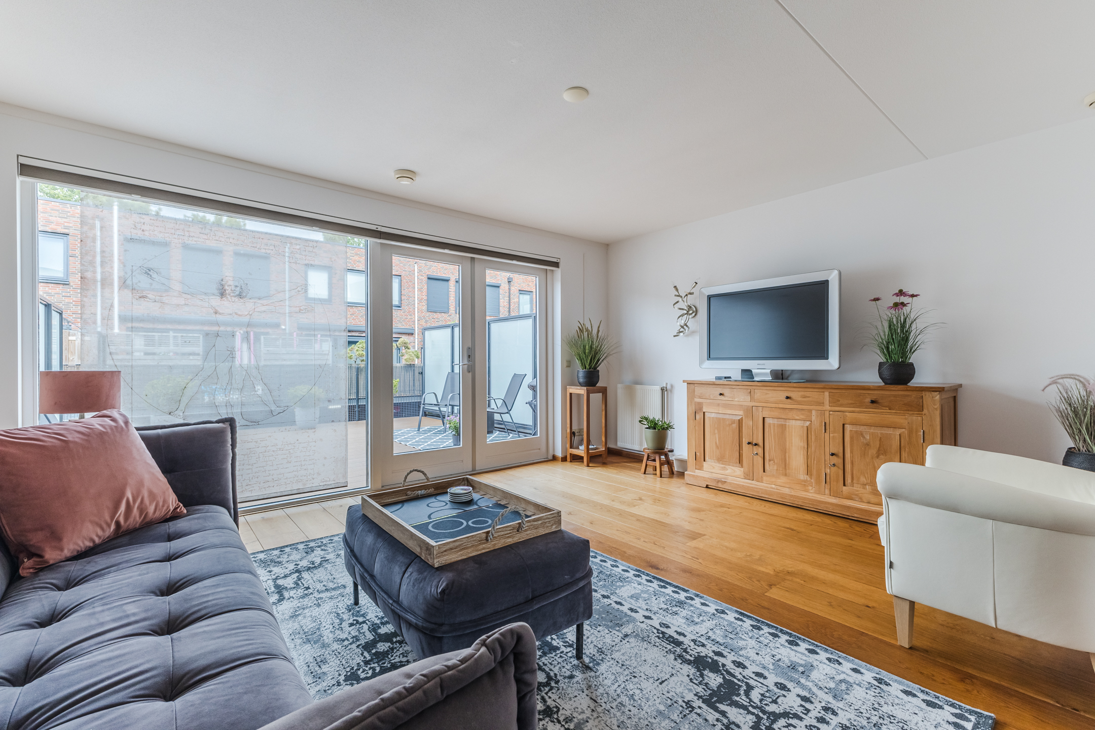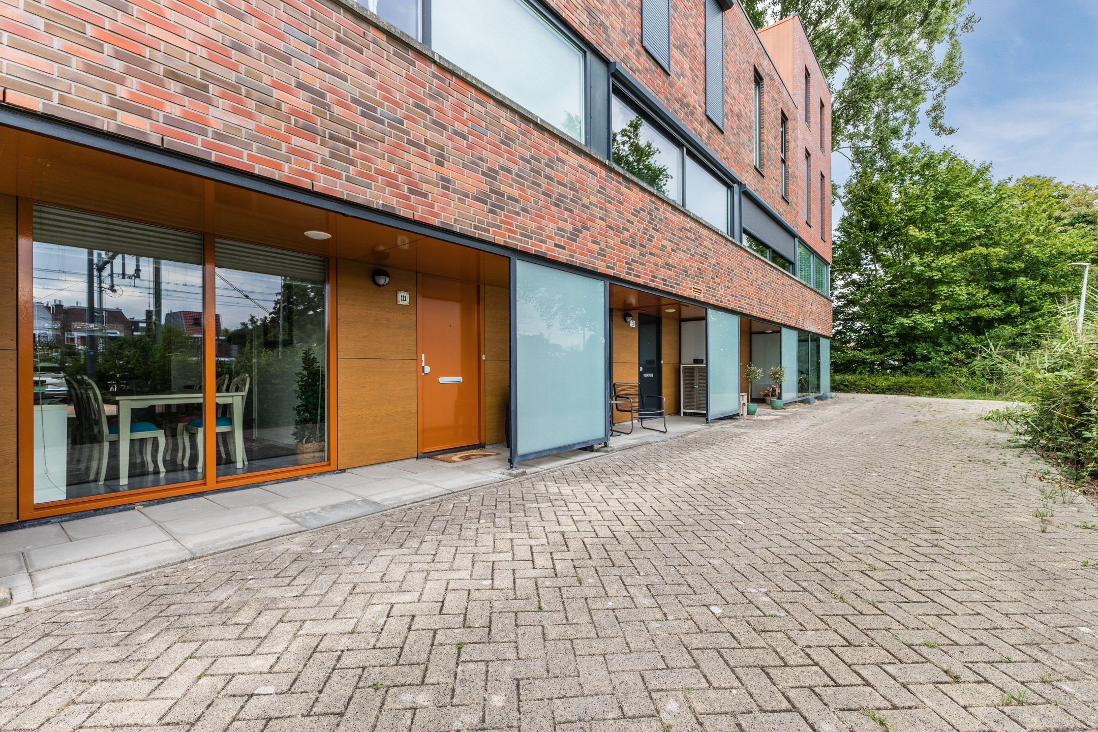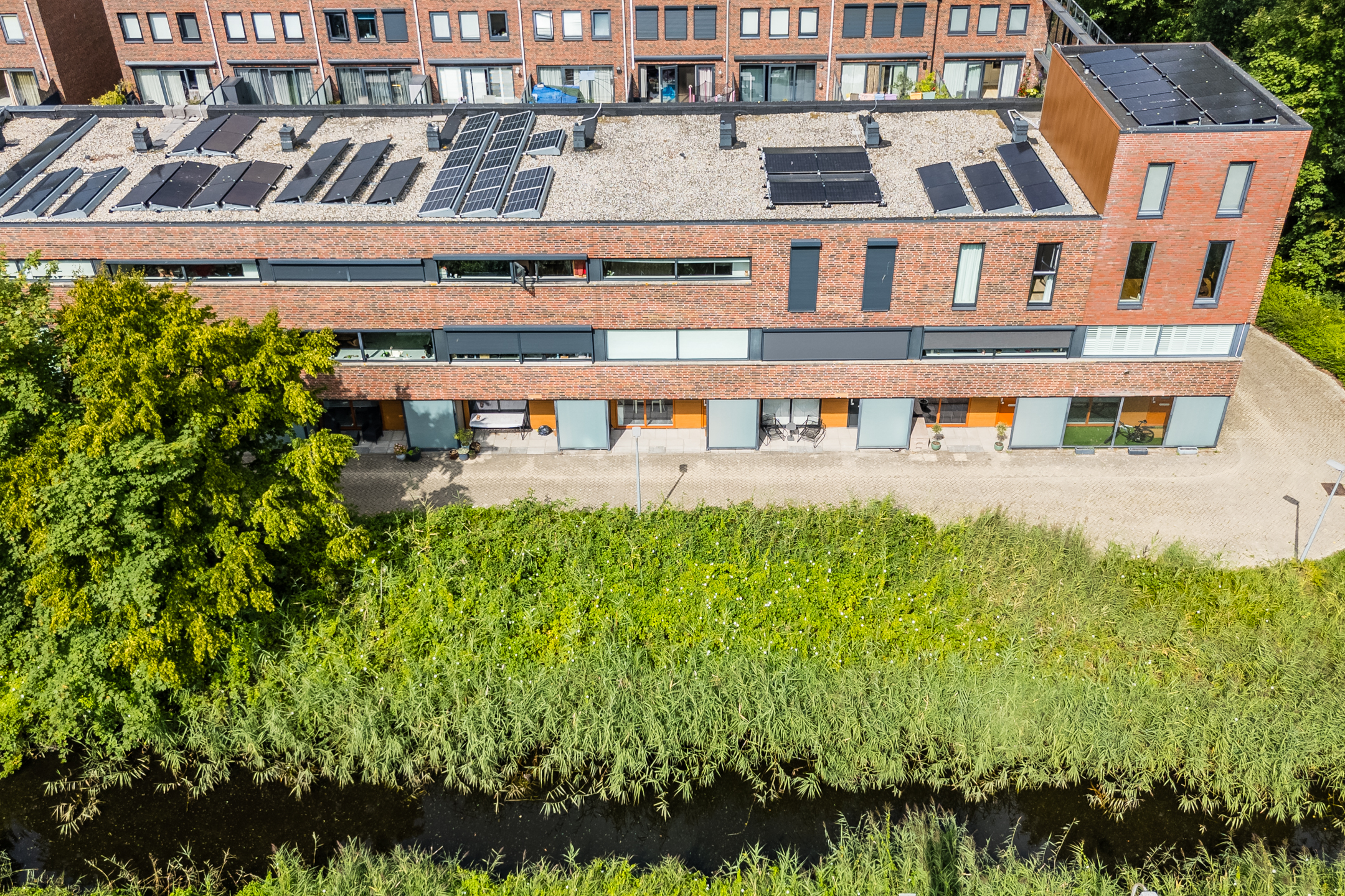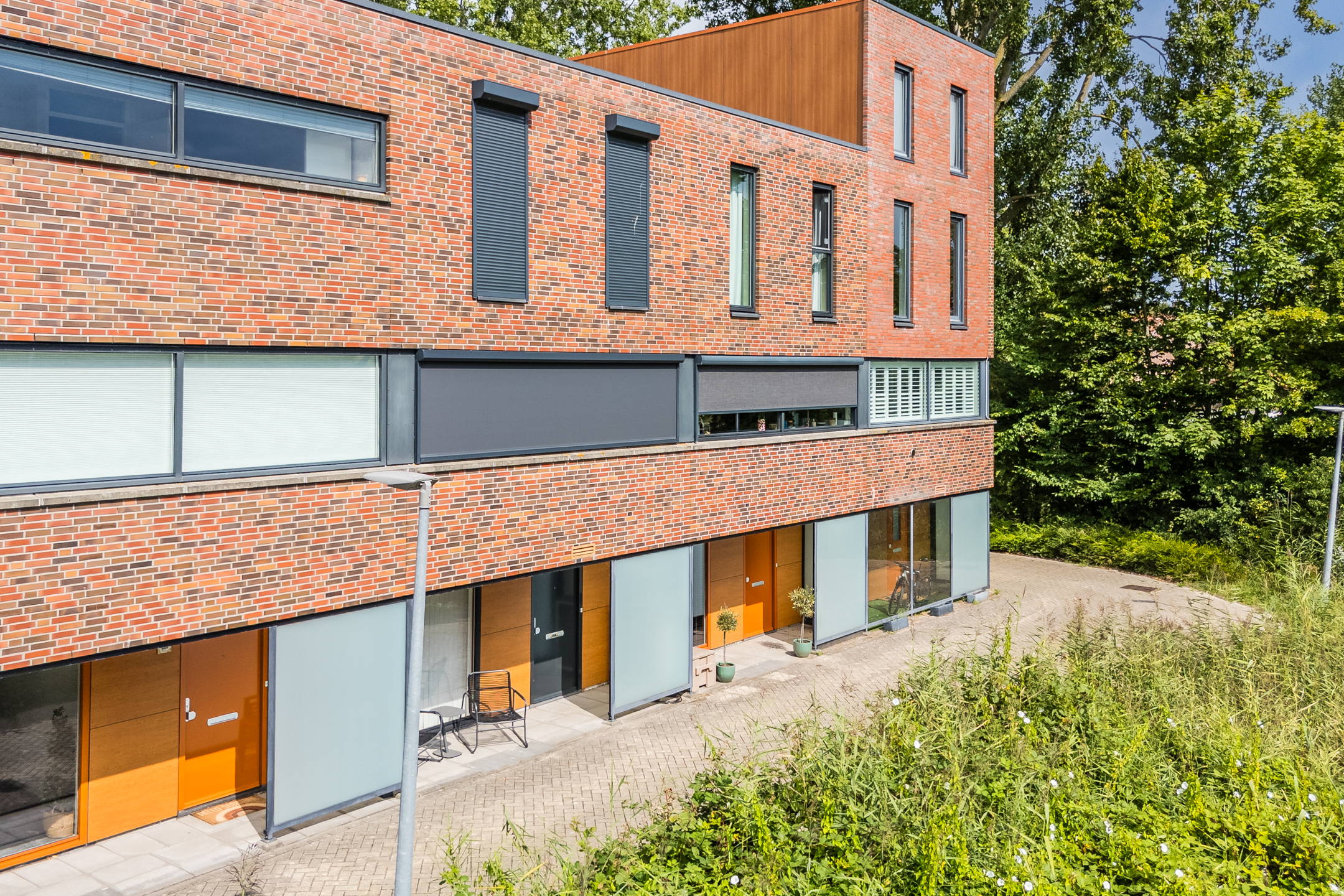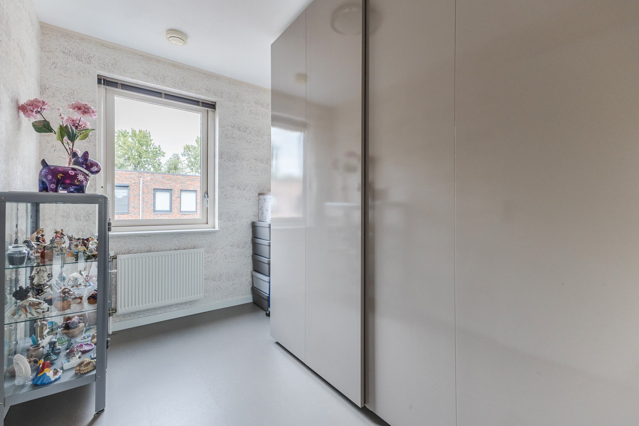 This energie efficient property has a special layout with the living room on the first floor and a ground floor that offers many possibilities for use. In the current layout, you will find here a large living kitchen/dining room with a very spacious utility room, but the realisation of an office/practice space is also very well possible. On the second floor of this large house, you will find the 3 bedrooms and the bathroom.As there are no sloping walls in the house, there is zero loss of space and all floors are of an equal size. From the living room, there is access to a spacious roof terrace of over 25,7 m2 facing the west and therefore enjoys plenty of afternoon and evening sun. Two cars can be parked easily and safely on private property.