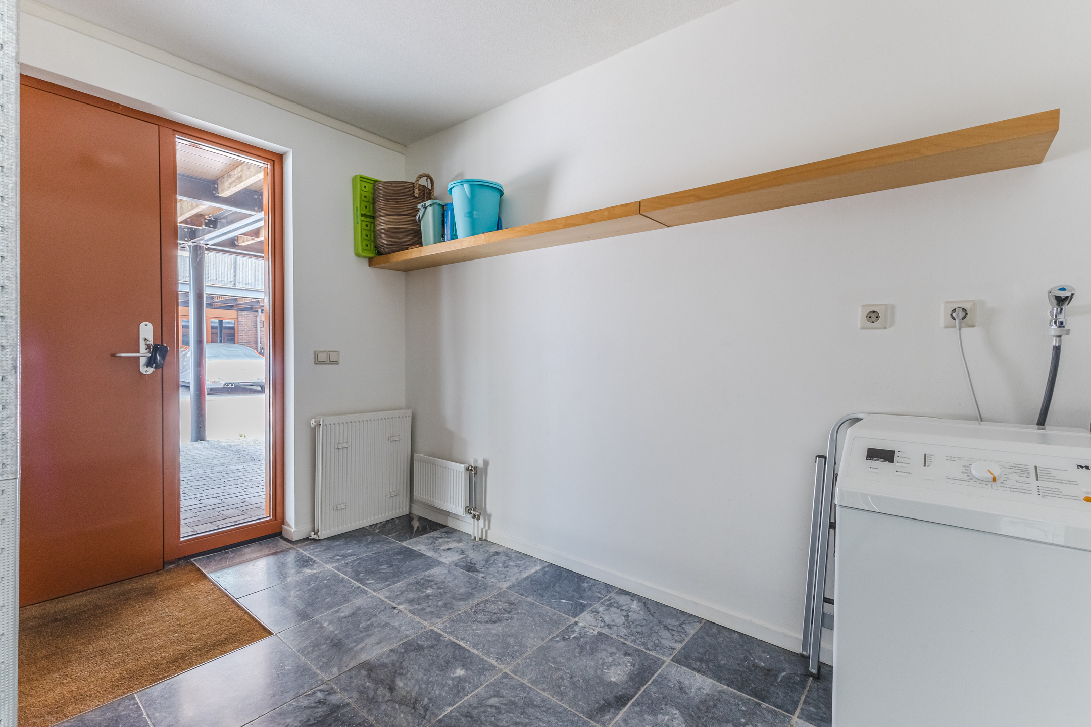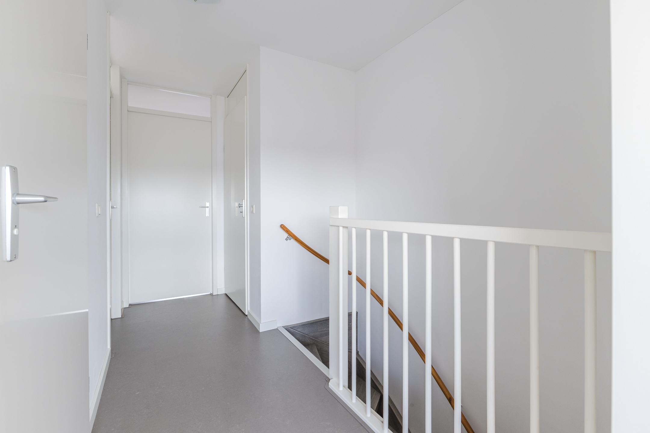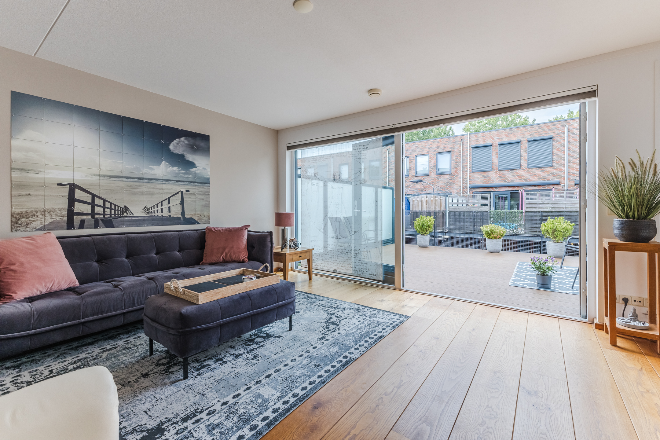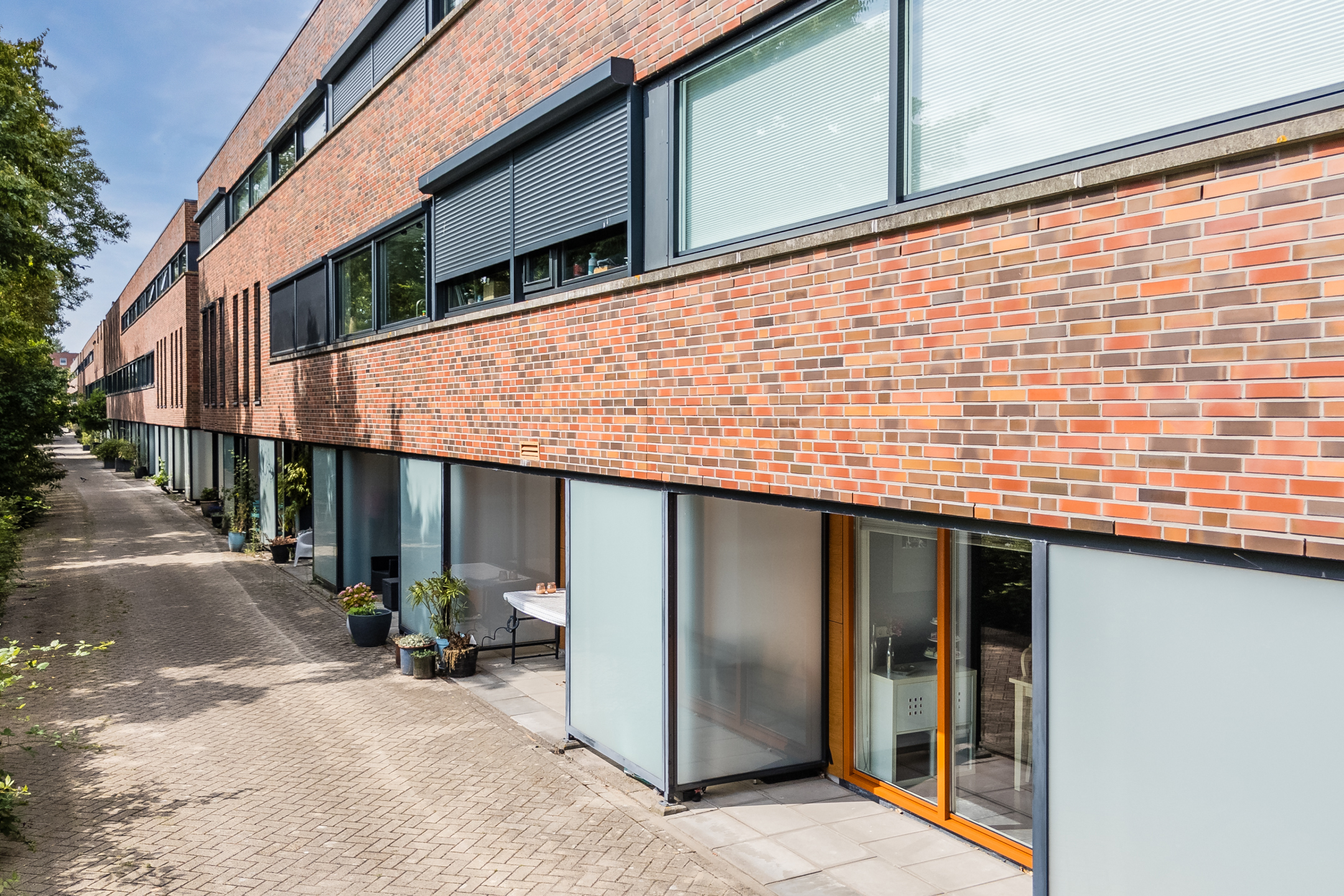 This energie efficient property has a special layout with the living room on the first floor and a ground floor that offers many possibilities for use. In the current layout, you will find here a large living kitchen/dining room with a very spacious utility room, but the realisation of an office/practice space is also very well possible. On the second floor of this large house, you will find the 3 bedrooms and the bathroom.As there are no sloping walls in the house, there is zero loss of space and all floors are of an equal size. From the living room, there is access to a spacious roof terrace of over 25,7 m2 facing the west and therefore enjoys plenty of afternoon and evening sun. Two cars can be parked easily and safely on private property.