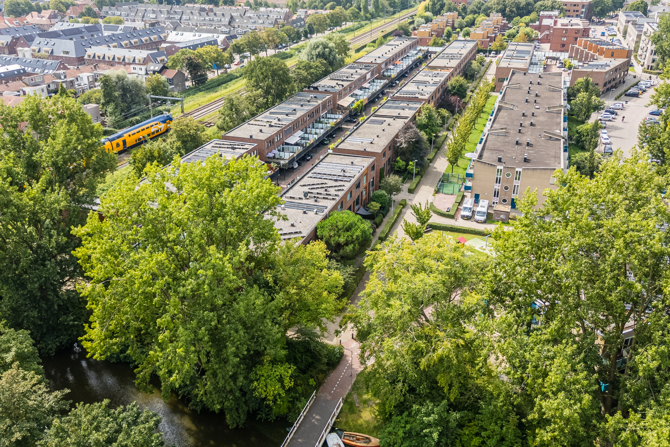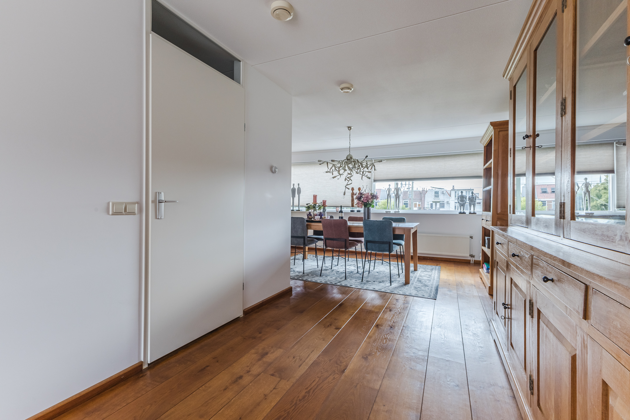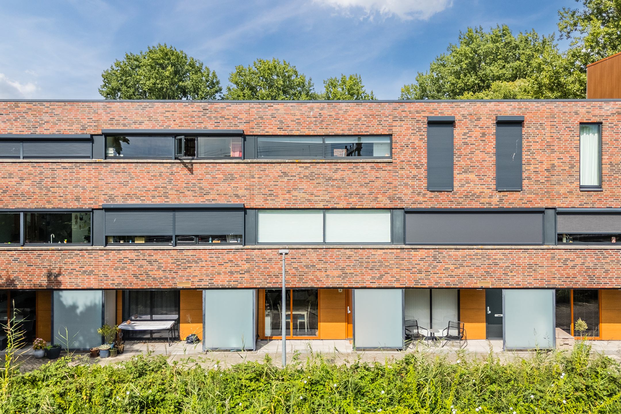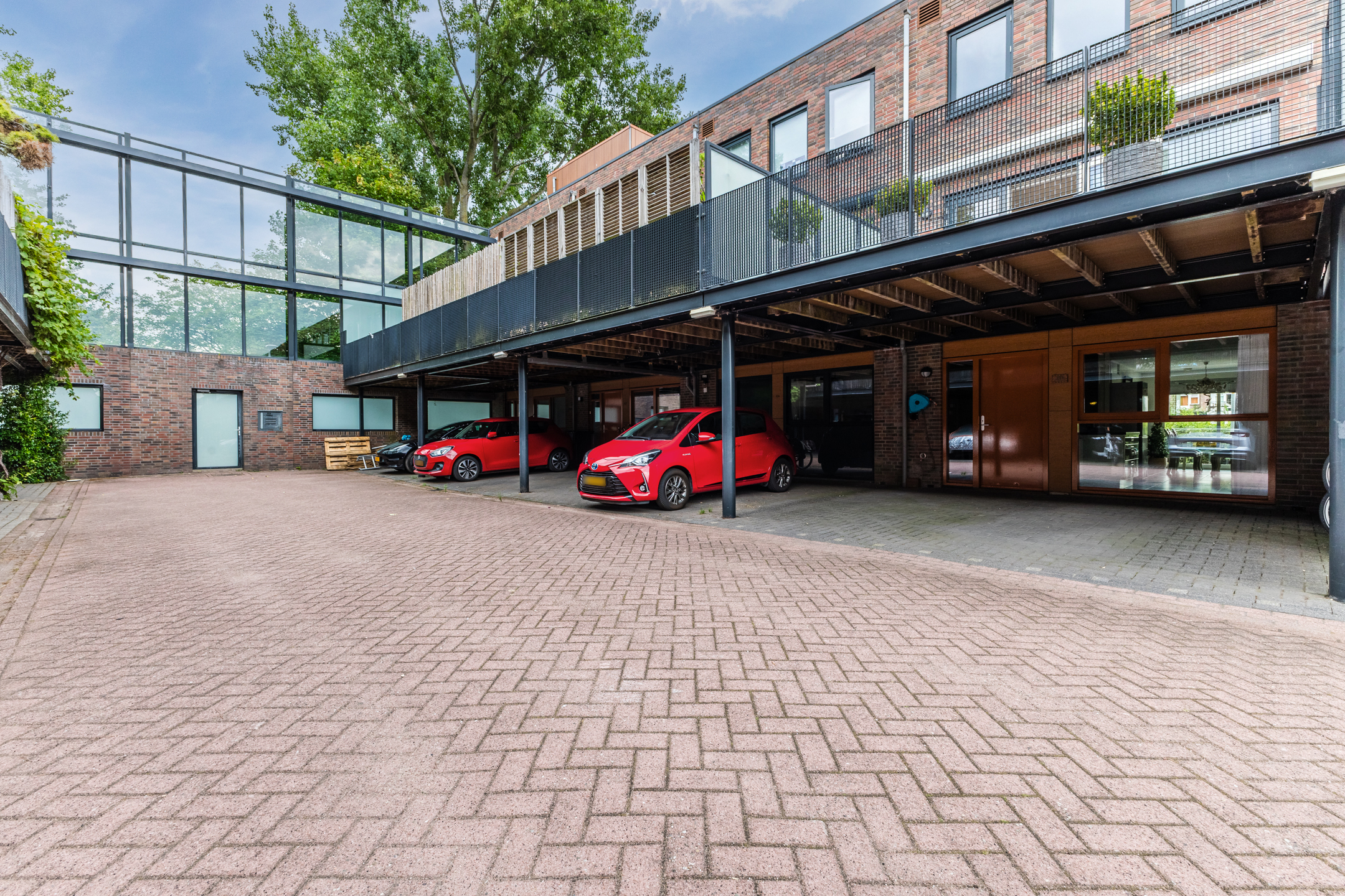 This energie efficient property has a special layout with the living room on the first floor and a ground floor that offers many possibilities for use. In the current layout, you will find here a large living kitchen/dining room with a very spacious utility room, but the realisation of an office/practice space is also very well possible. On the second floor of this large house, you will find the 3 bedrooms and the bathroom.As there are no sloping walls in the house, there is zero loss of space and all floors are of an equal size. From the living room, there is access to a spacious roof terrace of over 25,7 m2 facing the west and therefore enjoys plenty of afternoon and evening sun. Two cars can be parked easily and safely on private property.