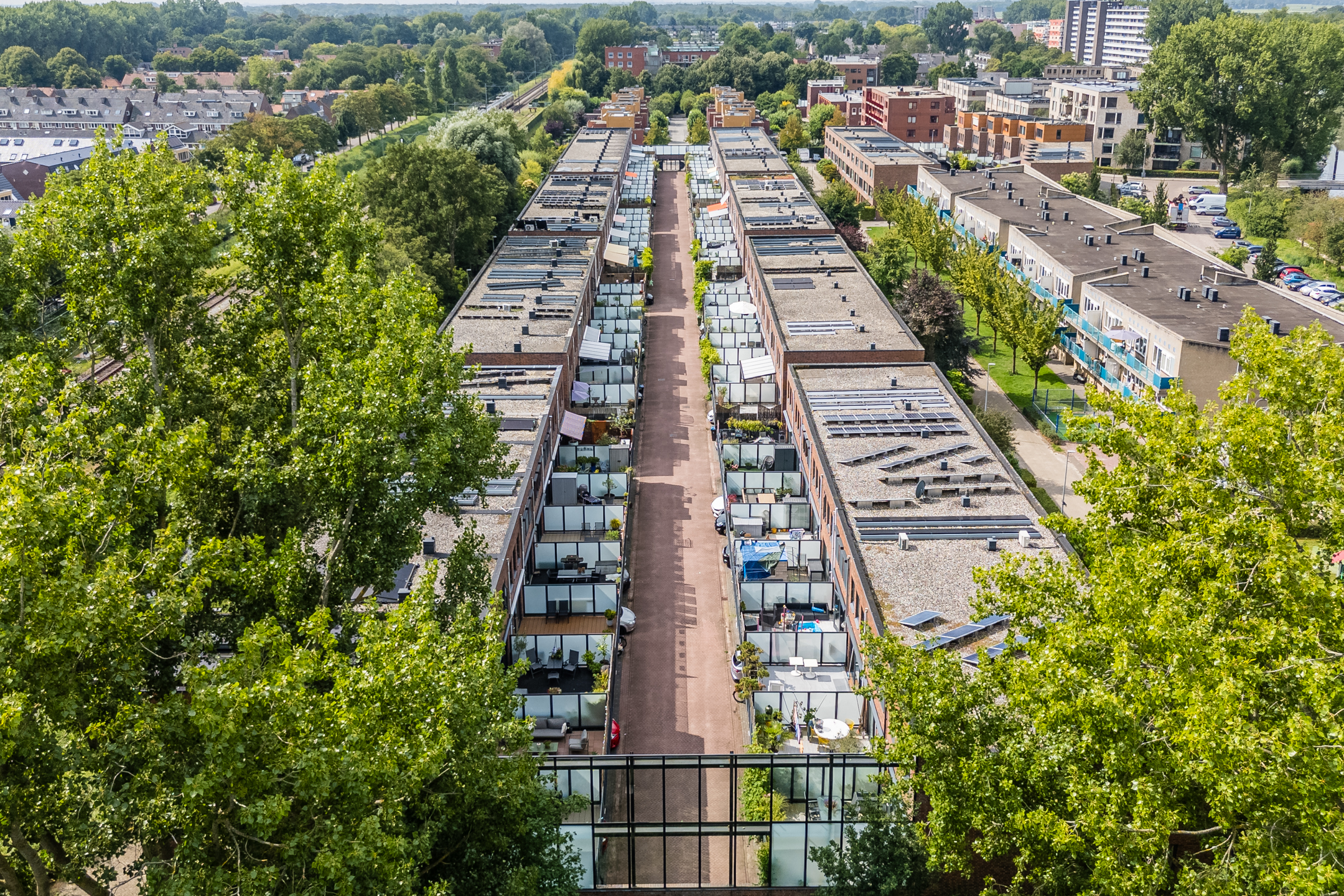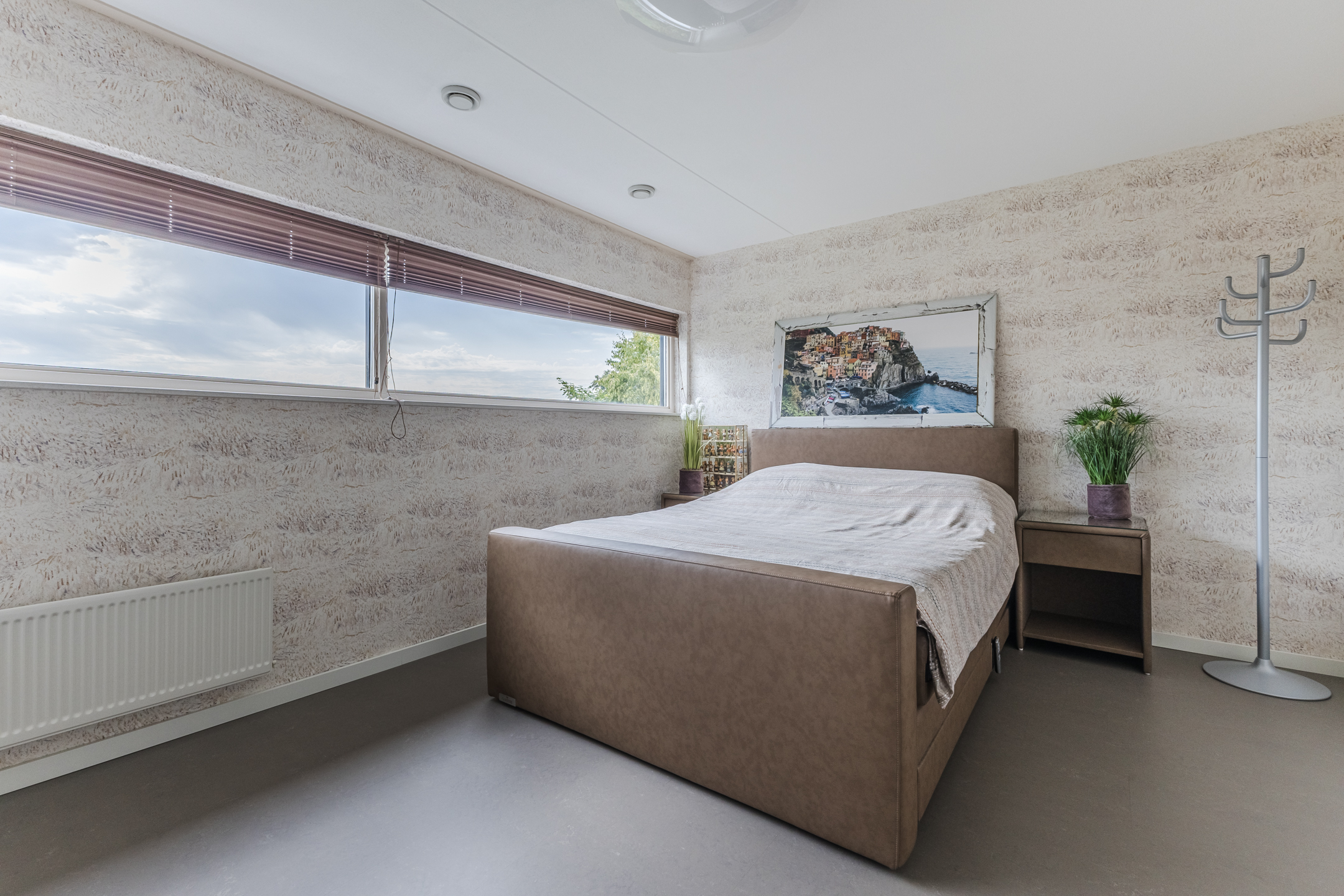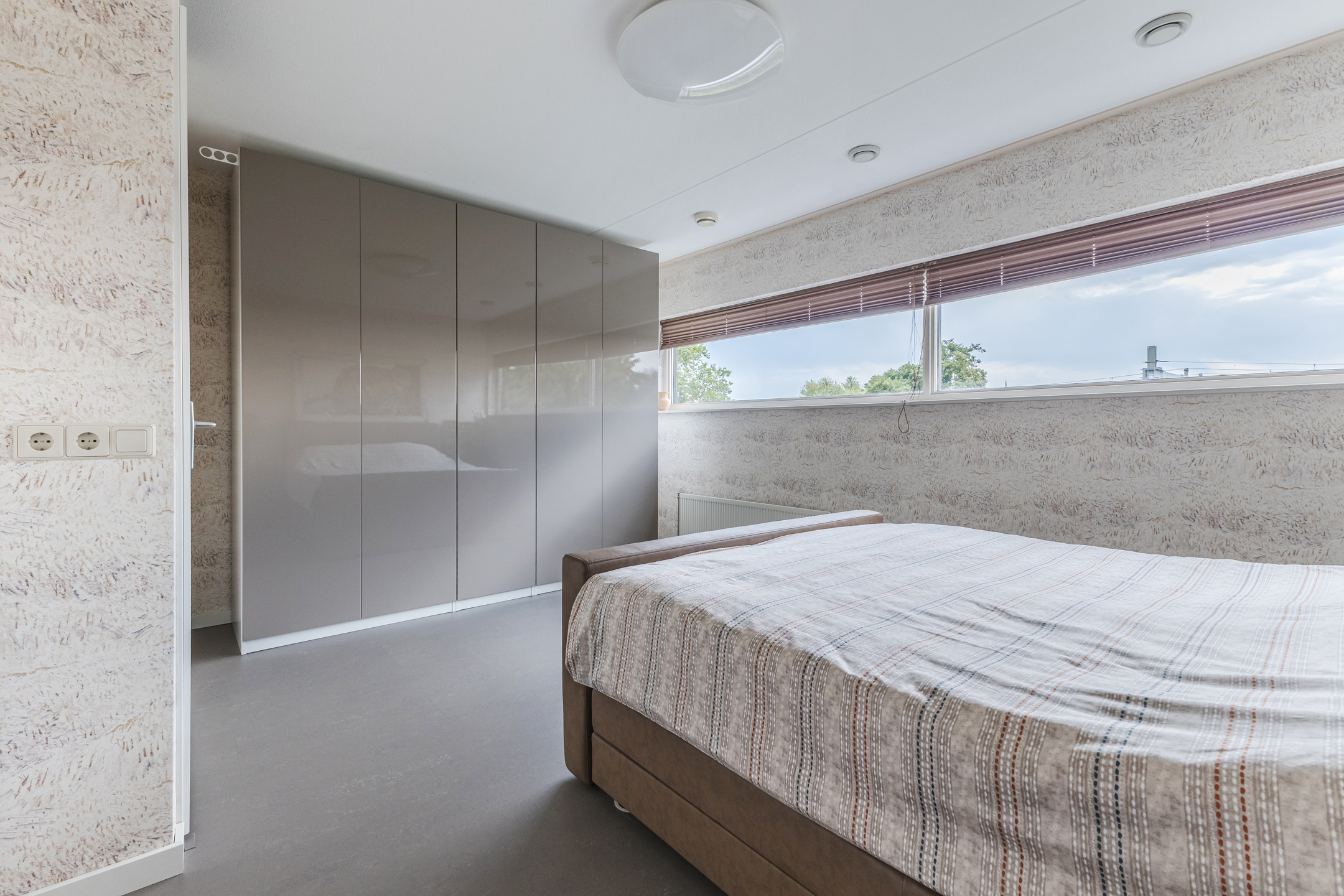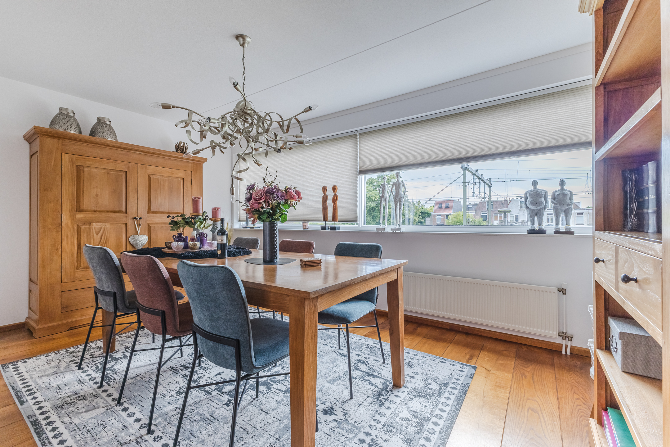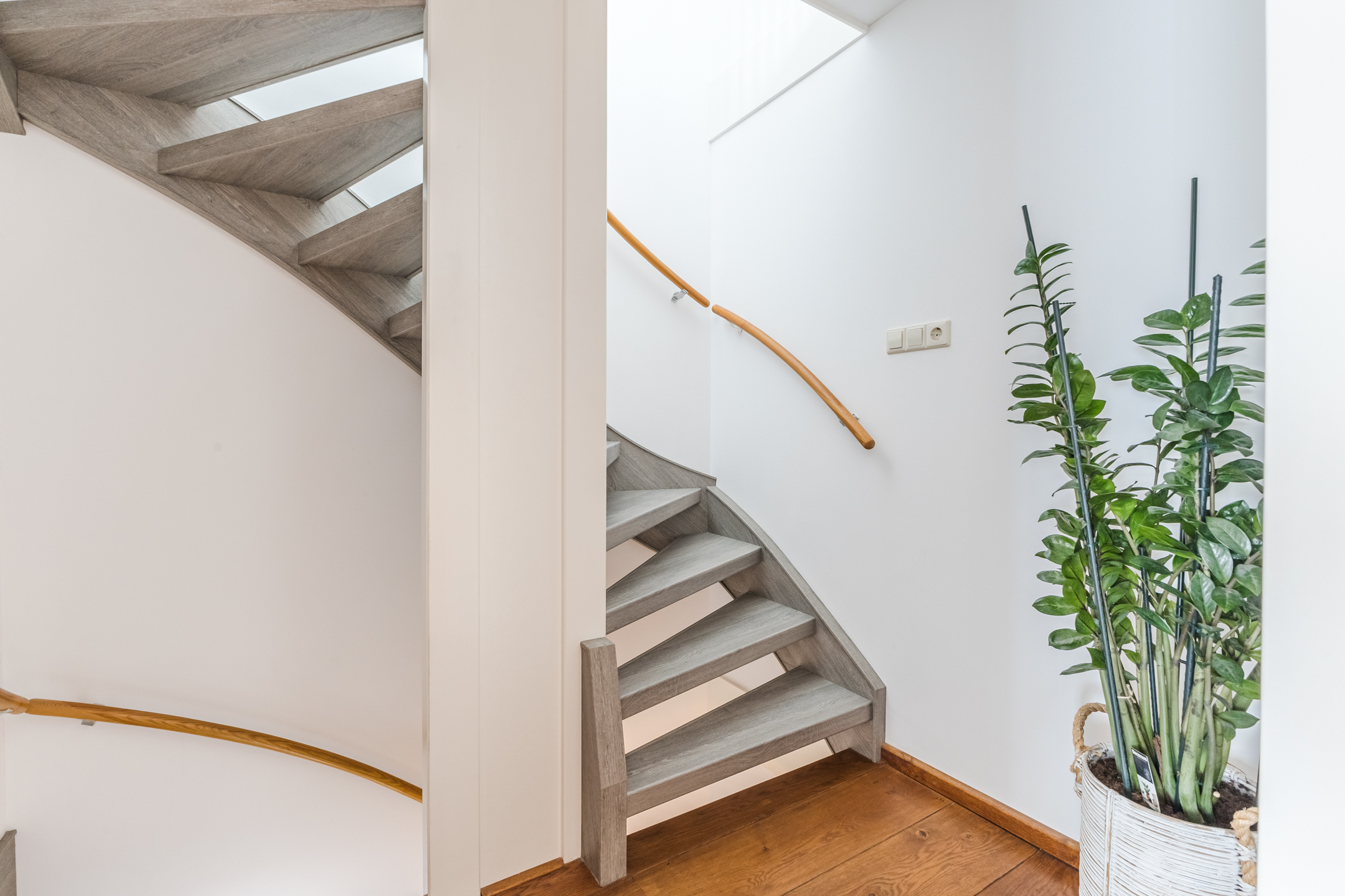 This energie efficient property has a special layout with the living room on the first floor and a ground floor that offers many possibilities for use. In the current layout, you will find here a large living kitchen/dining room with a very spacious utility room, but the realisation of an office/practice space is also very well possible. On the second floor of this large house, you will find the 3 bedrooms and the bathroom.As there are no sloping walls in the house, there is zero loss of space and all floors are of an equal size. From the living room, there is access to a spacious roof terrace of over 25,7 m2 facing the west and therefore enjoys plenty of afternoon and evening sun. Two cars can be parked easily and safely on private property.