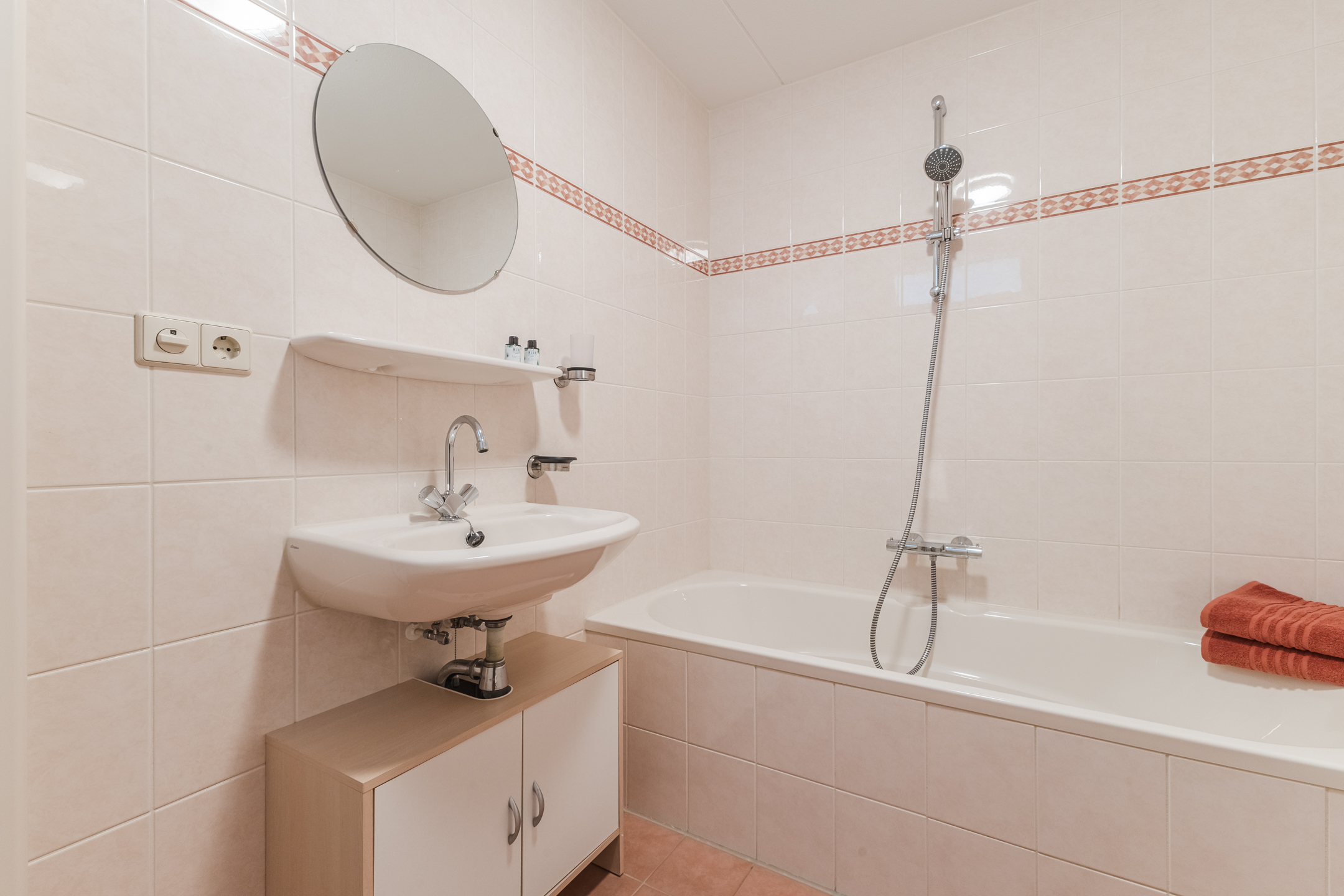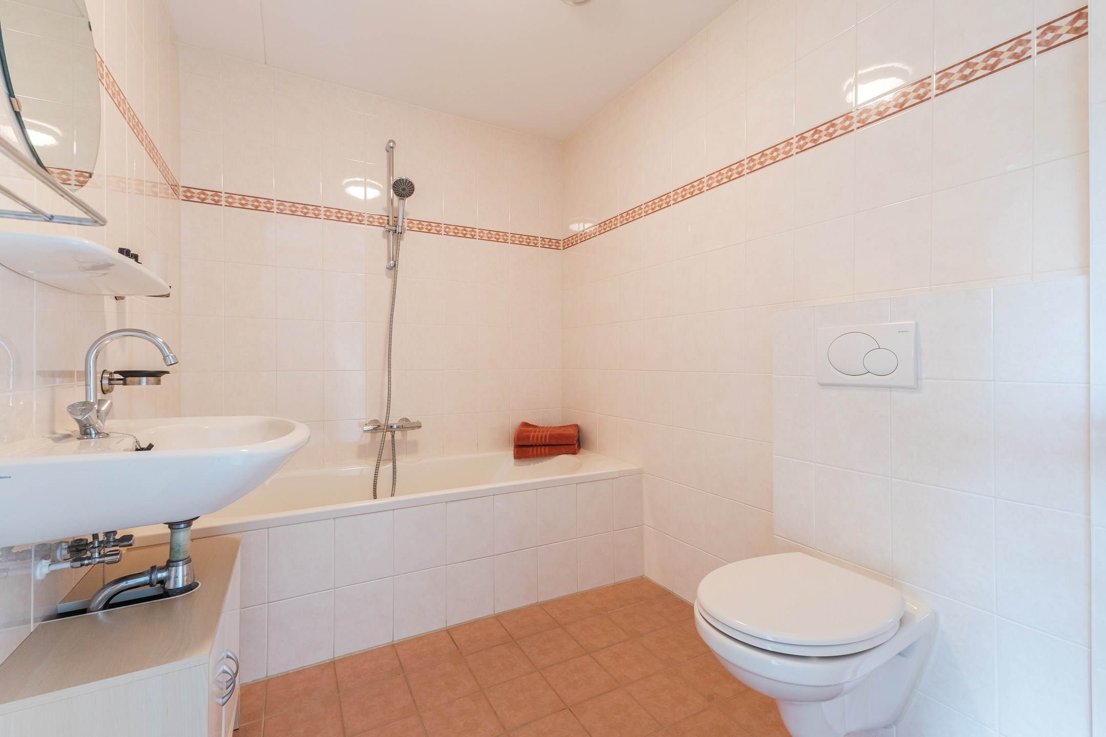 All bedrooms are finished with a Forbo marmoleum floor and the spacious bathroom features a second toilet, washbasin and a bathtub with shower.