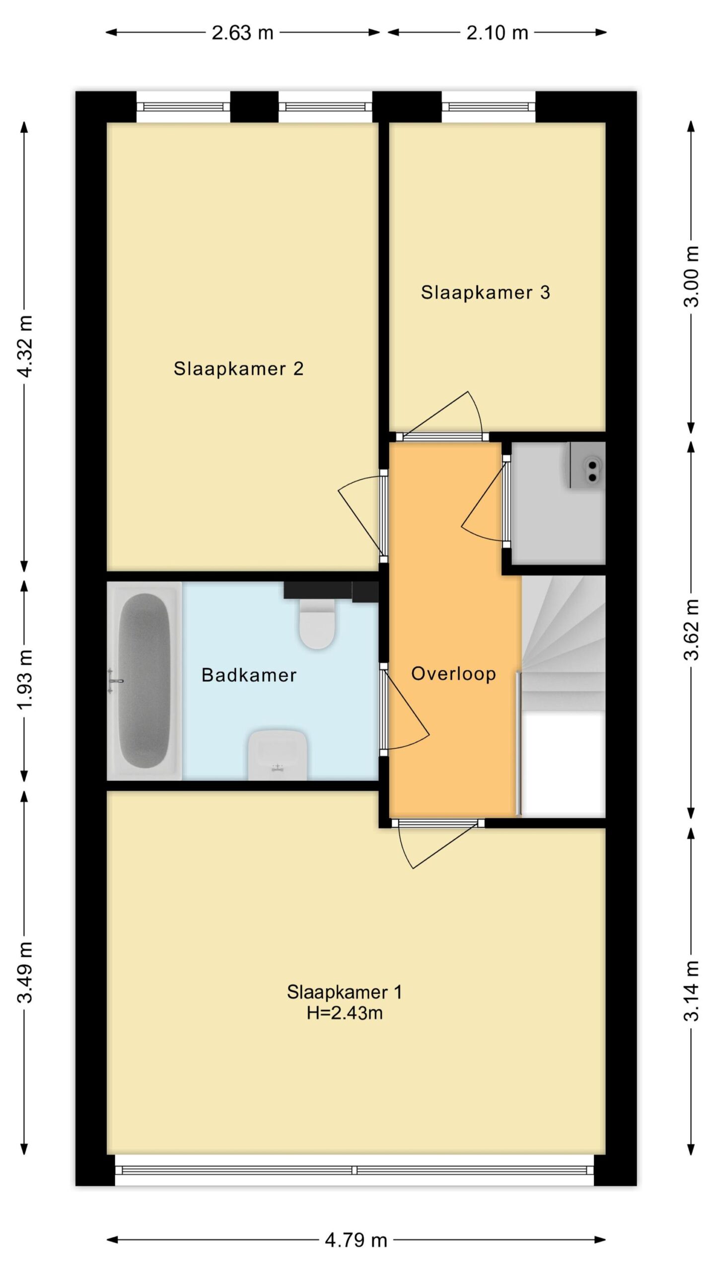 Op deze verdieping vinden we 3 slaapkamers en de badkamer.