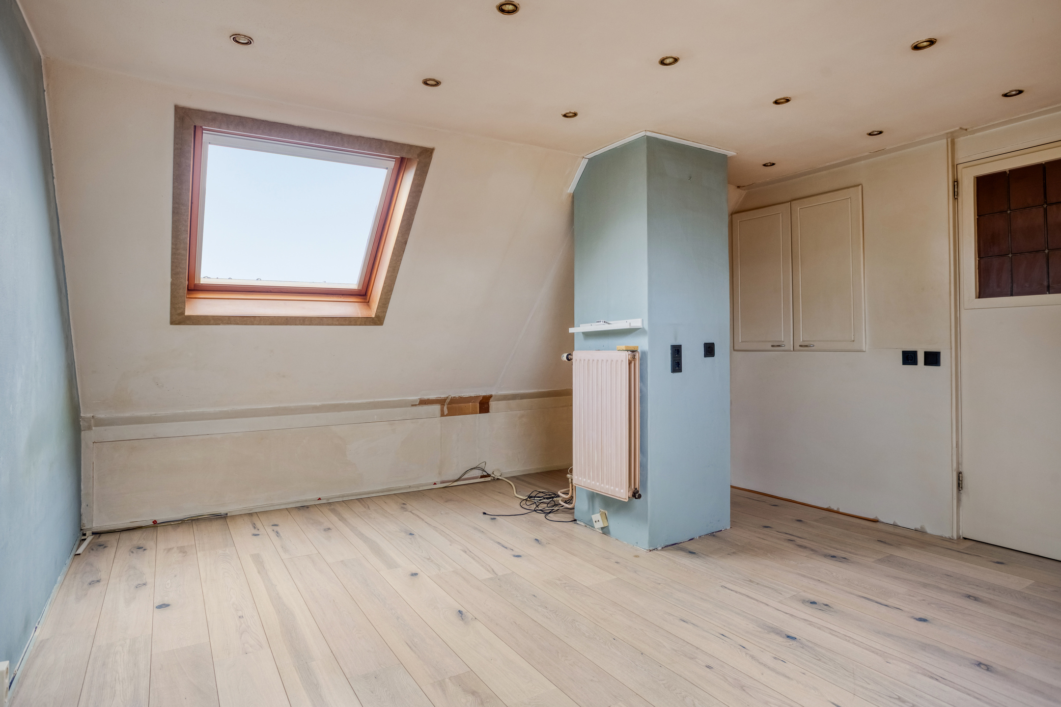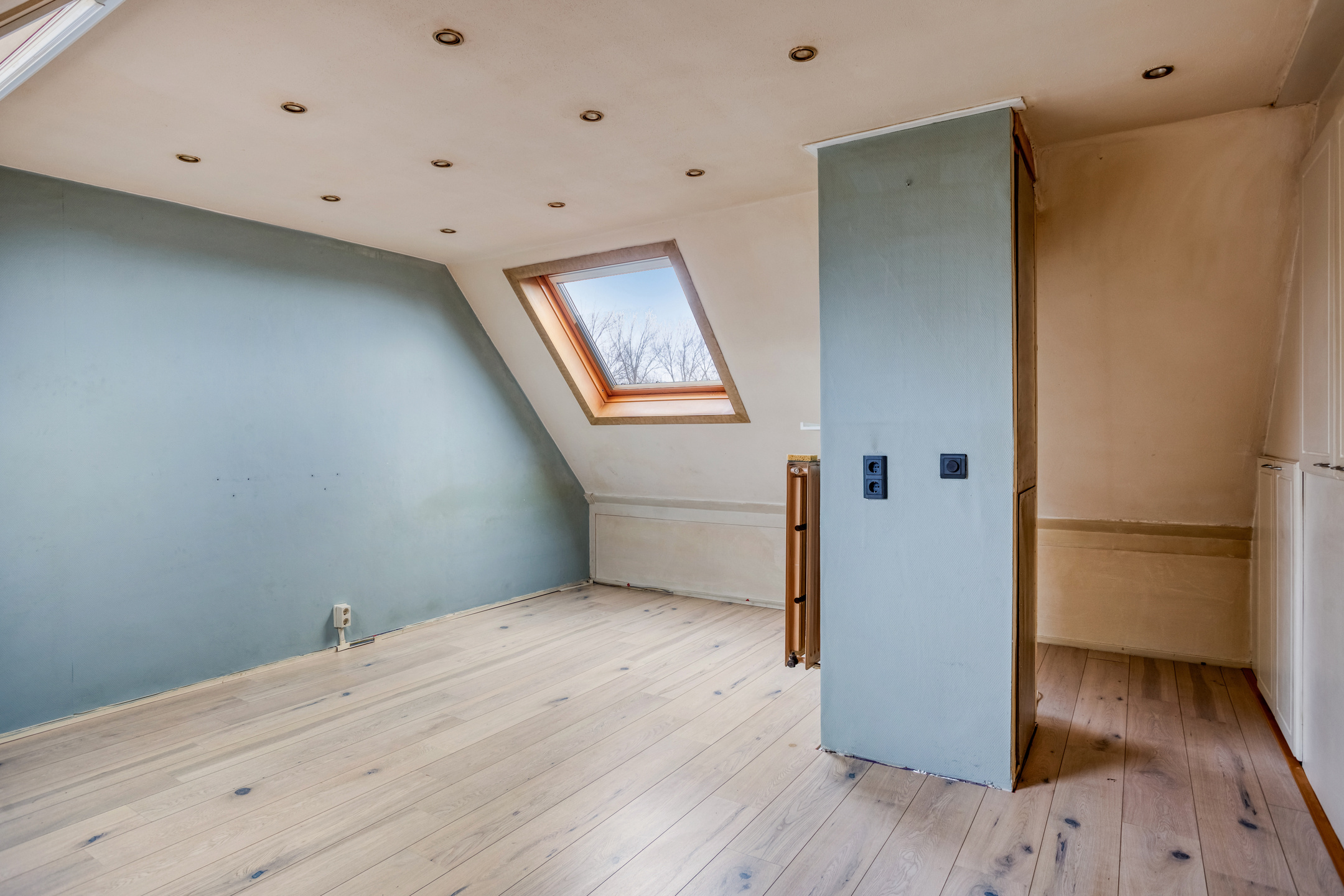 The second floor is arranged as a spacious third bedroom (5.31 x 4.23). Thanks to roof windows on both sides, pleasant natural light enters, creating a fully-fledged living space that is also suitable as a study or hobby room. Built-in cupboard space and additional storage areas provide practical storage solutions. This floor makes the property particularly suitable for families requiring multiple bedrooms or flexible space.