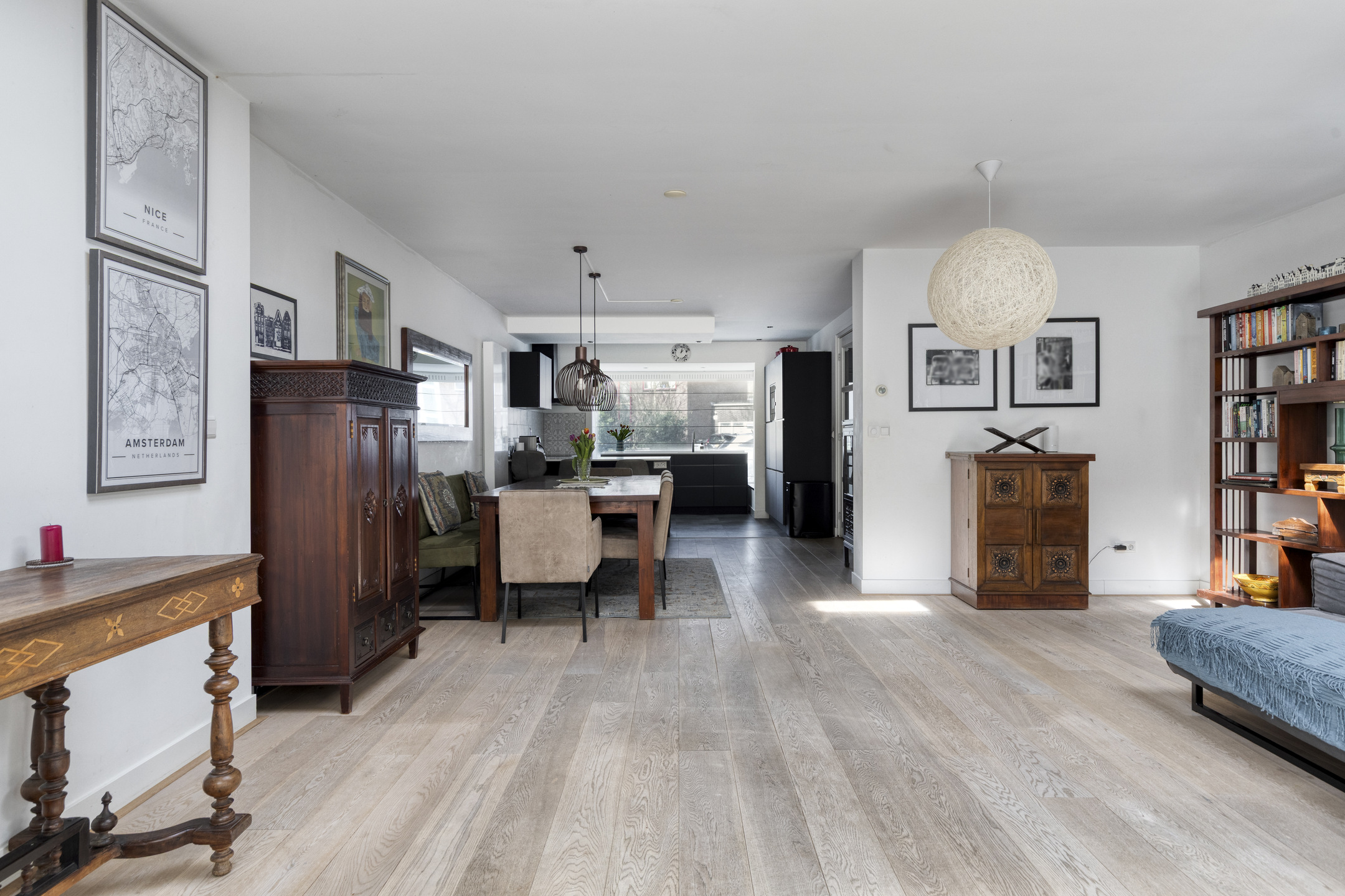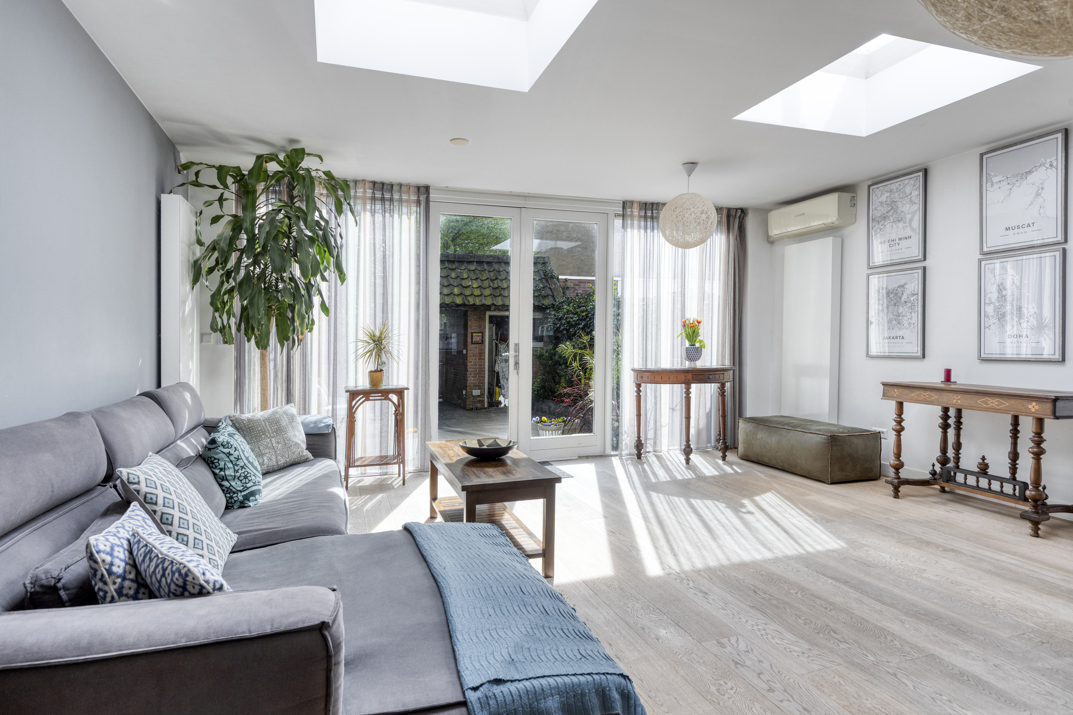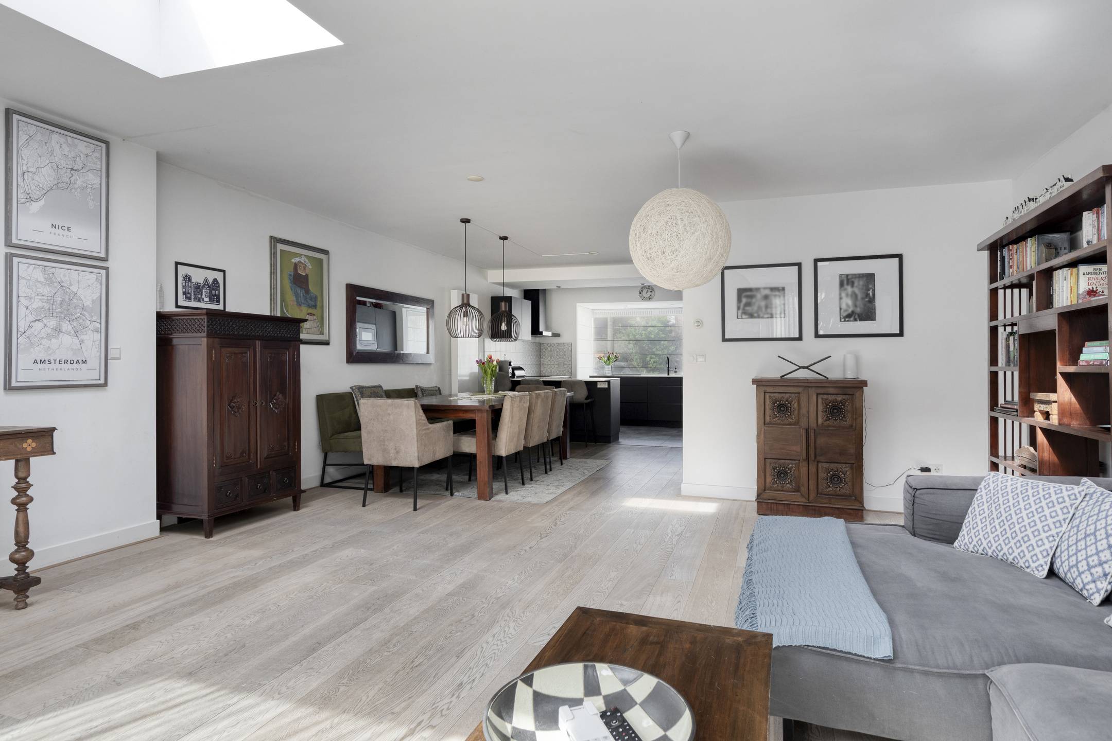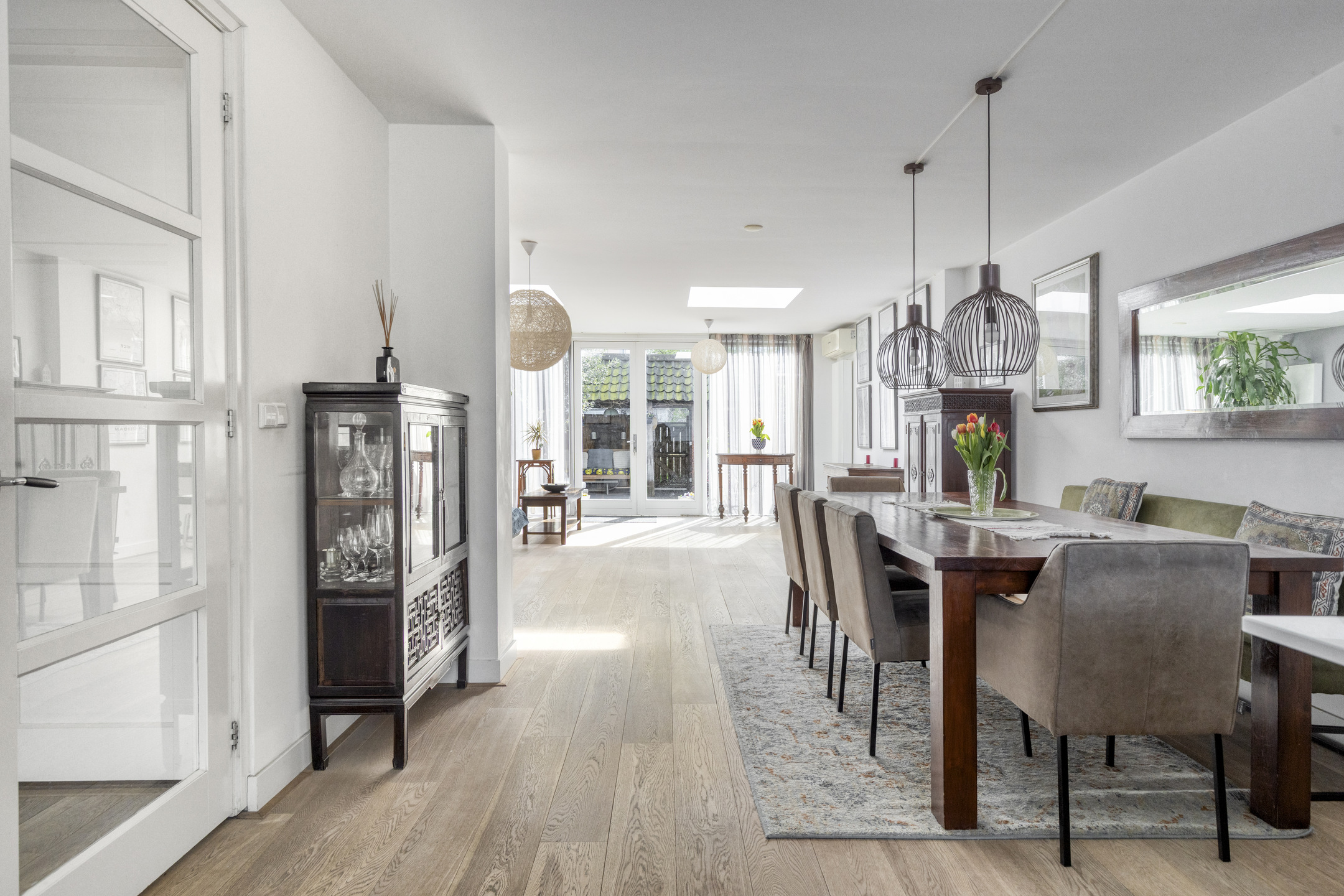 De woonkamer vormt het hart van de begane grond en kenmerkt zich door de open indeling en de aangename lichtinval dankzij de grote raampartijen en lichtstraat. Hier heeft u volop ruimte voor een comfortabele zithoek en een gezellige eethoek. De openslaande deuren verbinden binnen moeiteloos met buiten en de aanwezige airconditioning zorgt voor extra comfort in elk seizoen.