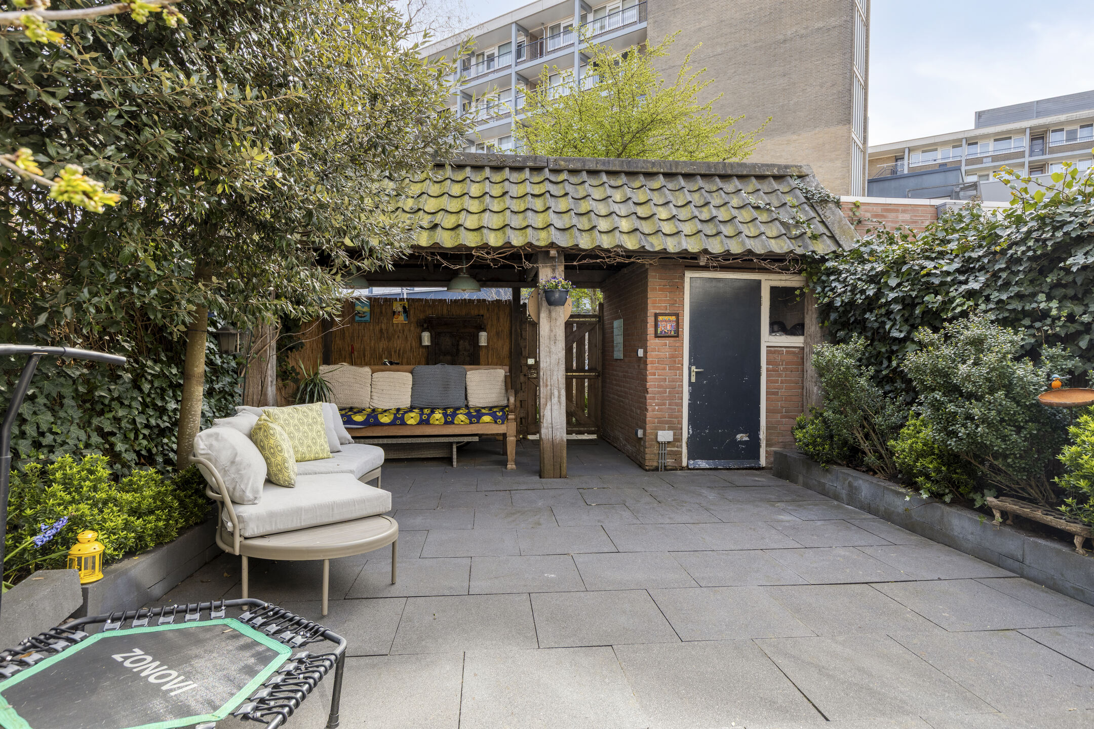De achtertuin is een fijne en zonnige plek, gelegen op het zuiden. De tuin is deels bestraat en deels groen ingericht. U heeft hier volop ruimte voor een terras en meerdere zitplekken. Daarnaast beschikt de tuin over een berging en een overkapping, waardoor u hier het hele jaar door kunt genieten van het buitenleven.