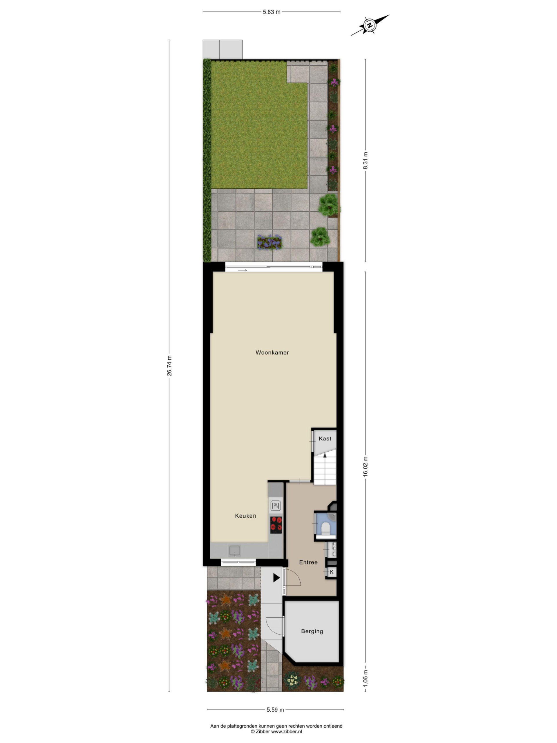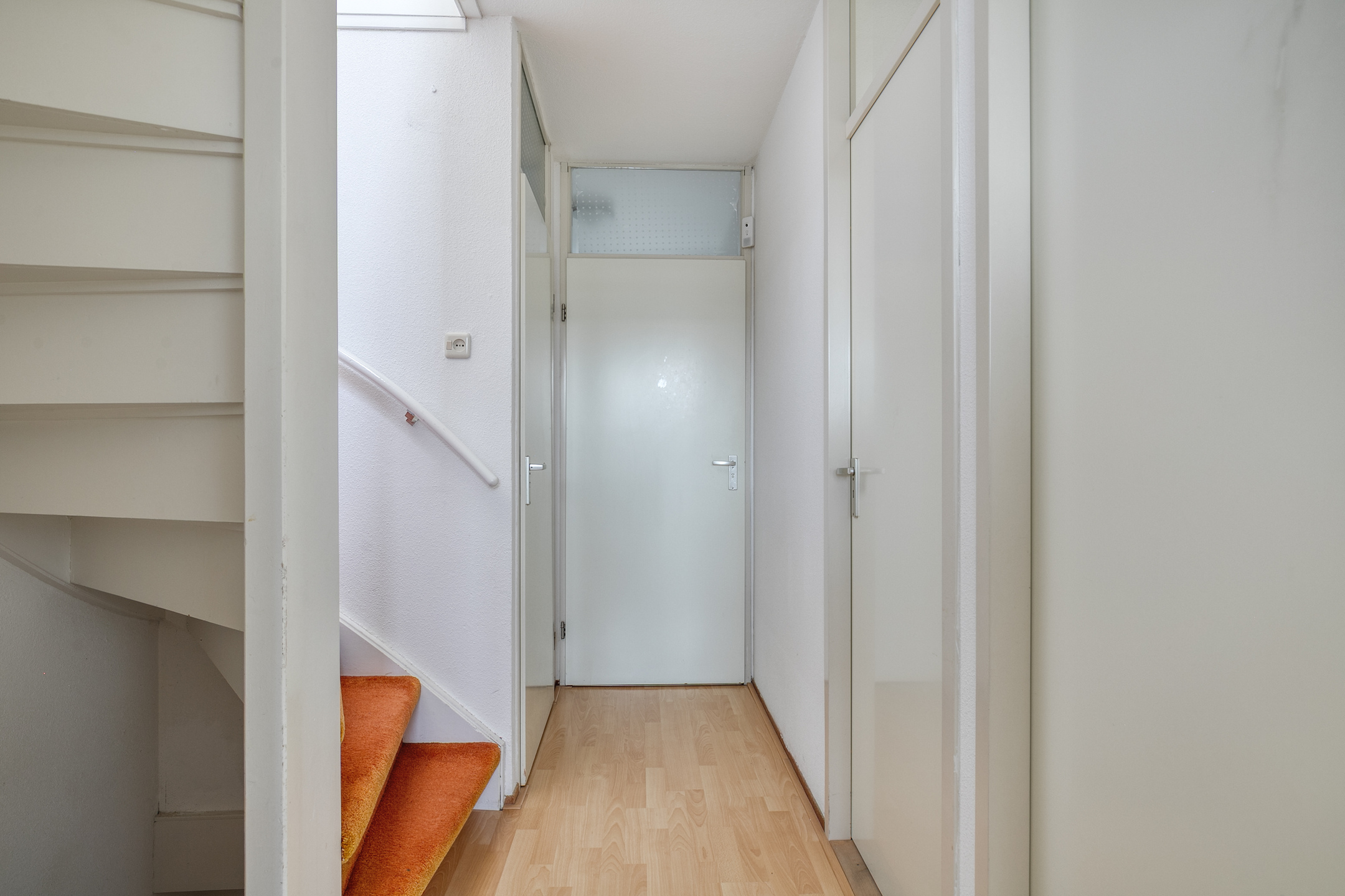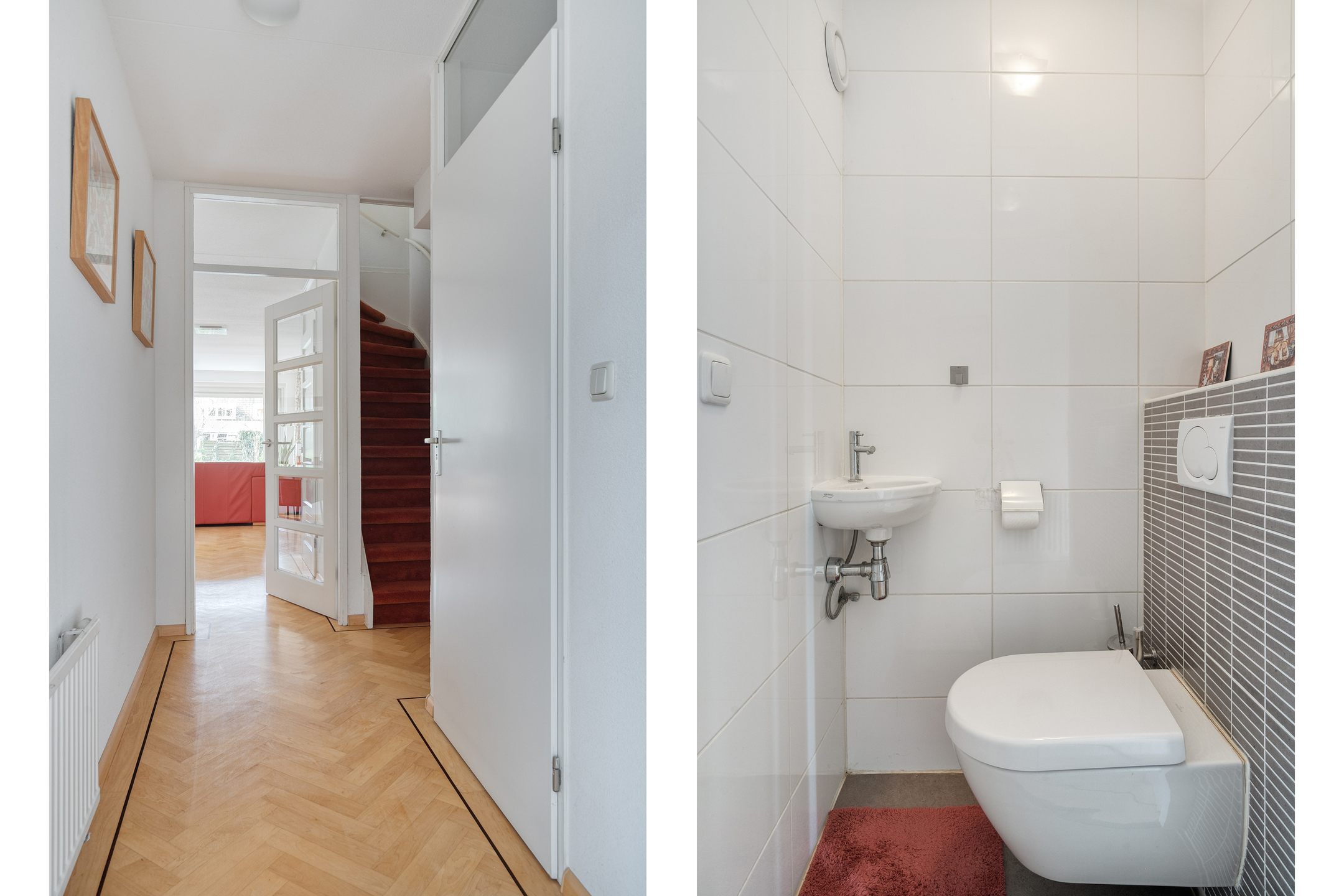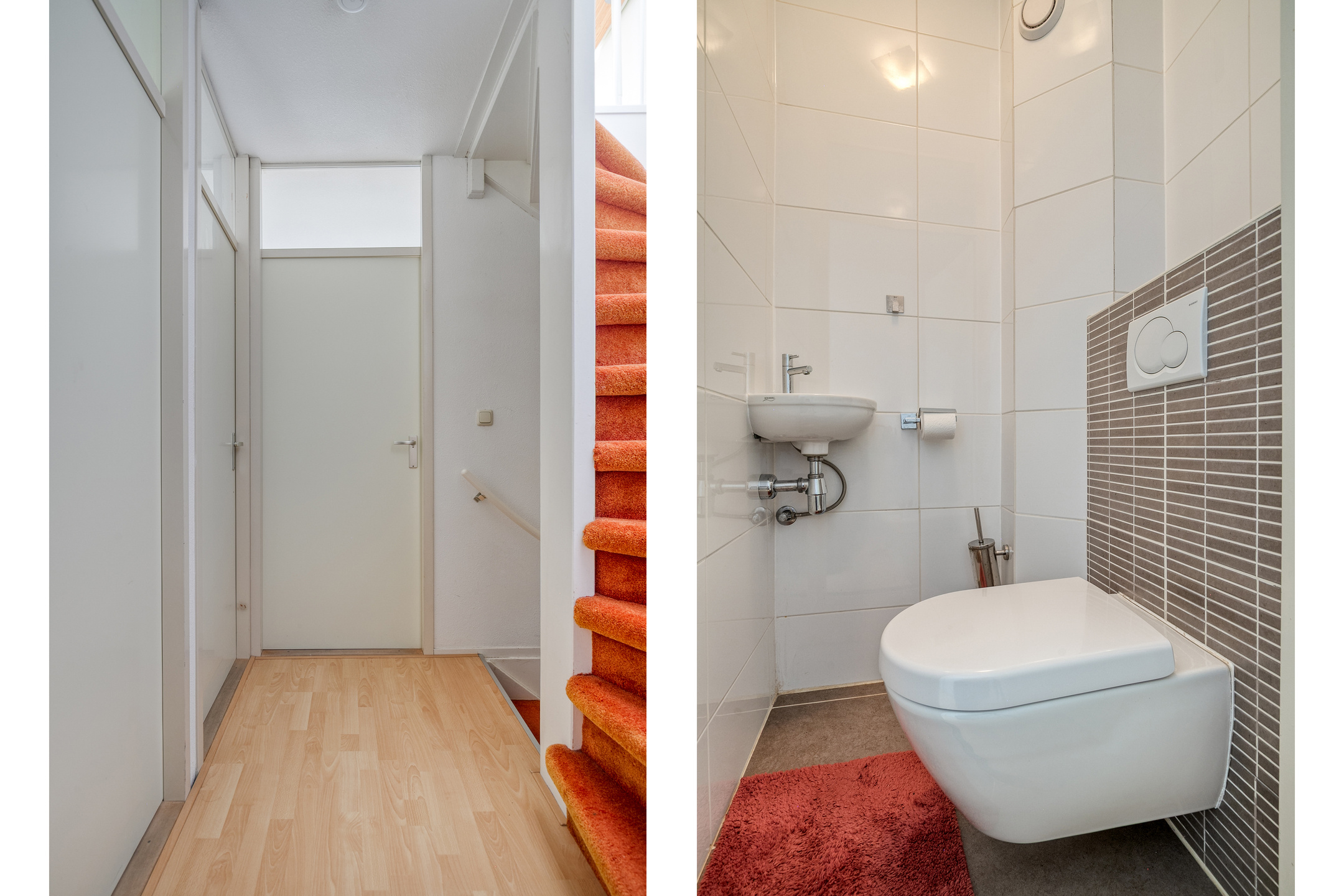 U betreedt de woning via de straatzijde, waar zich tevens de praktische berging bevindt. Bij binnenkomst komt u in de hal, die een verzorgde eerste indruk geeft en u direct toegang biedt tot de woonkamer, de toiletruimte en de trap naar de eerste verdieping.