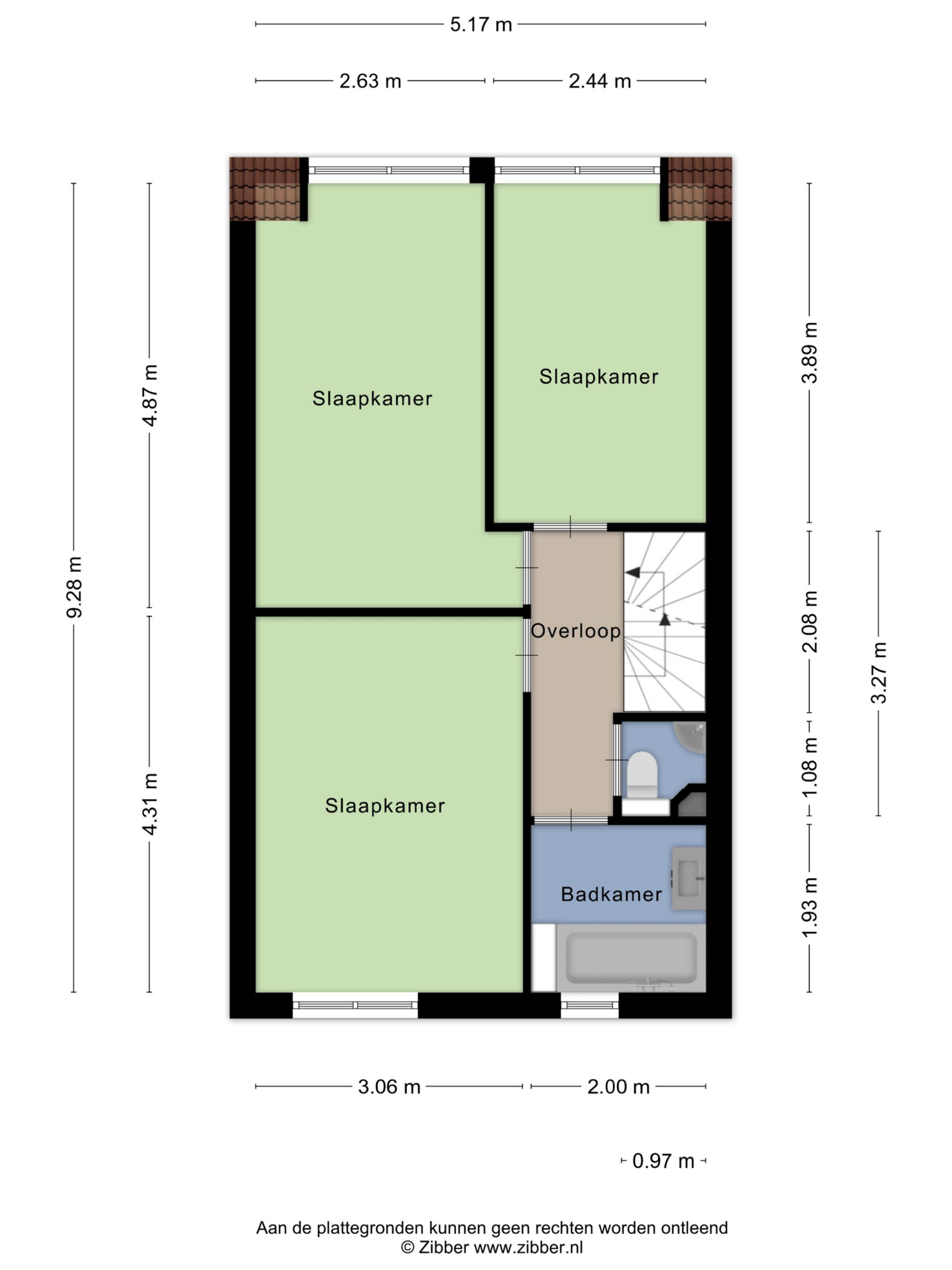 Via de vaste trap komt u op de overloop welke toegang geeft tot drie slaapkamers, een toilet en de badkamer.