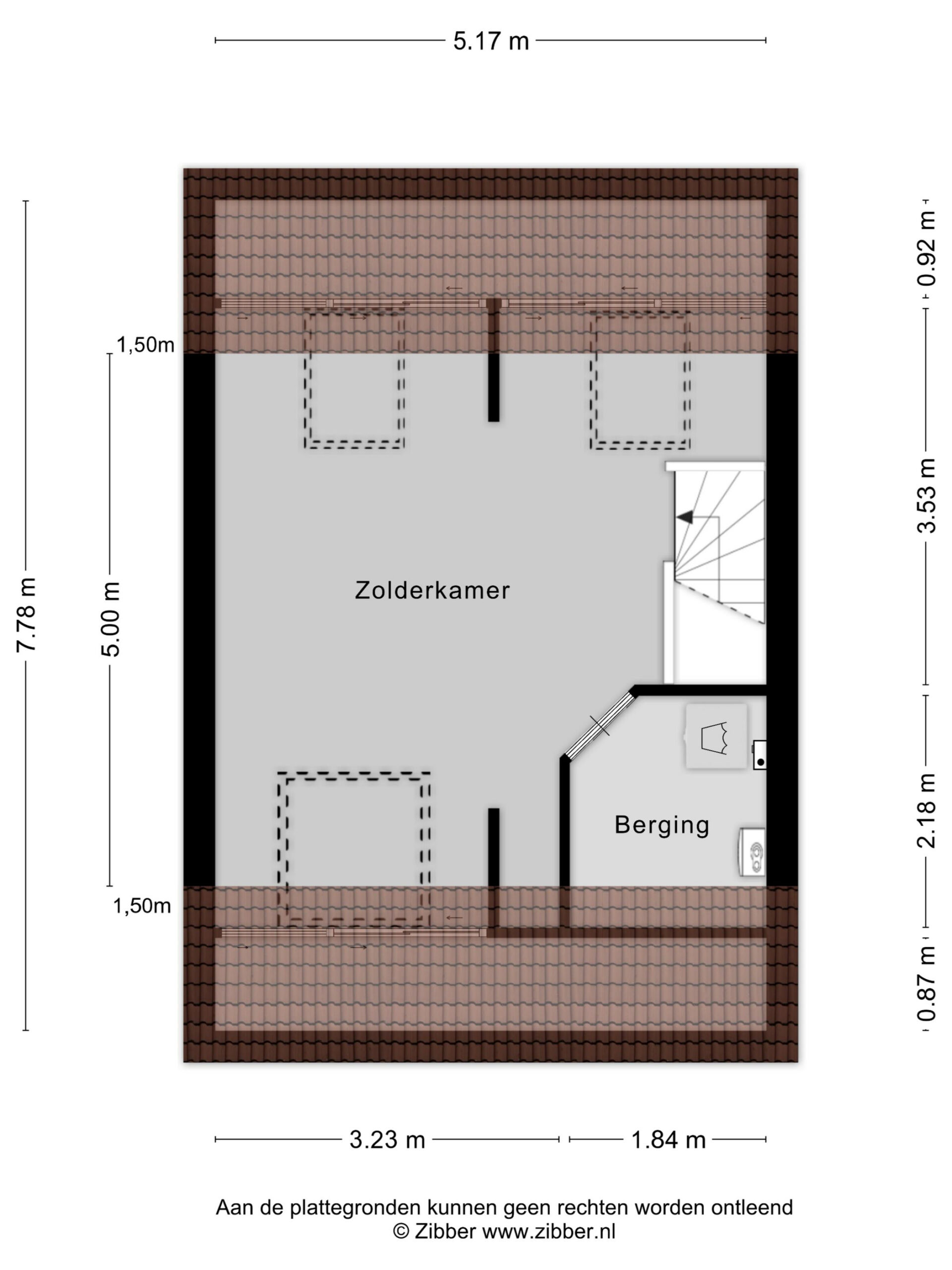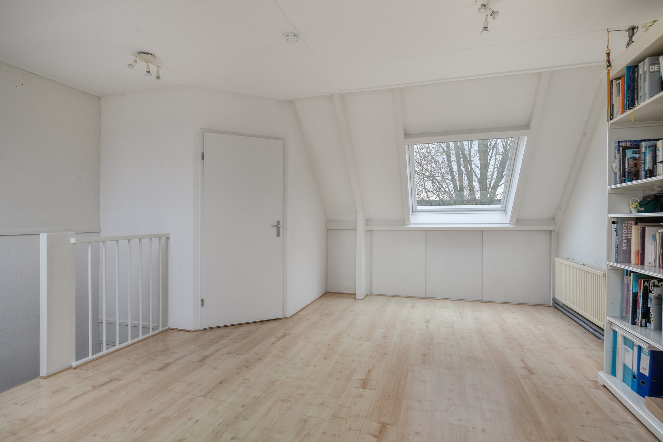 Via een vaste trap bereikt u de ruime zolderverdieping. Deze open ruimte is bijzonder veelzijdig en kan naar wens worden ingericht, bijvoorbeeld als extra slaapkamer, werkruimte of hobbykamer. Dankzij de aanwezige lichtinval voelt de verdieping aangenaam ruim aan. Tevens vindt u hier een aparte berging met aansluitingen voor het witgoed.