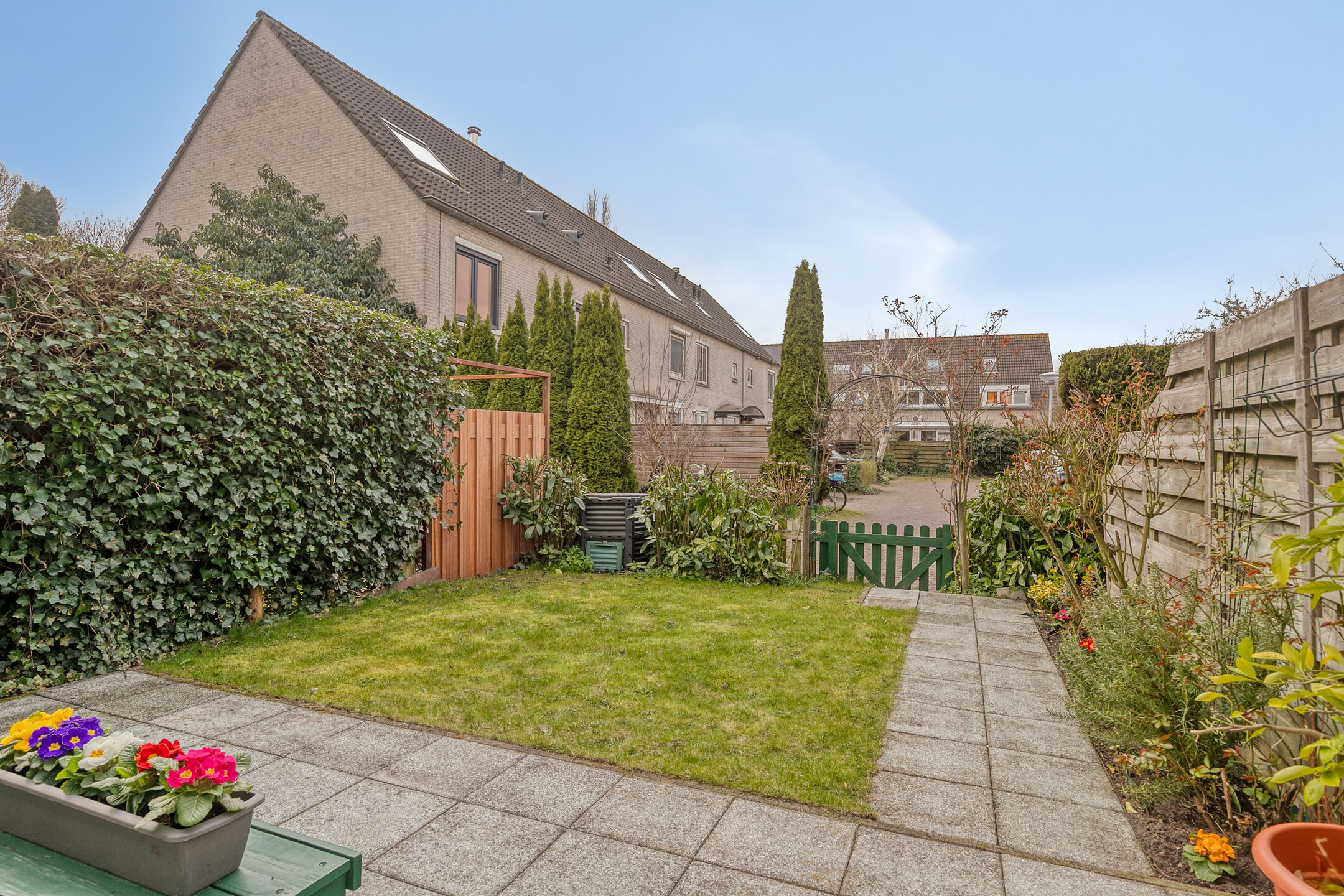 De achtertuin is een heerlijke plek om te ontspannen. De tuin is open en zonnig, deels bestraat en voorzien van groen, waardoor u hier eenvoudig een fijn terras kunt creƫren. Het aanwezige zonnescherm zorgt voor extra comfort op warme dagen. Een ideale plek om van het buitenleven te genieten. De voortuin is in 2024 opnieuw betegeld.