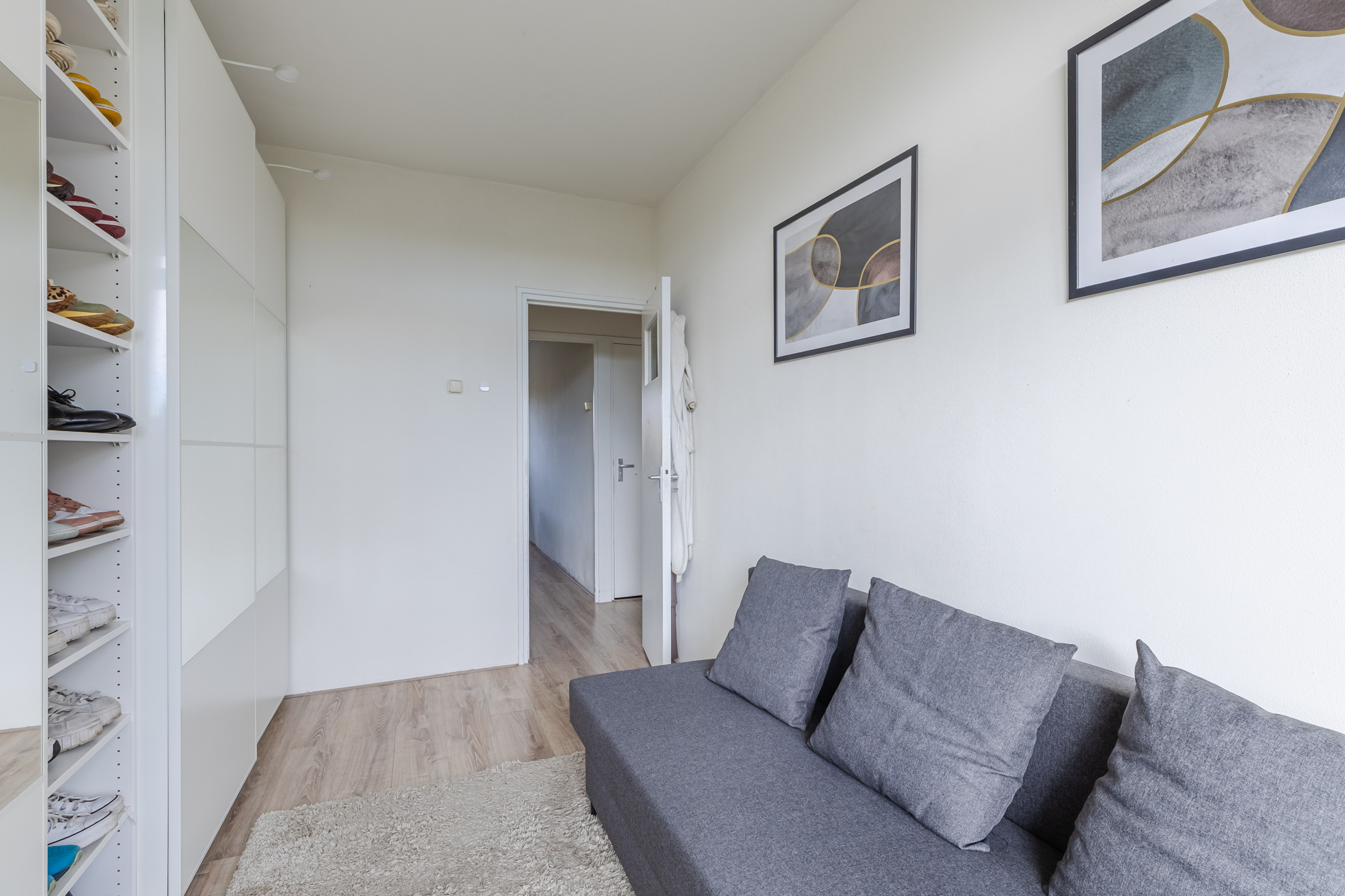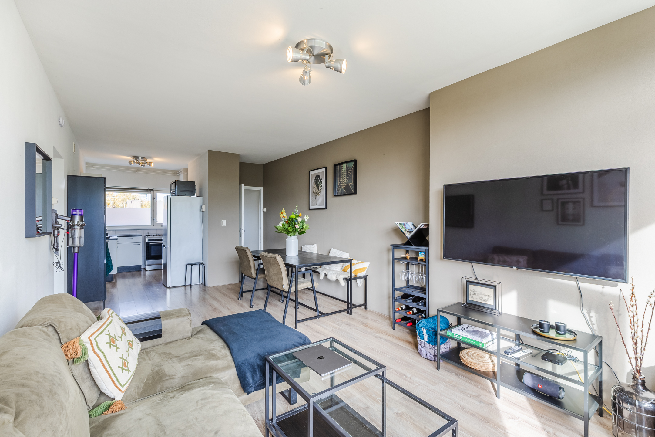 Located in a great location at a 5-minute walk from the Zuidas, we are pleased to offer this four-room apartment (1964). The property is located on the third and top floor of a small-scale apartment complex and is equipped with everything you need for a comfortable home: a sunny living room with an open kitchen, 3 bedrooms, modern sanitary facilities and a spacious balcony facing east with unobstructed views over a small park.