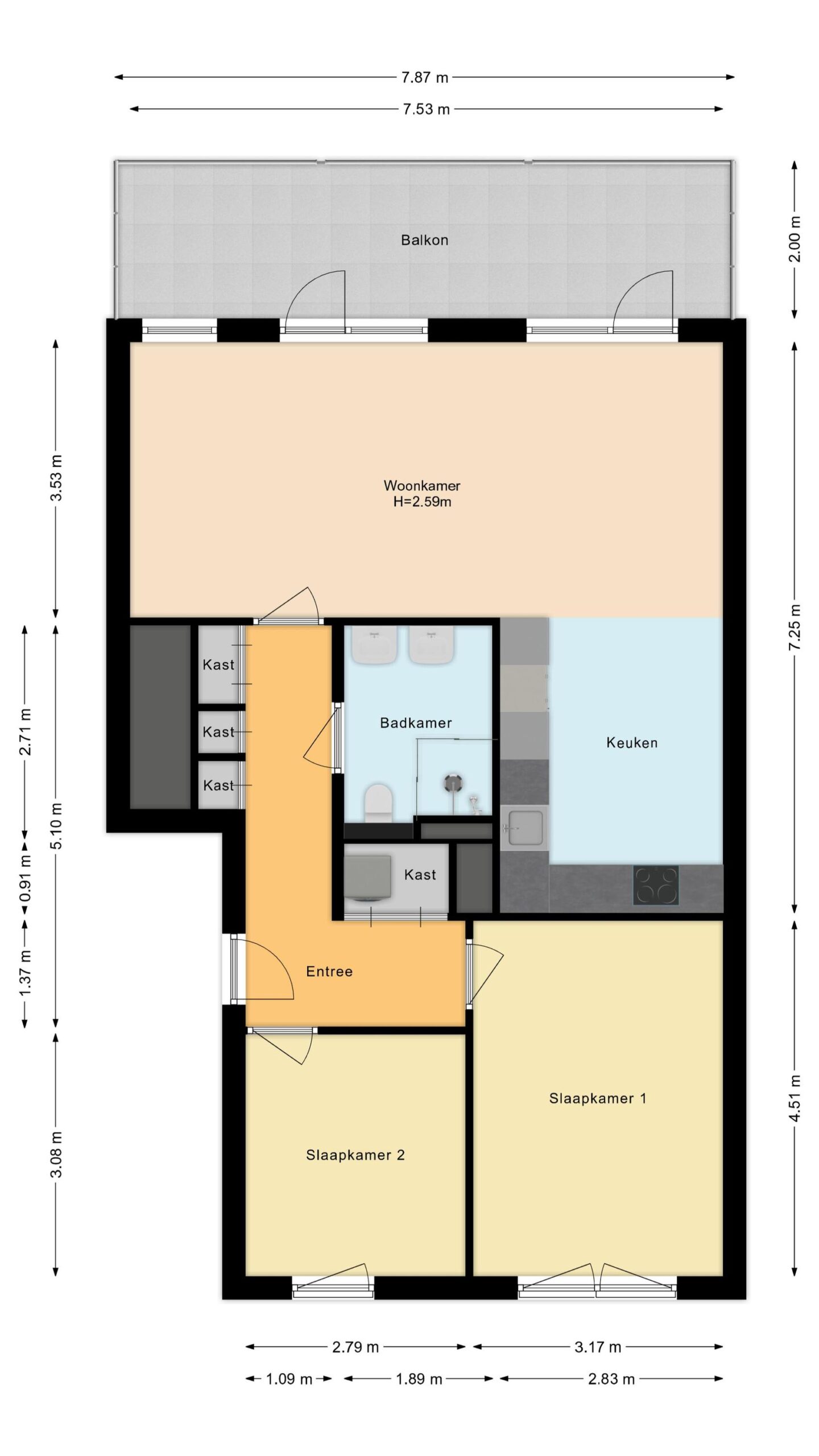 kamers 3 · 78 m2