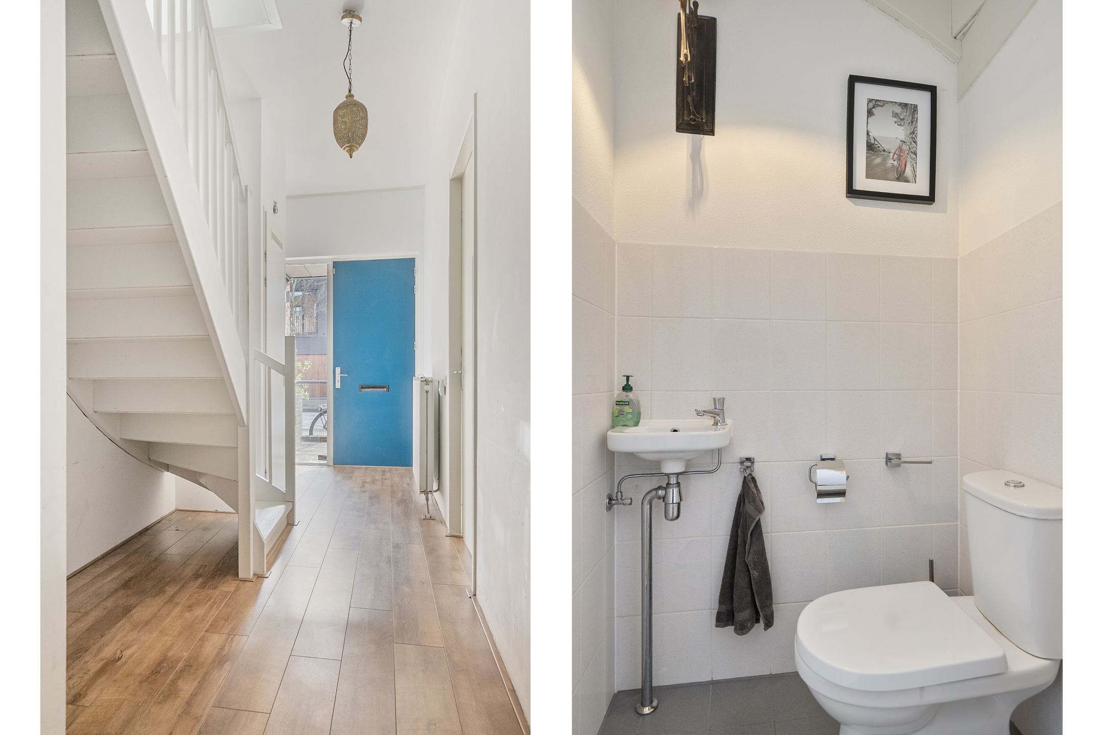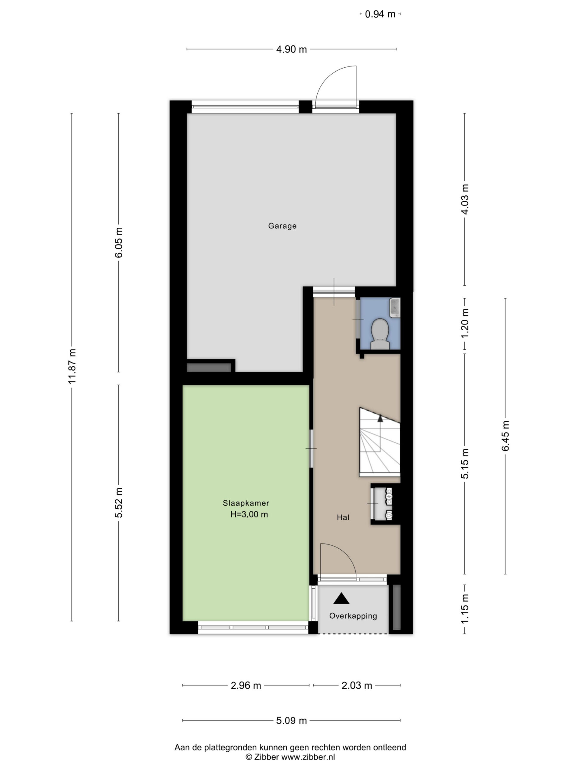 De entree bevindt zich aan de voorzijde, waar de hal toegang geeft tot het toilet met fonteintje, de trapopgang, garage en de (slaap)kamer op de begane grond. Een kamer die door de huidige bewoners wordt gebruikt als slaapkamer, maar zich ook uitstekend leent als werk- of hobbyruimte.
