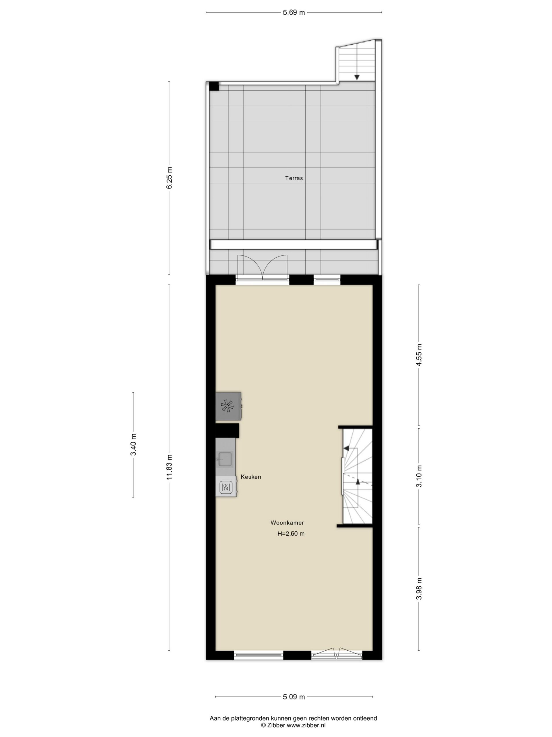 Op deze verdieping opent de woning zich volledig. De woonkamer en keuken vormen samen ƩƩn grote leefruimte, waarbij de lengte en breedte van de woning optimaal worden benut. Aan de voorzijde ligt het zitgedeelte, terwijl richting de achterzijde ruimte is voor een royale eettafel met zicht op het terras.
