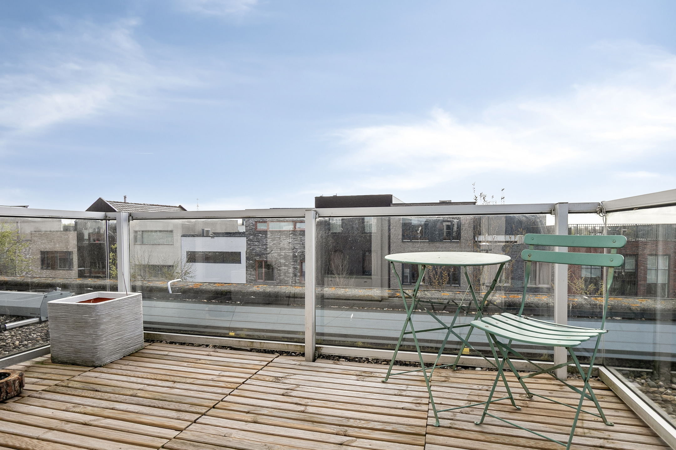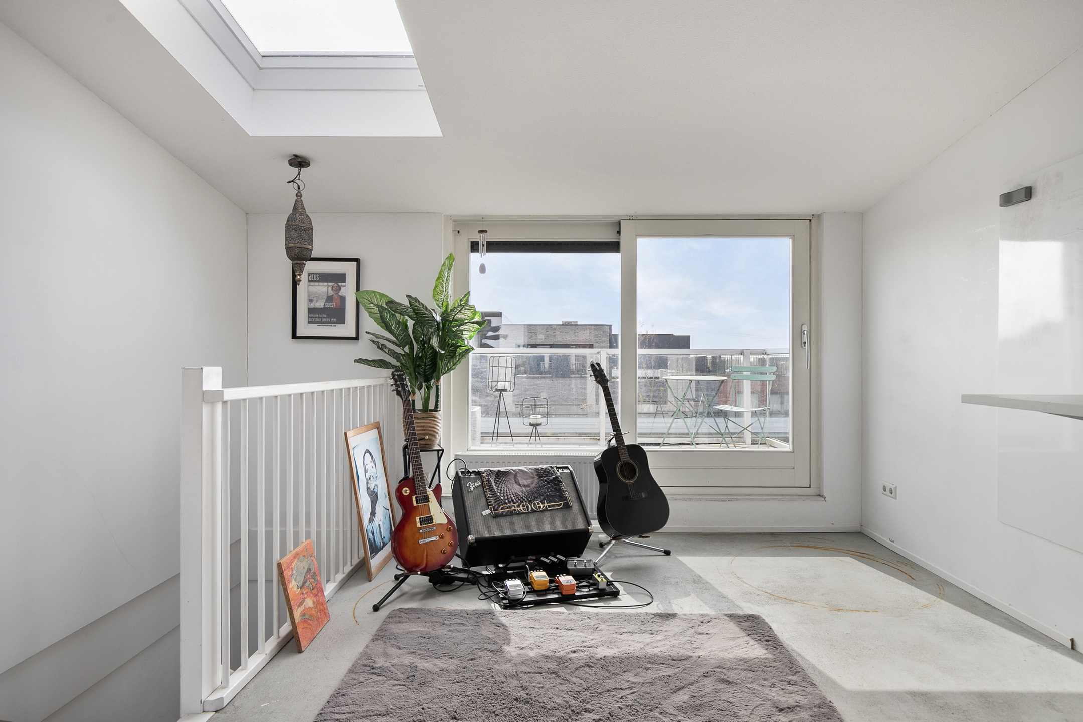 Een verdieping hoger bevindt zich nog een heerlijke ruimte die uitstekend dienst kan doen als werkplek of studio, met directe toegang tot een dakterras. Door de aanwezige lichtinval en de ligging is dit een prettige plek om je even terug te trekken.