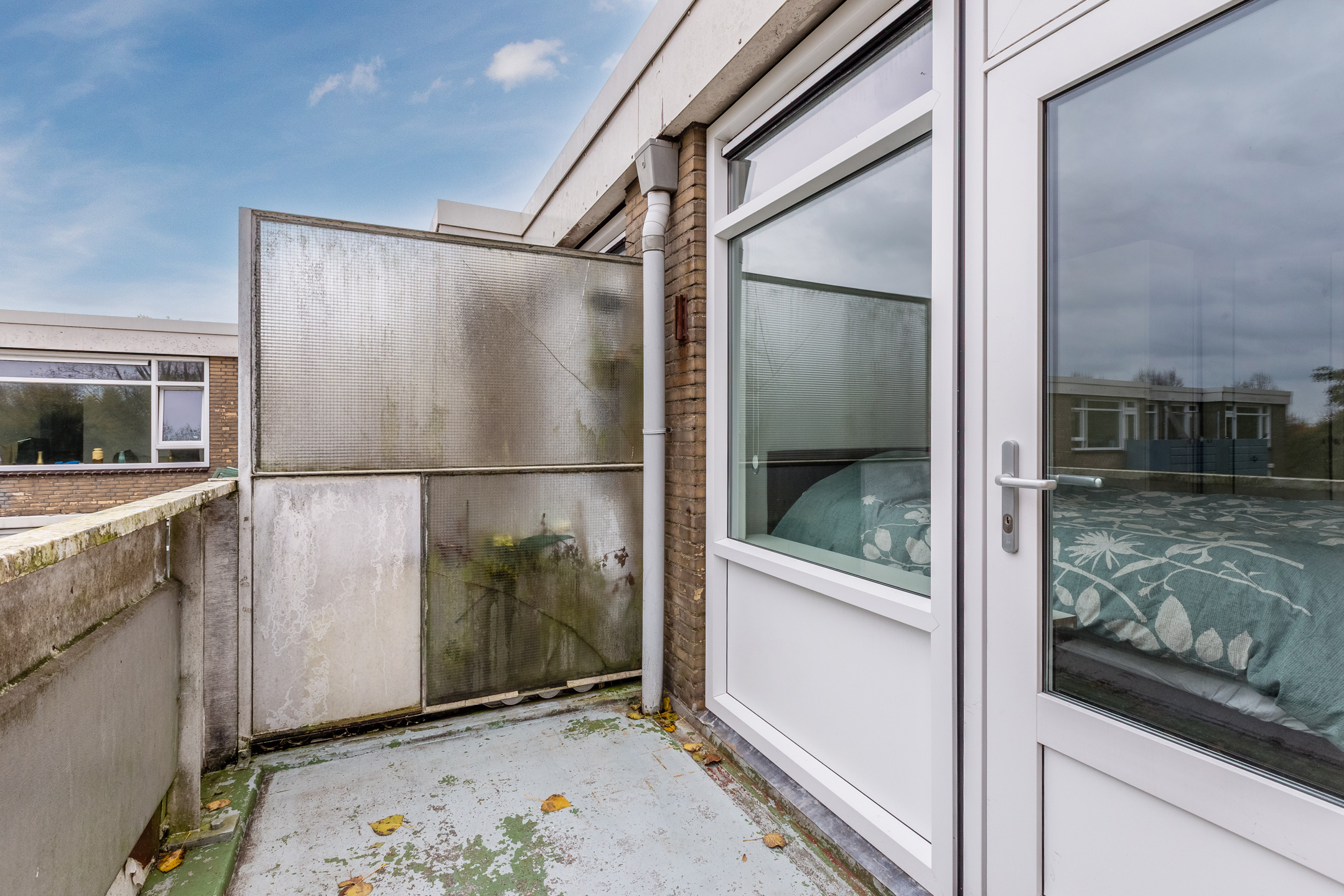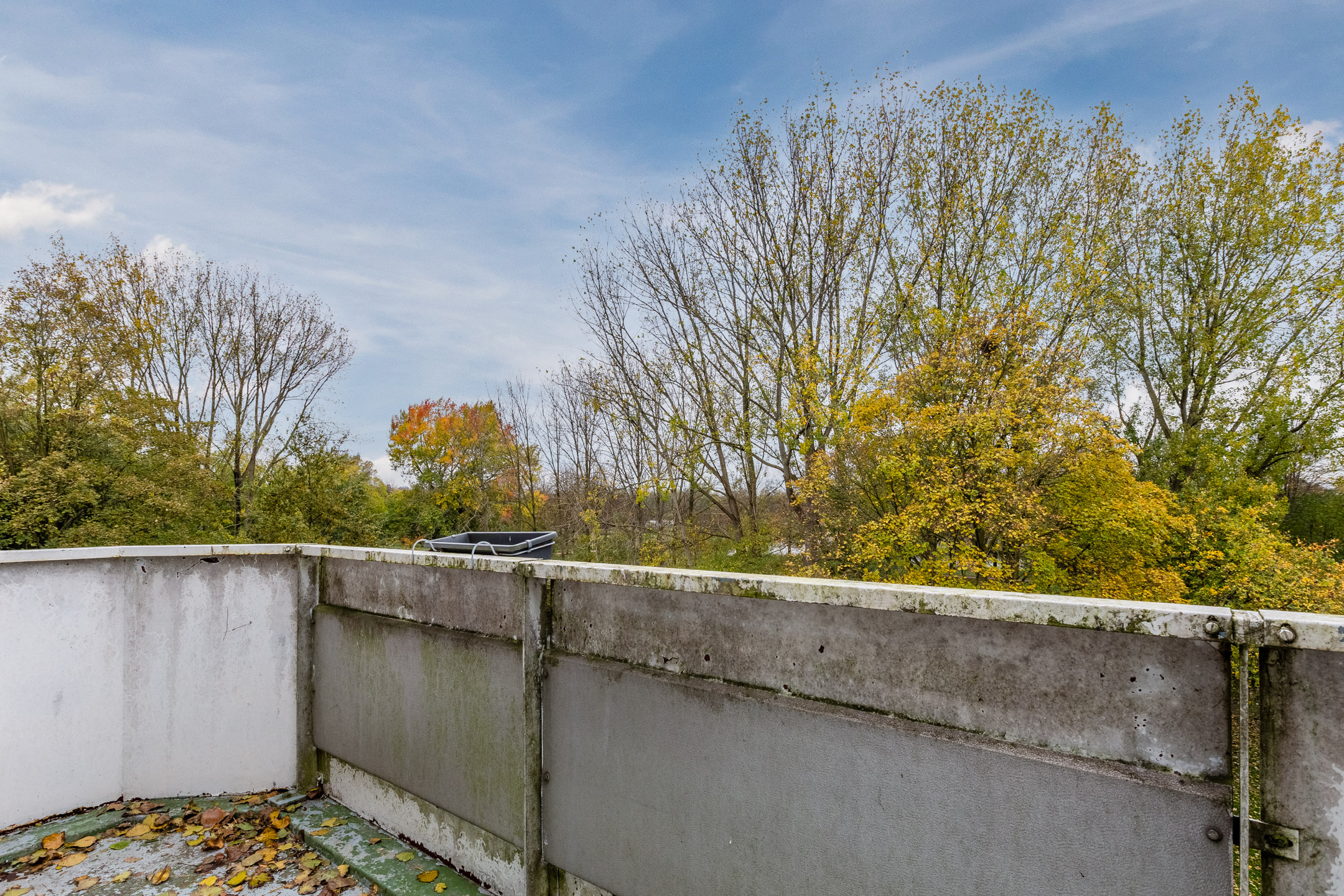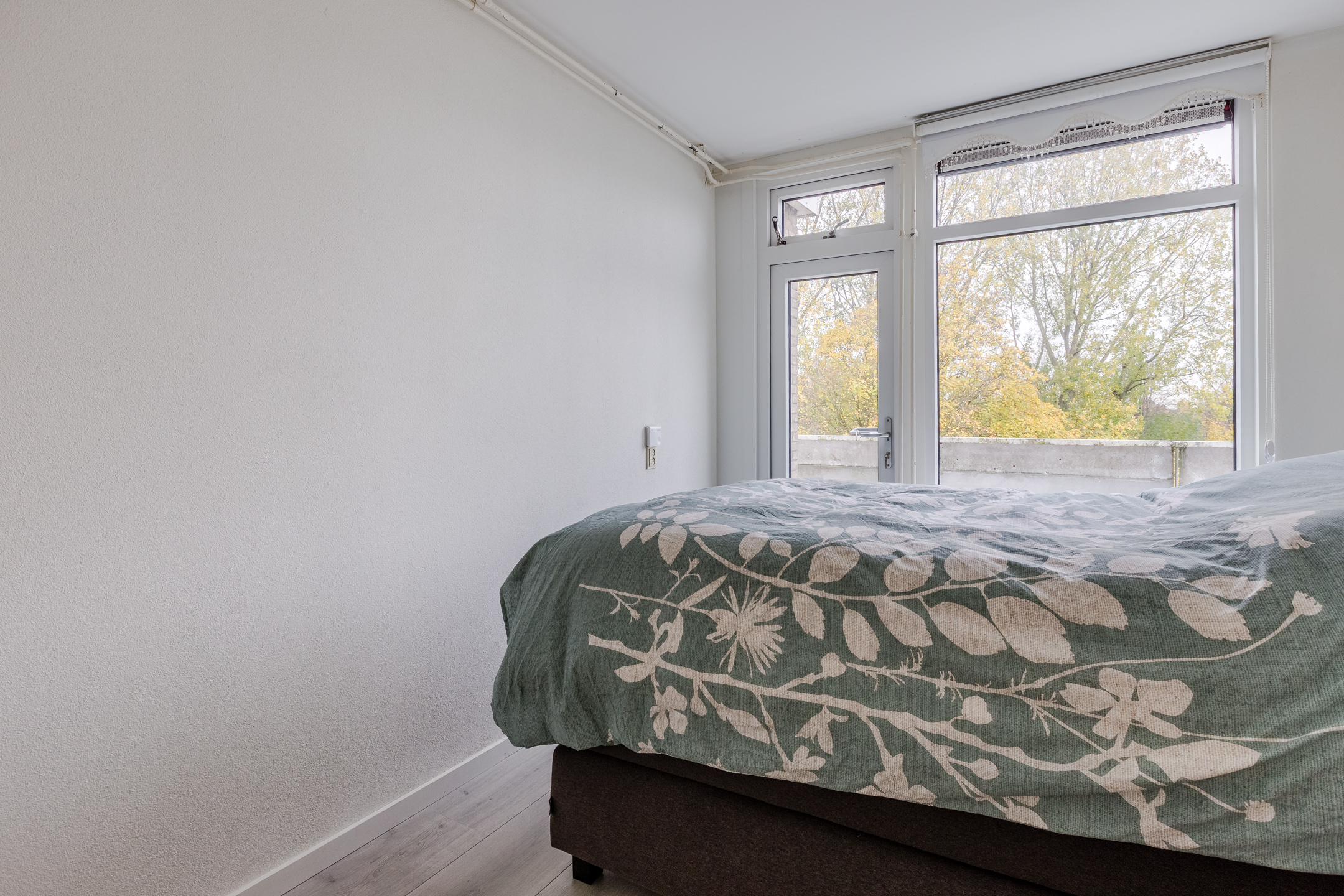Tenslotte hoort bij dit appartement nog een fijn balkon, van dik zes vierkante meter groot. Dit balkon is op het noodwesten gericht, biedt uitzicht over het park en is bereikbaar vanuit de woonkamer en een van de slaapkamers
